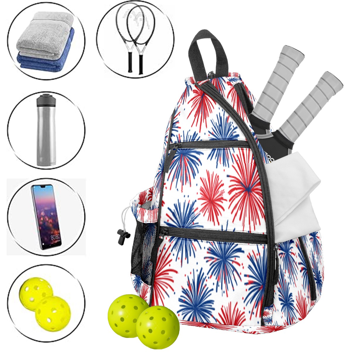 <p>This multifunctional pickleball Bag is made of lightweight and durable nylon fabric, which is lightweight yet has a large capacity, making it easy to store all equipment. Adjustable shoulder strap design supports multiple carrying modes on one shoulder and both shoulders, adapting to left and right hand habits; Breathable mesh back pad+waterproof fabric, balancing comfort and protection. The safety pocket and mesh hook design make access more convenient. Whether it's competition training, daily commuting, or as a gift, it's an ideal choice that combines practicality and aesthetics!</p>