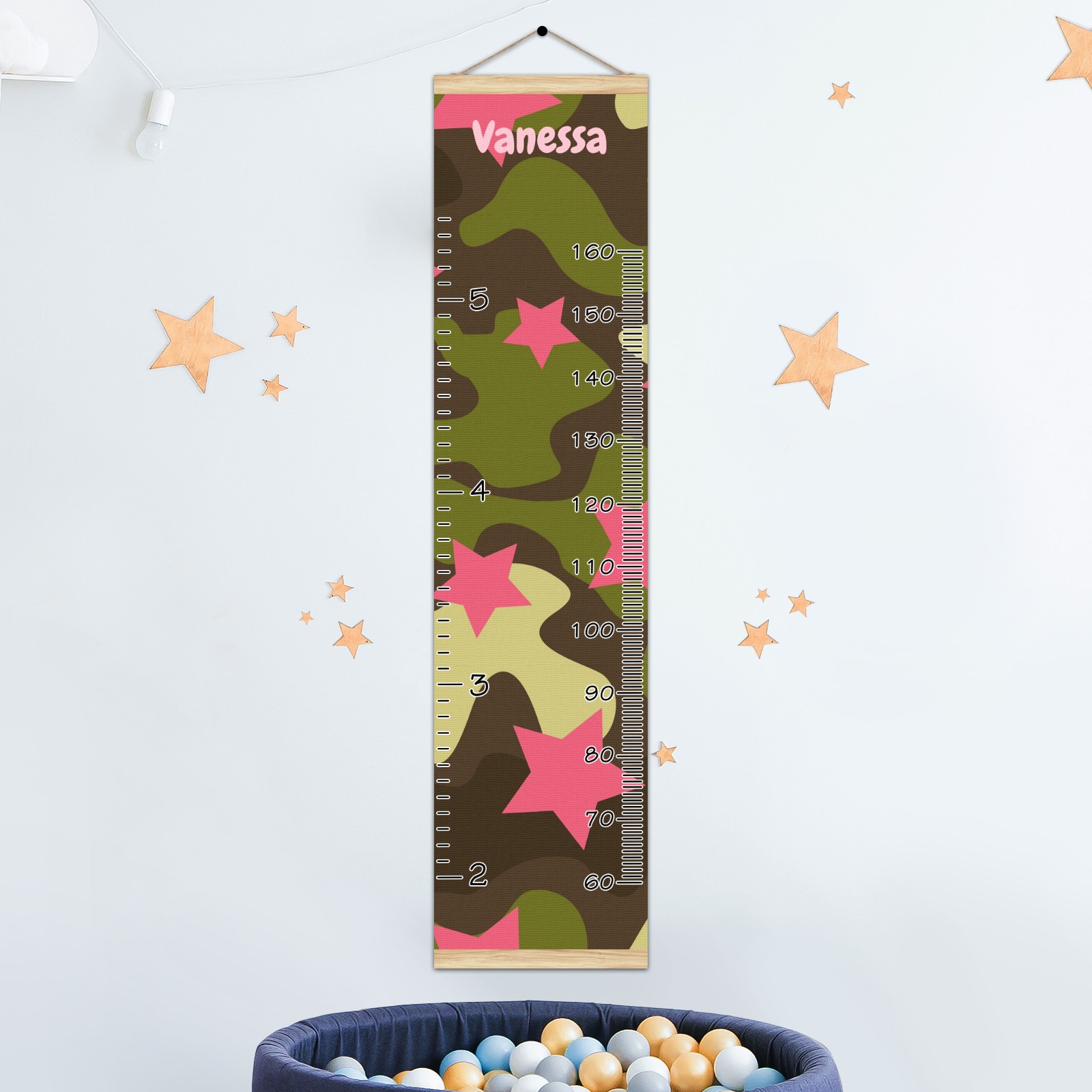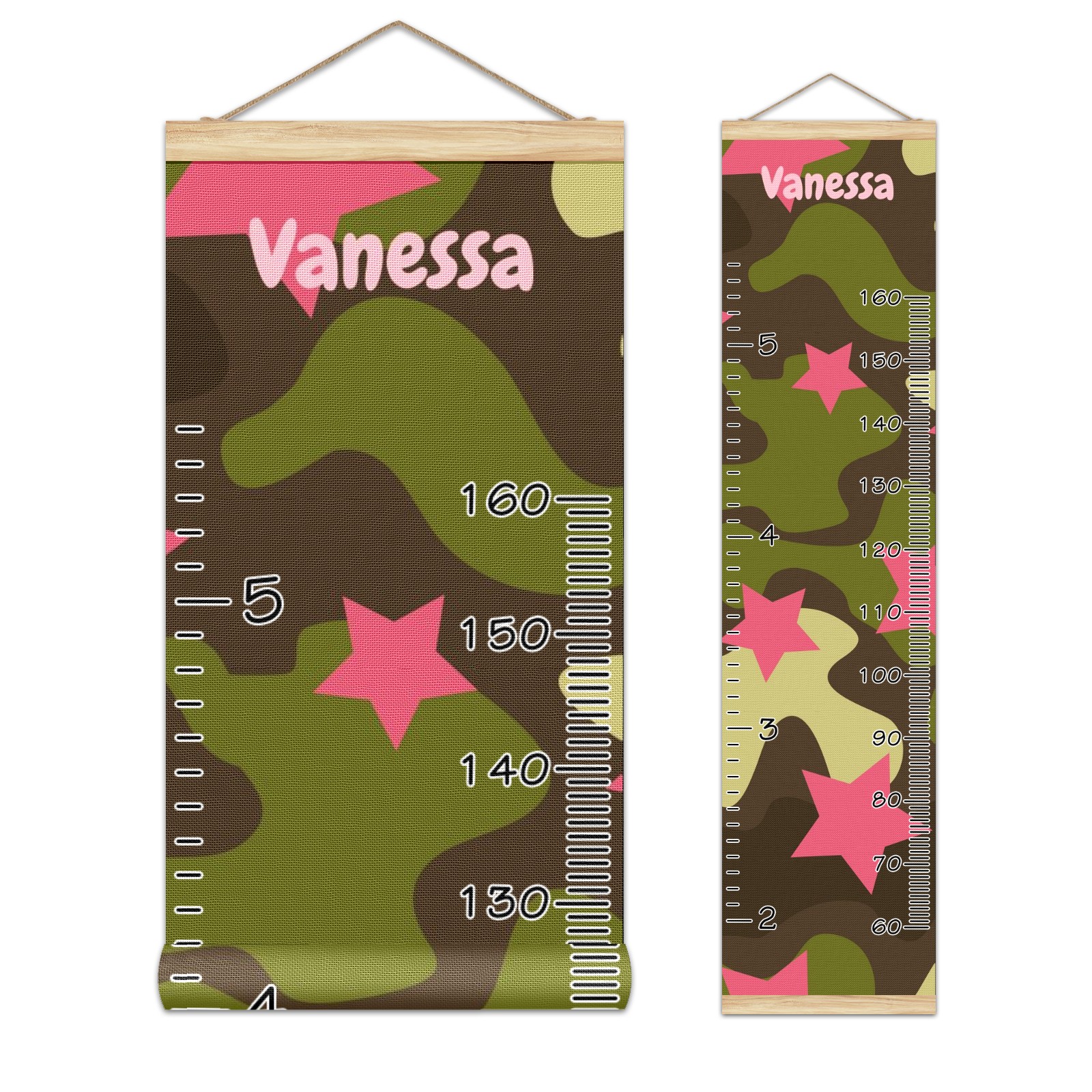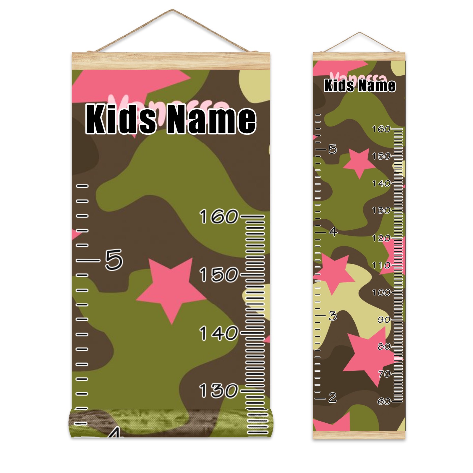 Personalized Kids Name Growth Chart Ruler for Wall Wood Frame Canvas Height Measure Chart 13.4x56 in Hanging Growth Chart Camouflage Print Pink Star12.1 Boys Girls Room Decor