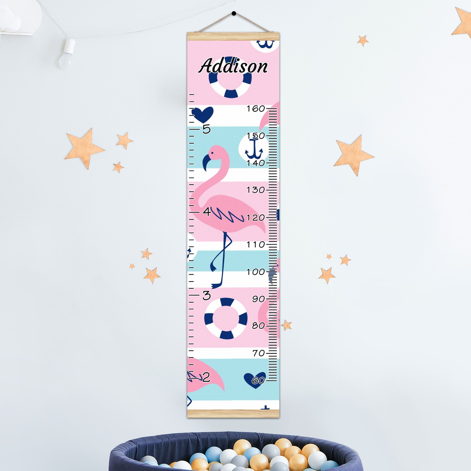 Personalized Kids Name Growth Chart Ruler for Wall Wood Frame Canvas Height Measure Chart 13.4x56 in Hanging Growth Chart Airplane Collection12.1 Boys Girls Room Decor