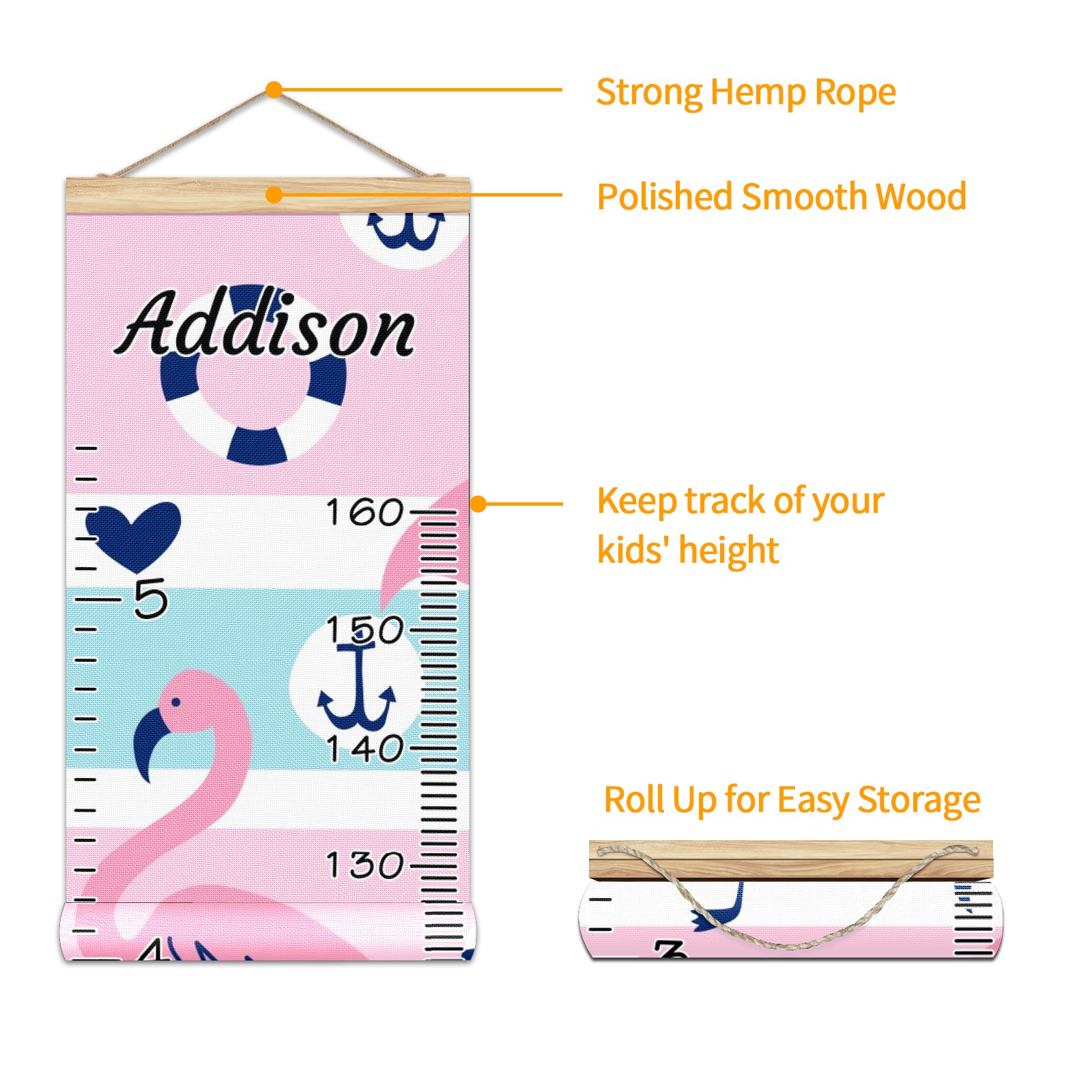 • <p><b>Features:</b></p> <p>Rope for Hanging</p> <p>Material: Linen + Wood</p> <p>Dimensions: 13.4x56 inches</p> <p>Package Included: 1 * Baby Growth Chart</p> <p><b>Baby height growth chart can be used anywhere</b></p> <p>Ideal for kids nursery decoration, kids bedroom, interior walls or windows, playroom, living room, homedecoration.Add name and make the growth chart special!</p> <p><b>Easy to fold and carry</b></p> <p>With rope at the top of the growth chart, it is easy to install and remove.You can fold it and unfold any time any where.</p> <p><b>Perfect Gift Idea for Kids</b></p> <p>Environmental and non-toxic for kids use, it must be a perfect gift for baby, kids, girls, and boys.This is a best choice for your friend who have kids or baby as a popular gift.</p> <p><b>Easy to read</b></p> <p>Measurement accrate with 2 scales, Centimeters and feet. The letters are big enough, very easy to read.</p> <p><b>60cm(23.6inch) Over Ground Design</b></p> <p>Not only can protect from dust and other damage, but also will not interfere in floor cleaning.</p>