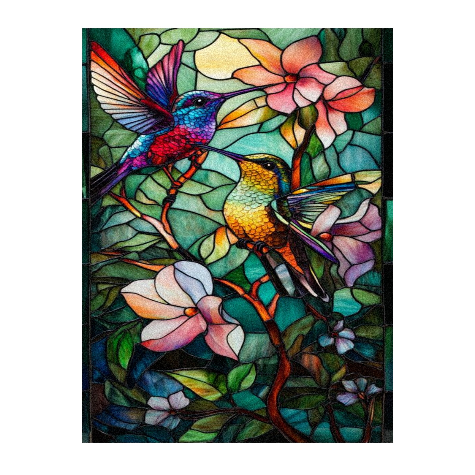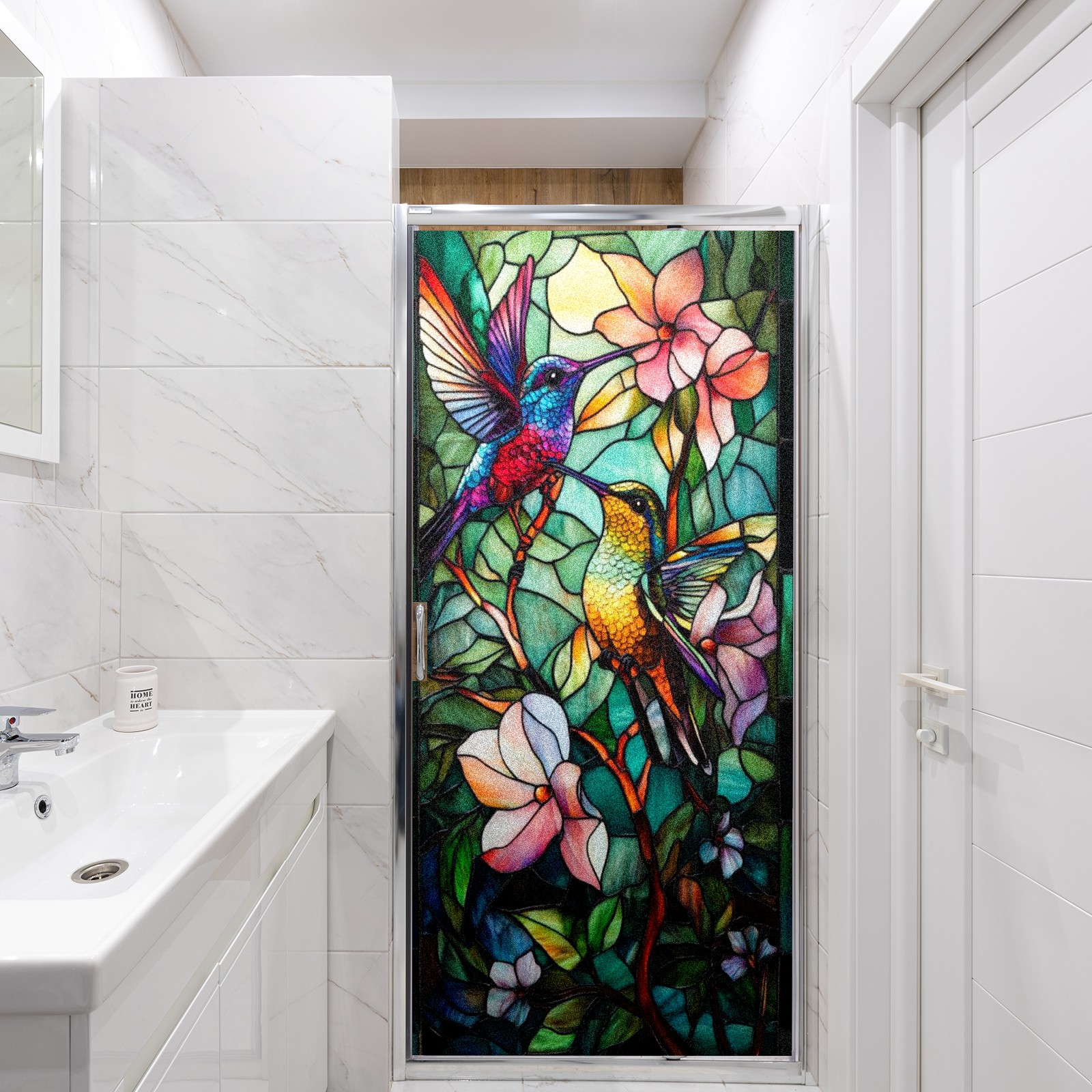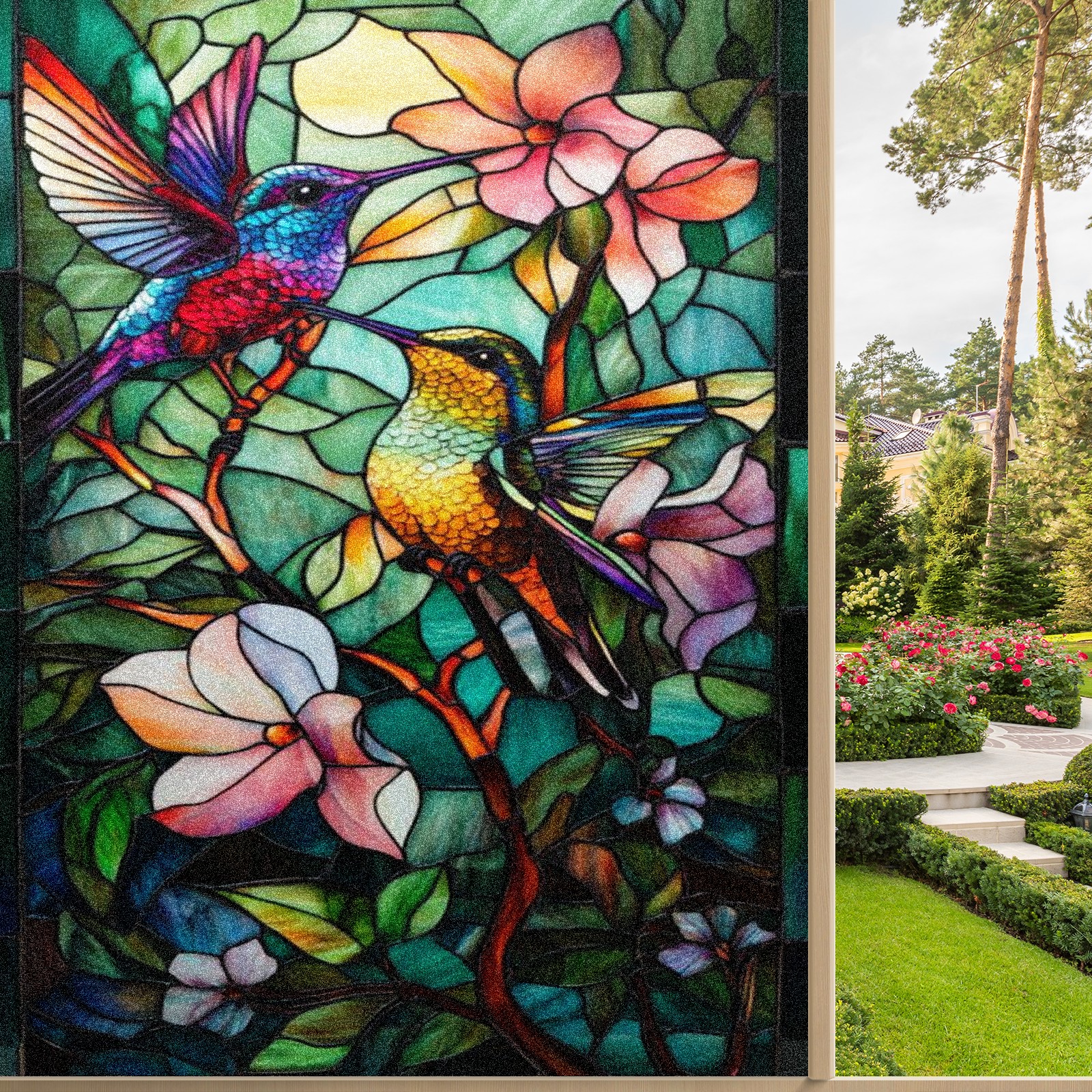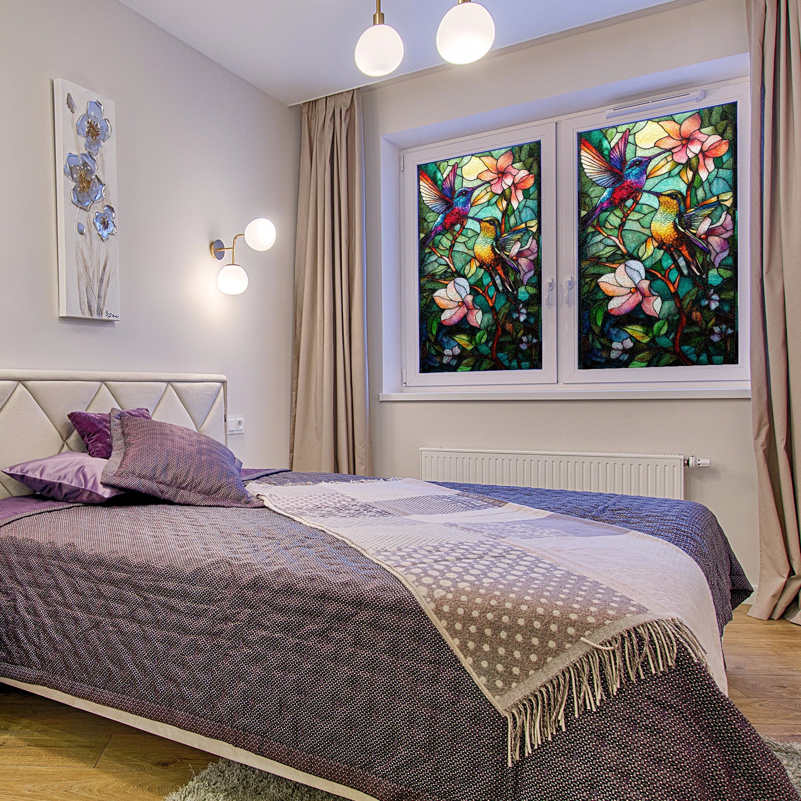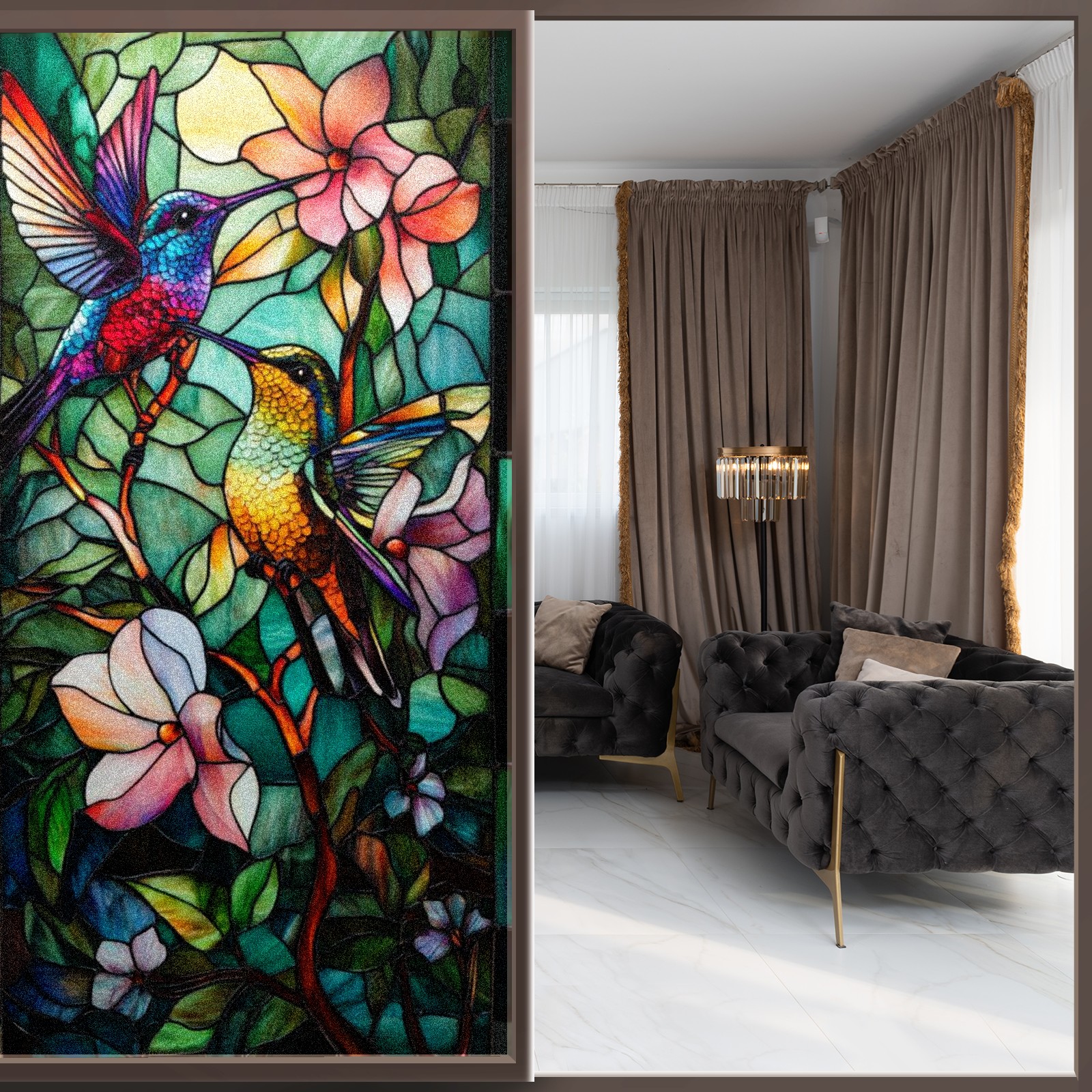 Window Privacy Colored Iris Decorative Window Stickers Hummingbirds Flowers 2 Suitable Home & Office Anti-Sunlight Stickers 17.7x23.6in