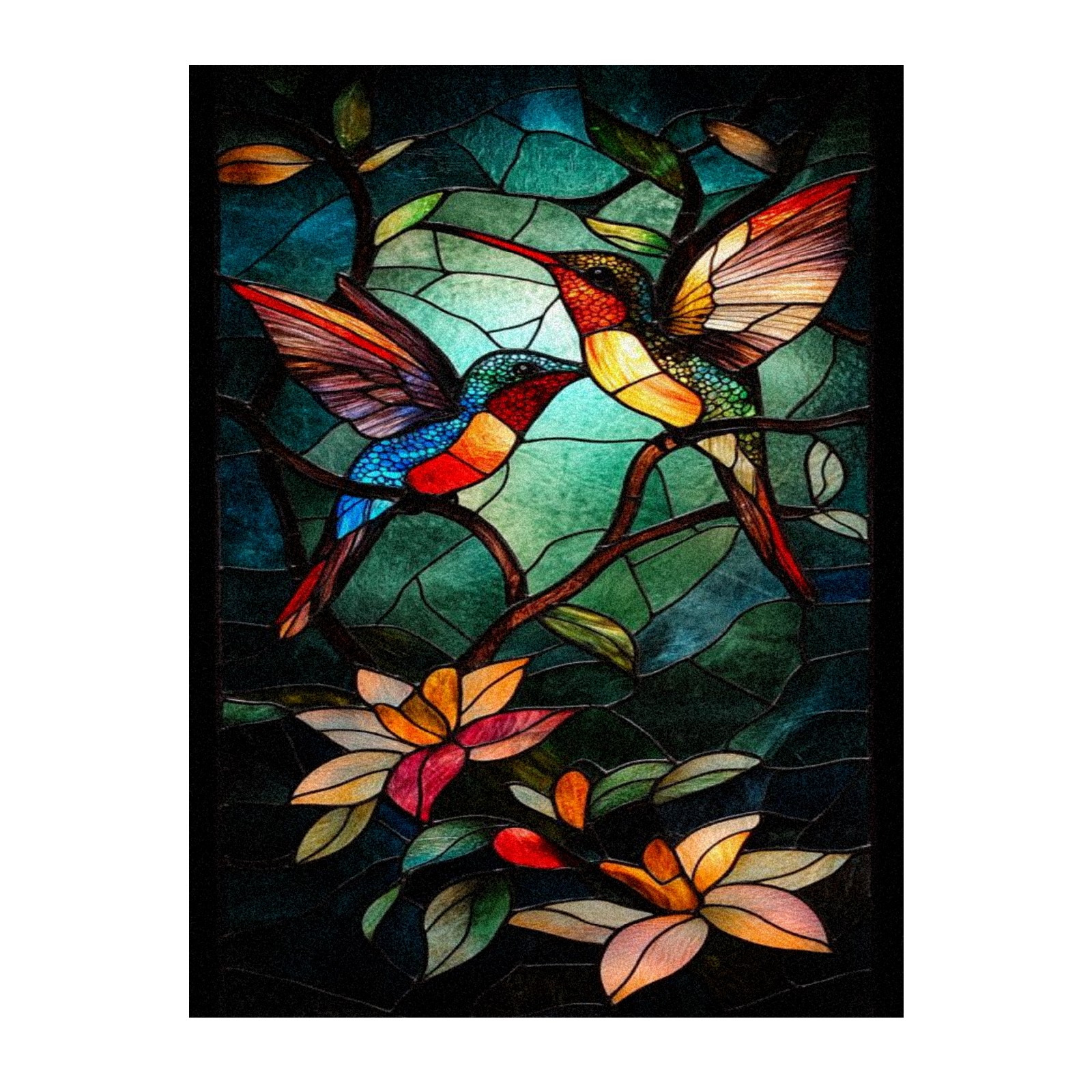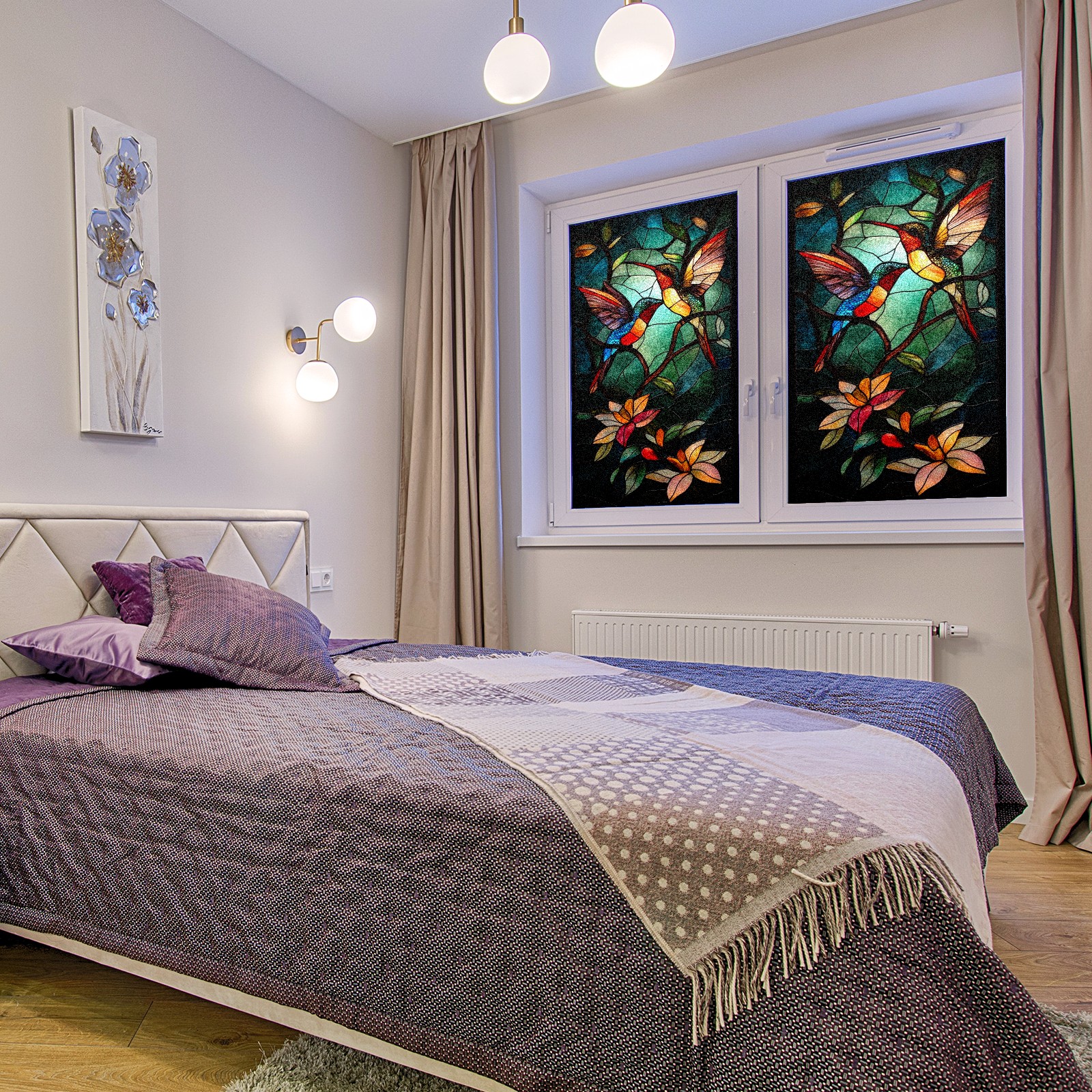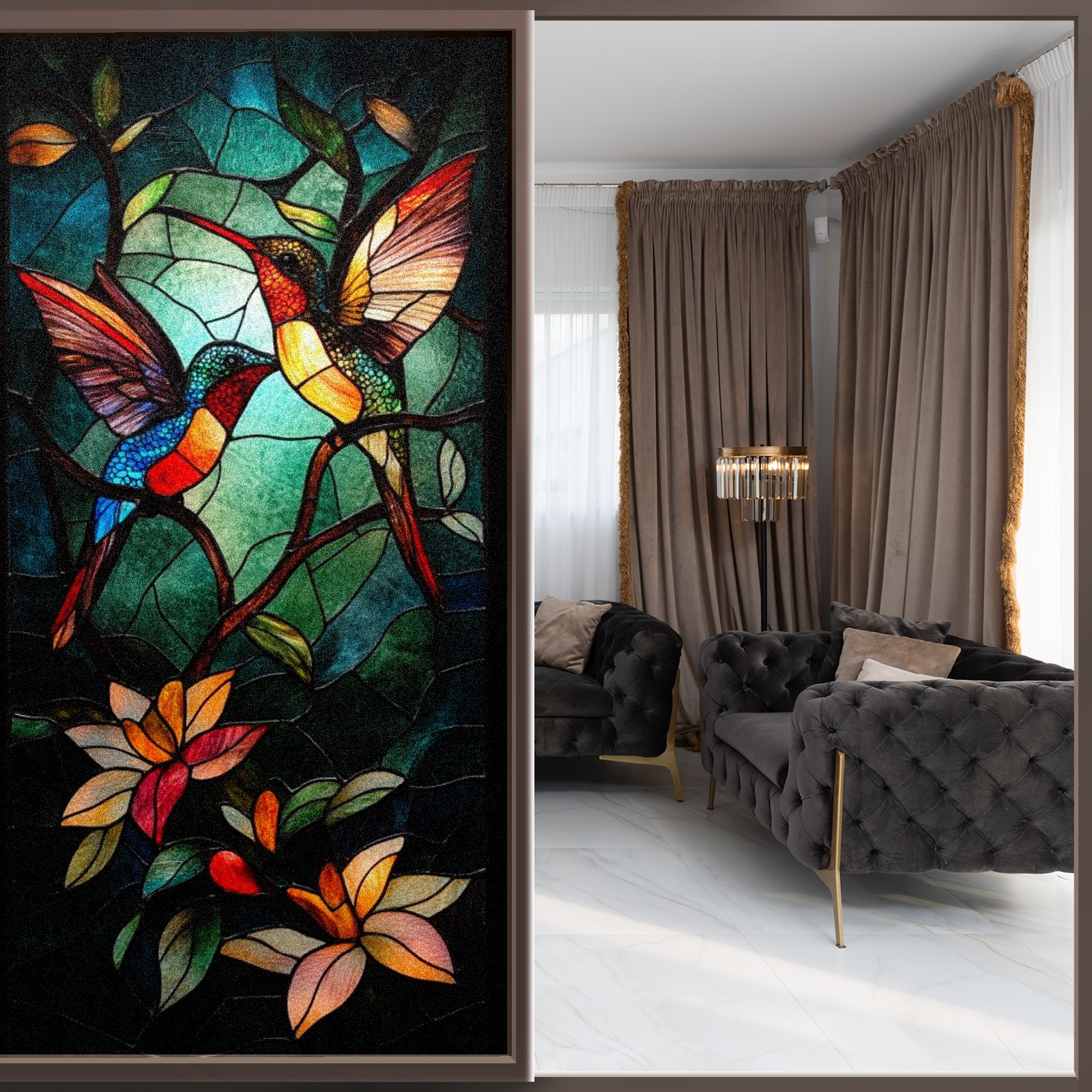 Window Privacy Colored Iris Decorative Window Stickers Hummingbirds Flowers 1 Suitable Home & Office Anti-Sunlight Stickers 17.7x23.6in