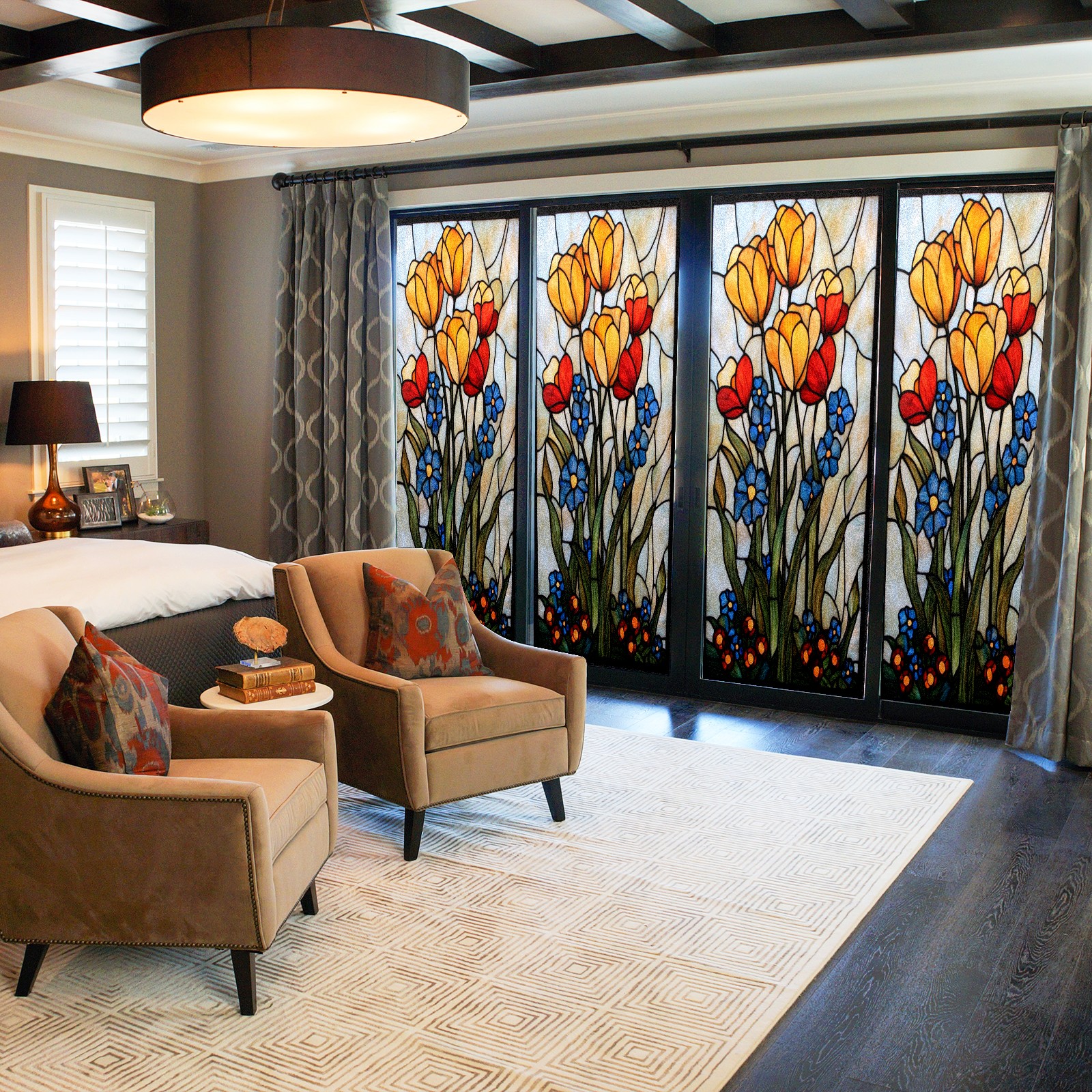<p>Our stained glass privacy window film combines daytime privacy with soft, natural light, blocking unwanted views without the need for heavy curtains! Made from premium PET material with a single-sided frosted finish, it blocks 90% of UV rays and 86% of infrared rays, effectively protecting you and your furniture. This window film requires no adhesive, is environmentally friendly, and reusable (leaving no residue after removal). Available in six sizes, it's suitable for sliding doors, bathrooms, living rooms, offices, hotels, and more. It's the ideal choice for creating a bright, private, and secure space!</p>