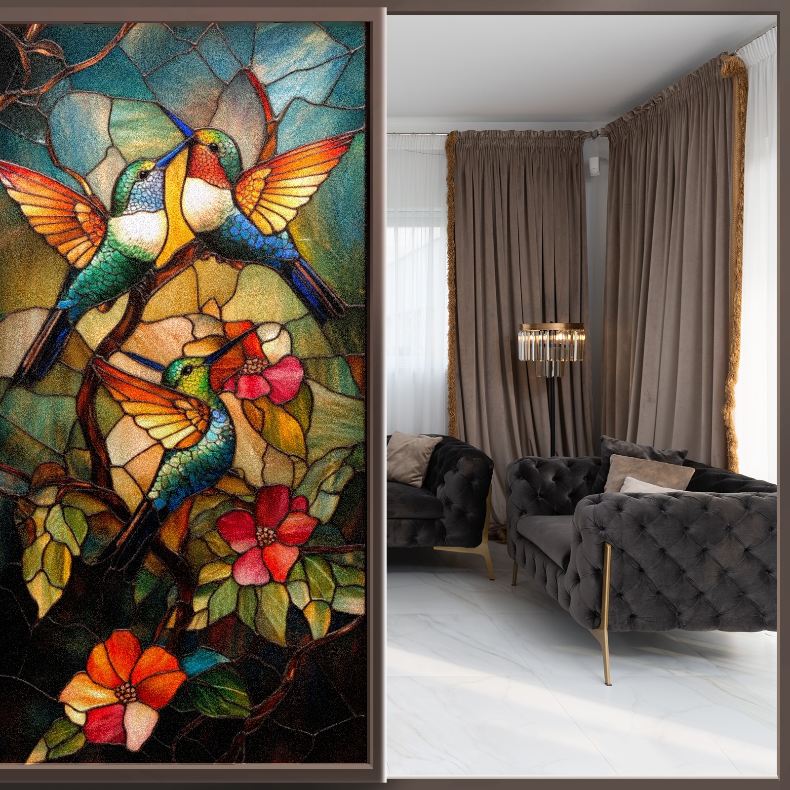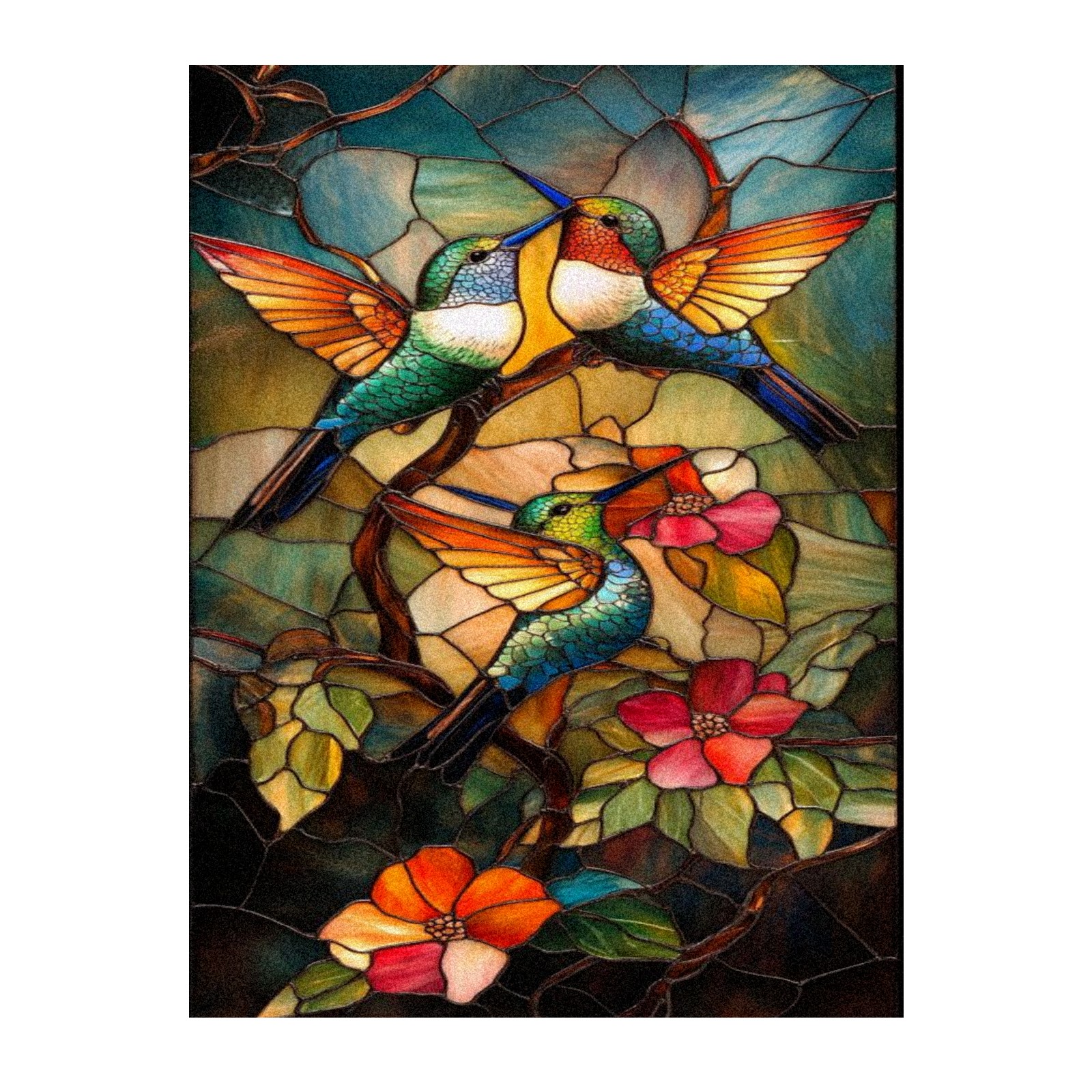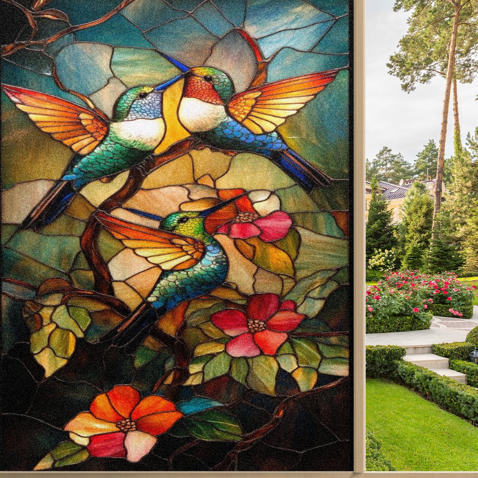 Window Privacy Colored Iris Decorative Window Stickers Hummingbirds Flowers Suitable Home & Office Anti-Sunlight Stickers 17.7x23.6in