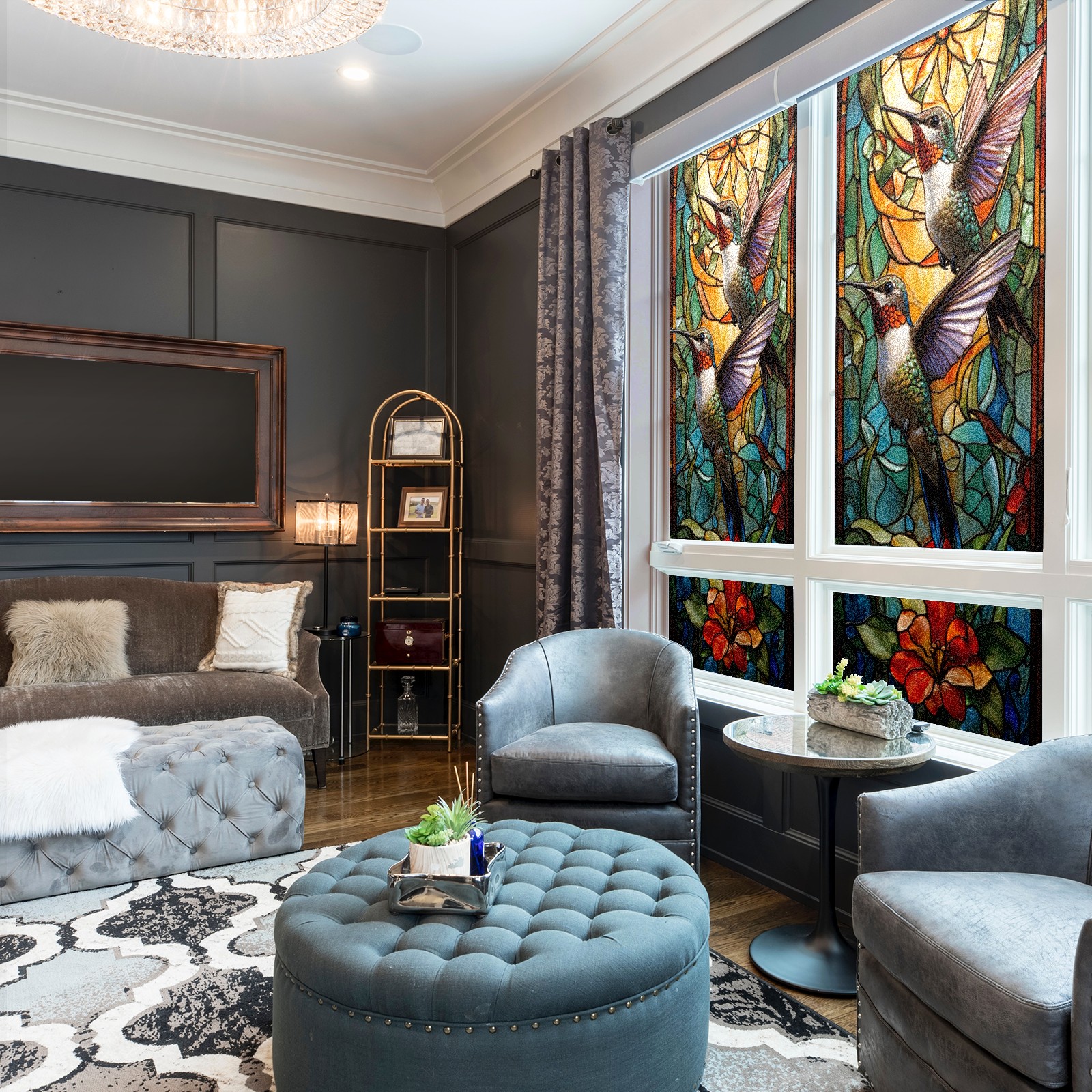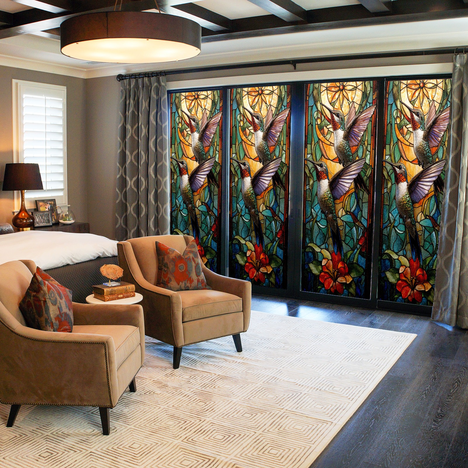 Window Privacy Colored Iris Decorative Window Stickers Double Hummingbird Suitable Home & Office Anti-Sunlight Stickers 17.7x23.6in