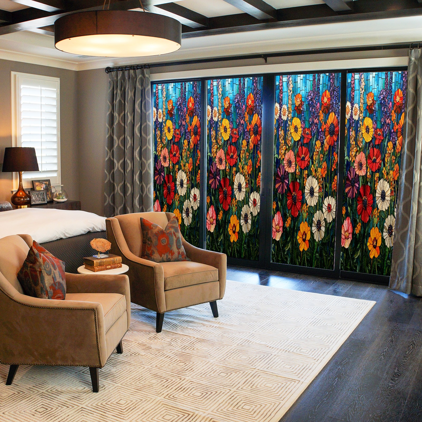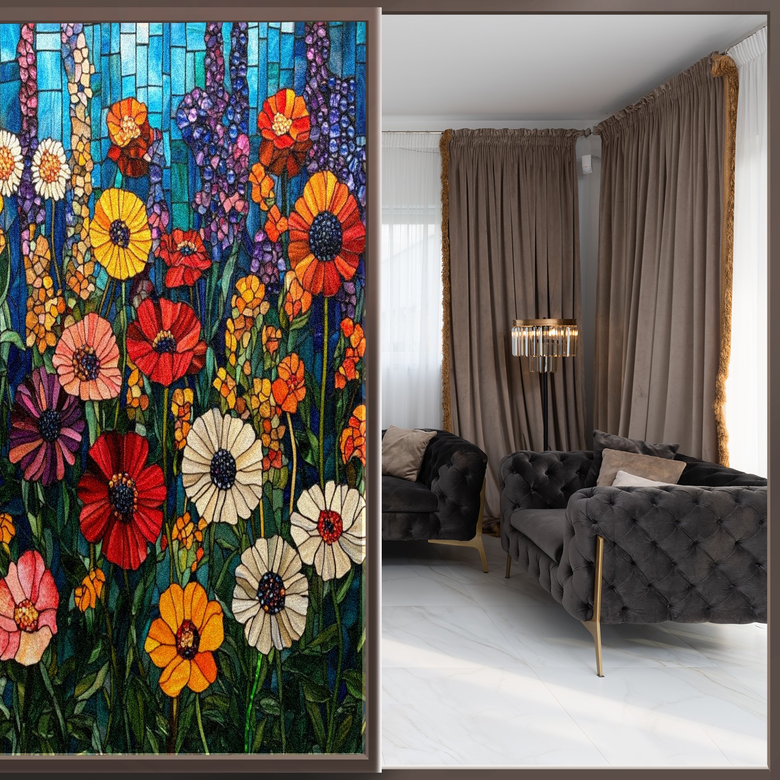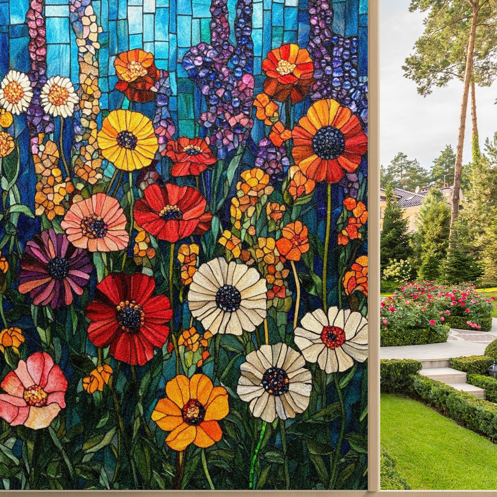 <p>Our stained glass privacy window film combines daytime privacy with soft, natural light, blocking unwanted views without the need for heavy curtains! Made from premium PET material with a single-sided frosted finish, it blocks 90% of UV rays and 86% of infrared rays, effectively protecting you and your furniture. This window film requires no adhesive, is environmentally friendly, and reusable (leaving no residue after removal). Available in six sizes, it's suitable for sliding doors, bathrooms, living rooms, offices, hotels, and more. It's the ideal choice for creating a bright, private, and secure space!</p>