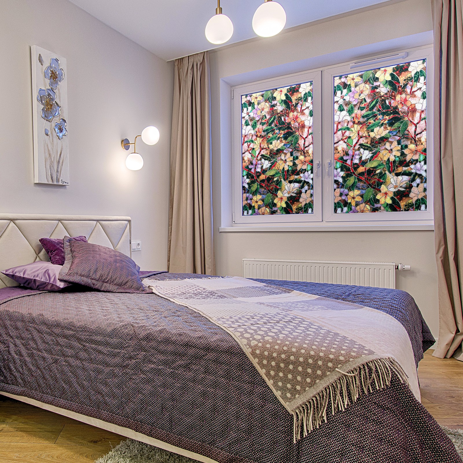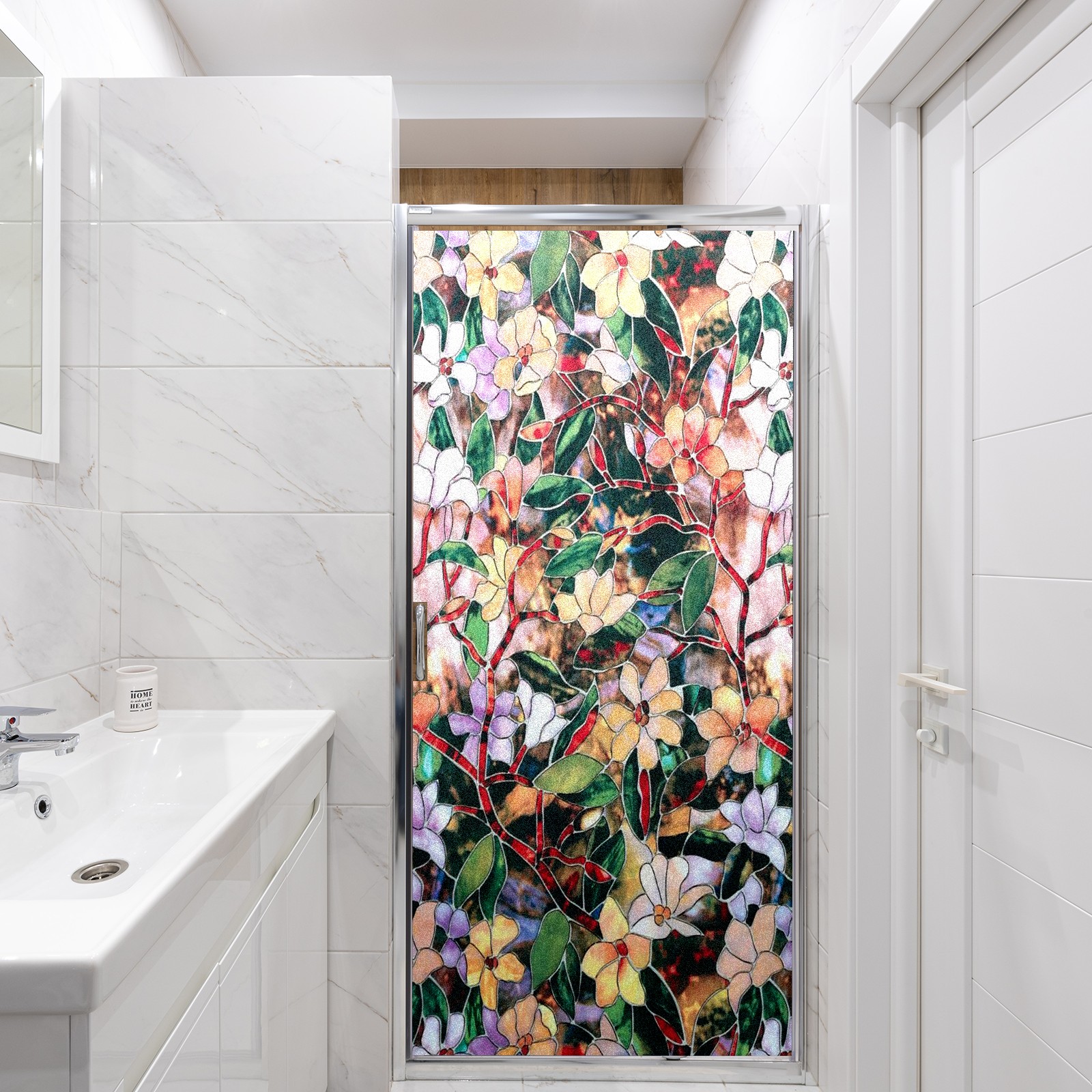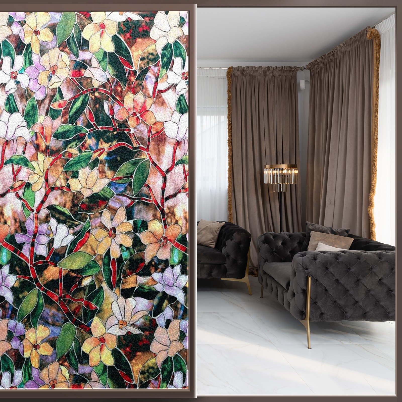 Window Privacy Film Decorative Window Decal Film Removable Static Cling Window Tint for Home Bedroom Sun Blocking Stickers 17.7 x 23.6 Inches Colorful Magnolia Floral