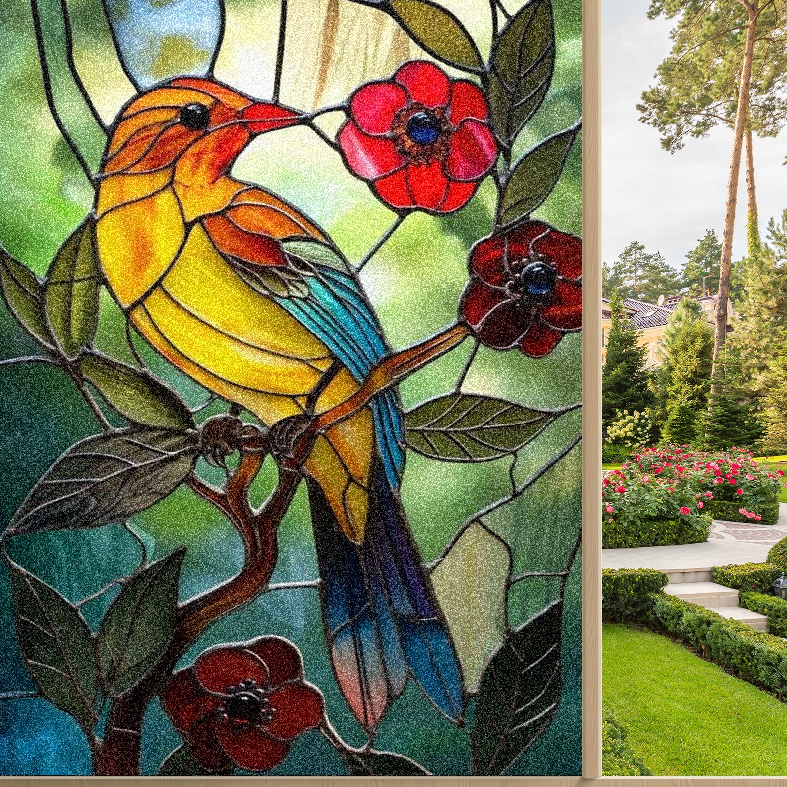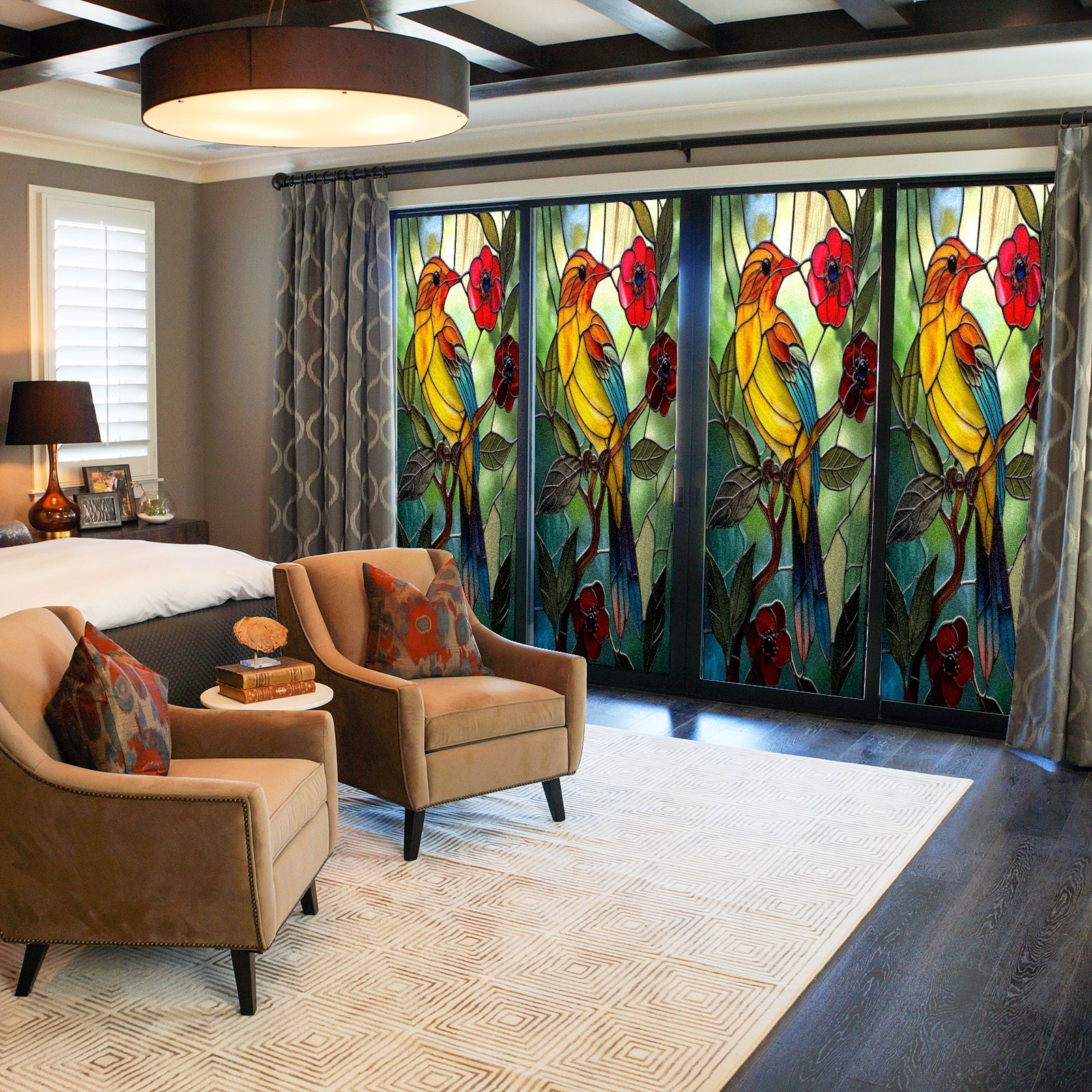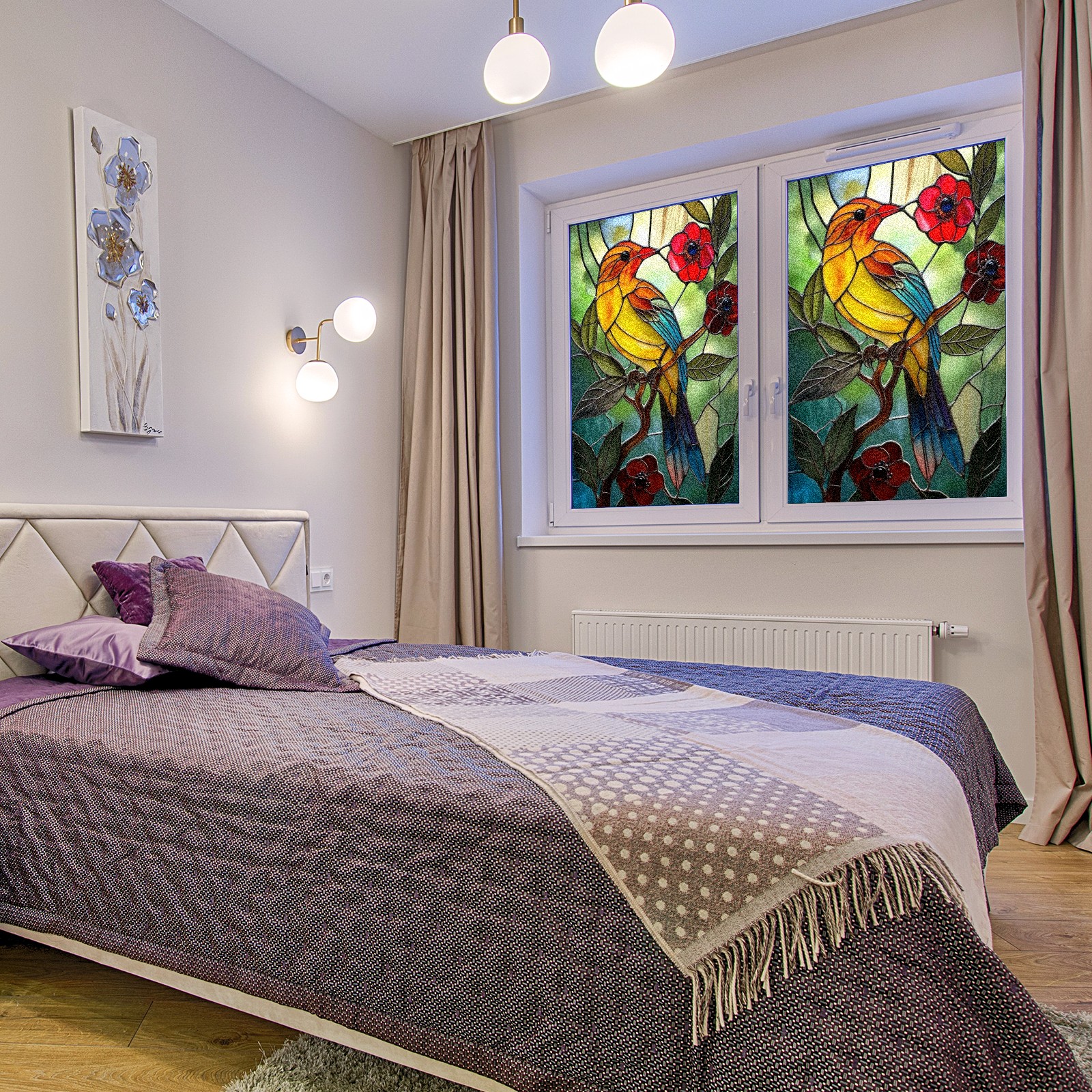 Window Privacy Film Decorative Window Decal Film Removable Static Cling Window Tint for Home Bedroom Sun Blocking Stickers 17.7 x 23.6 Inches Colorful Bird Red Flowers