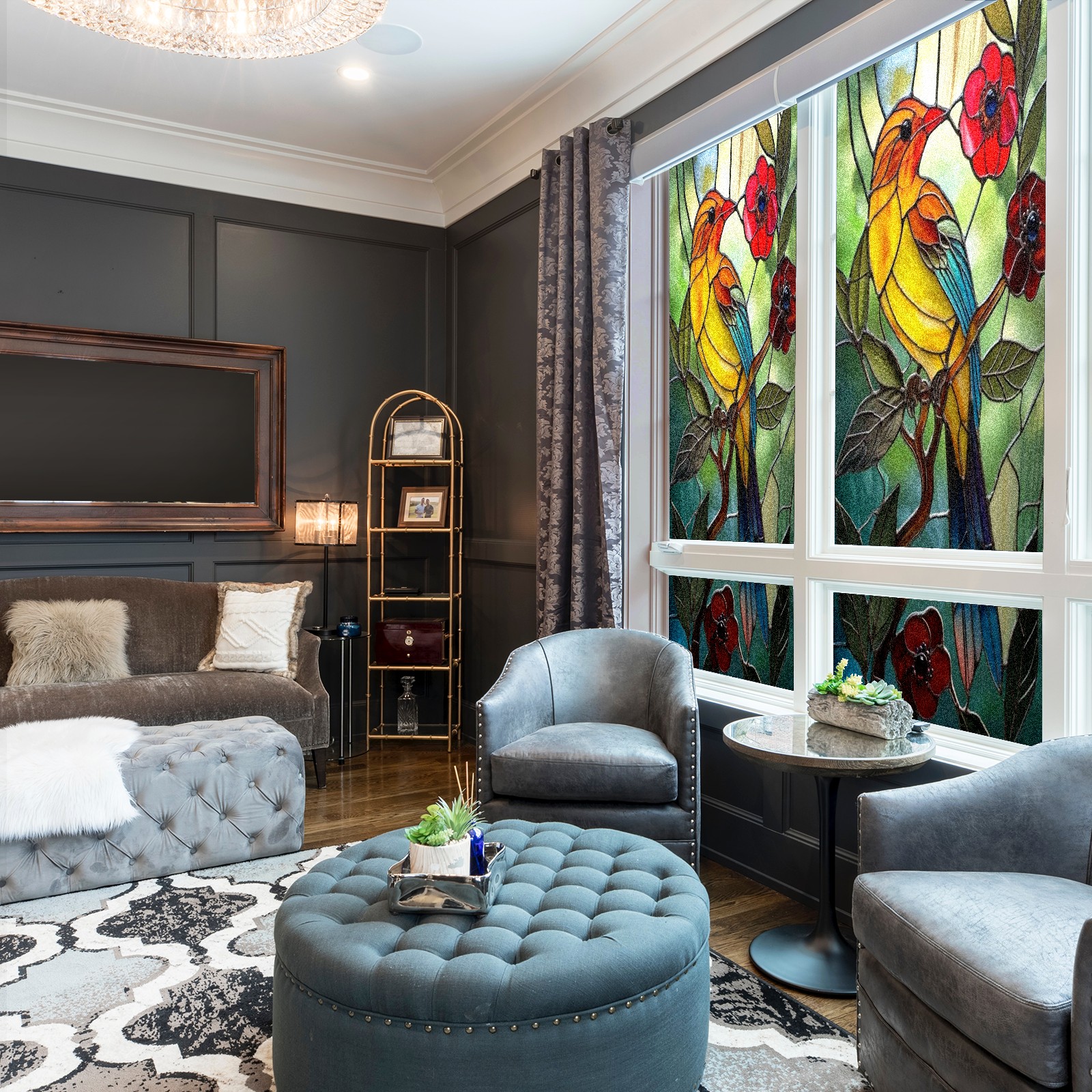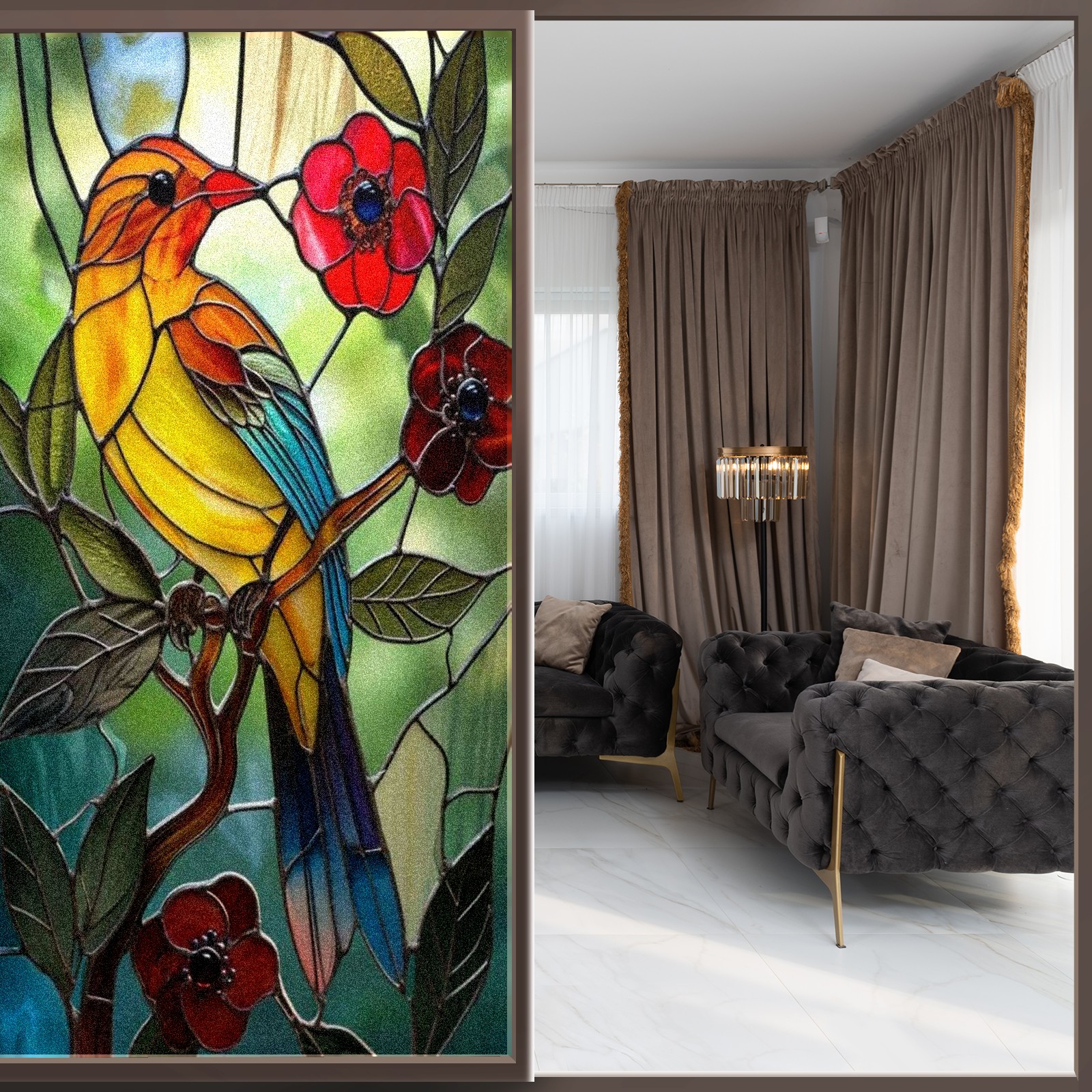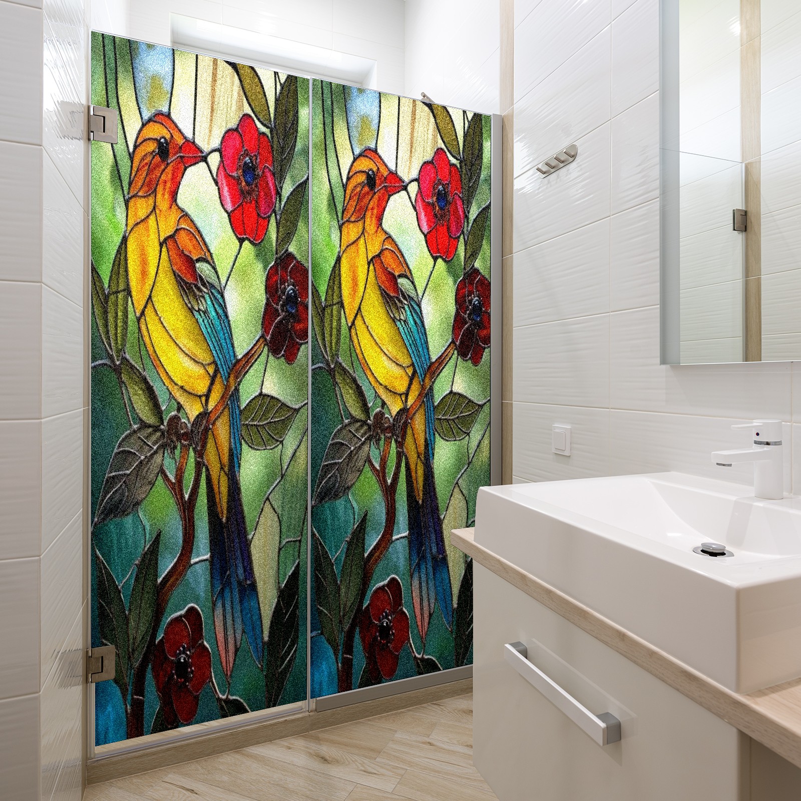 Window Privacy Film Decorative Window Decal Film Removable Static Cling Window Tint for Home Bedroom Sun Blocking Stickers 17.7 x 23.6 Inches Colorful Bird Red Flowers