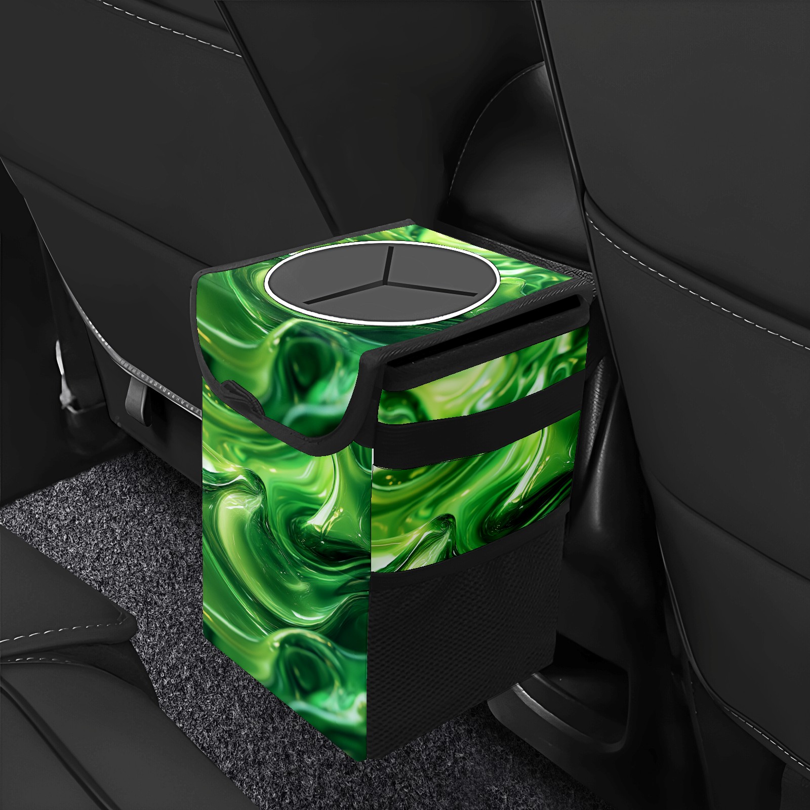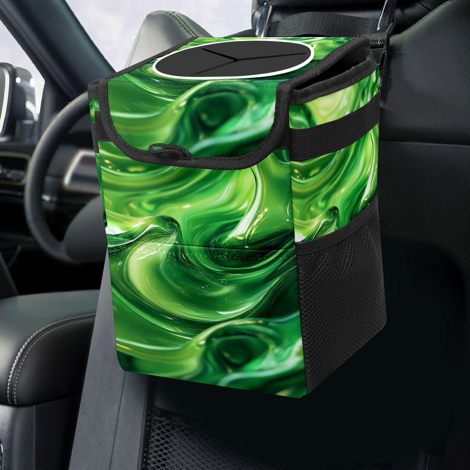 Universal Hanging Car Trash Can - Leakproof Design with Secure Lid | Fits SUV, Truck, Van | Front & Back Seat Friendly | Smart Automotive Accessory Green Wave