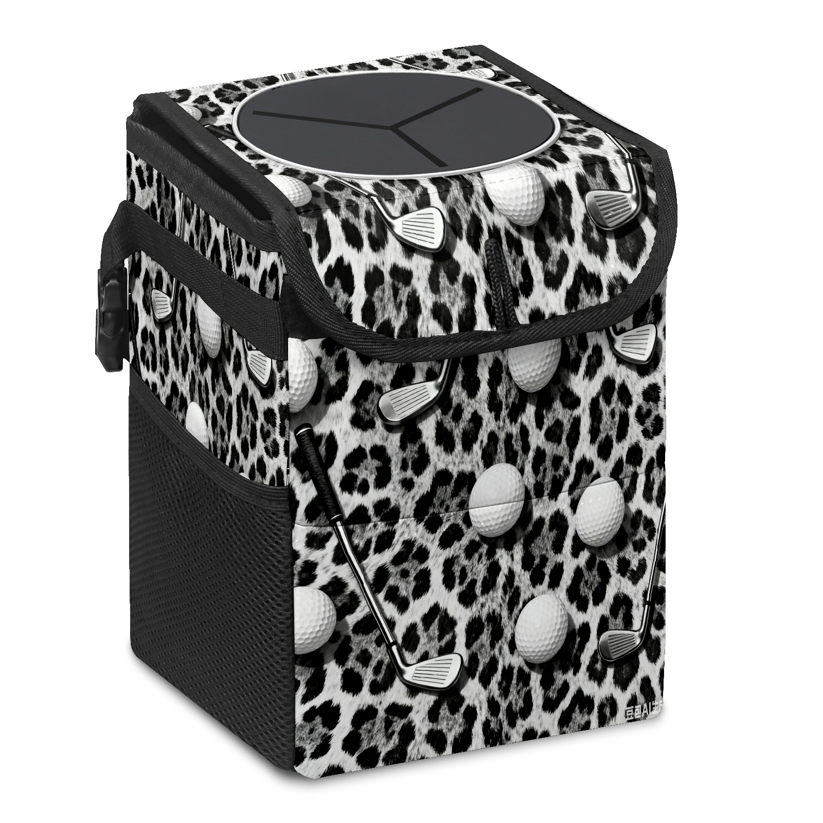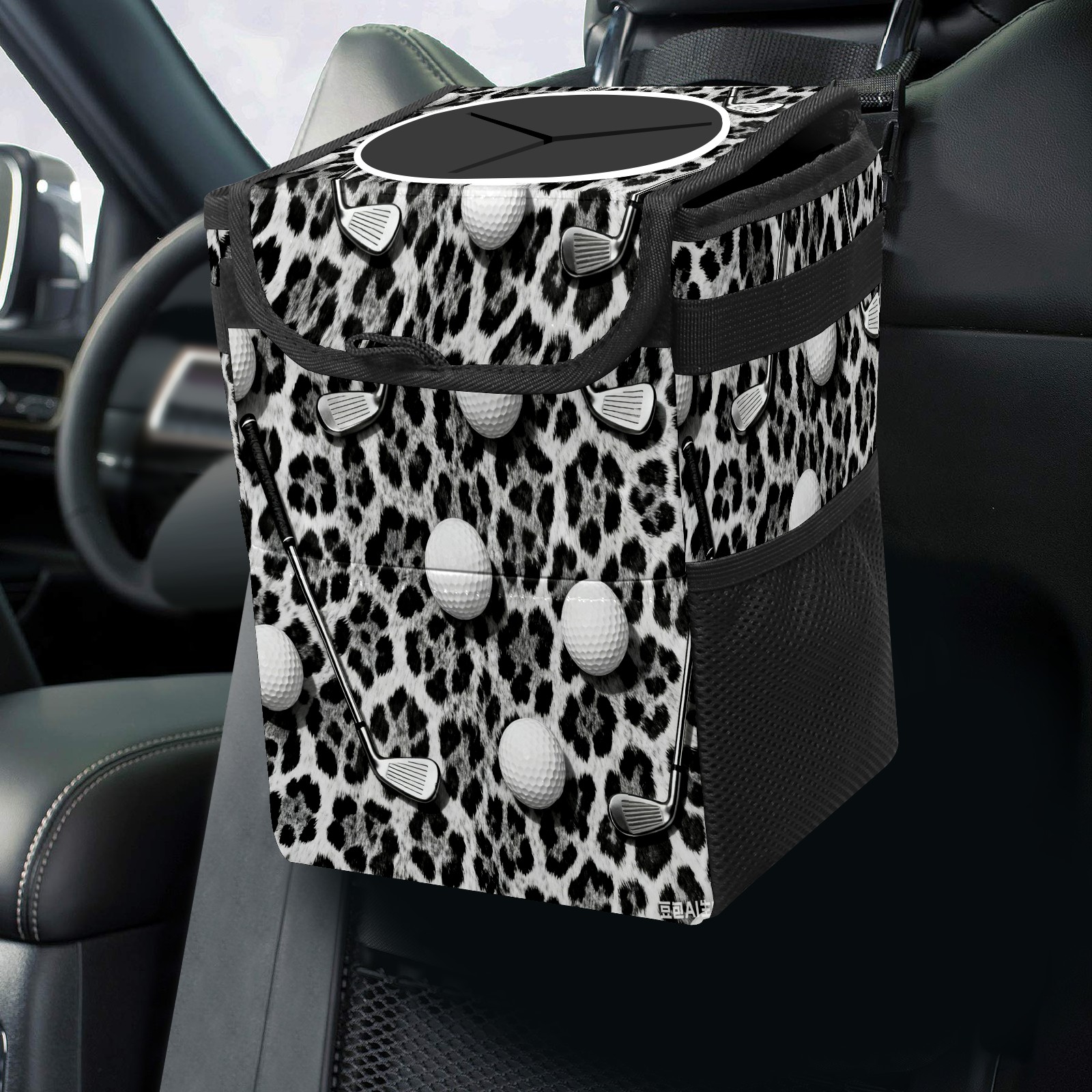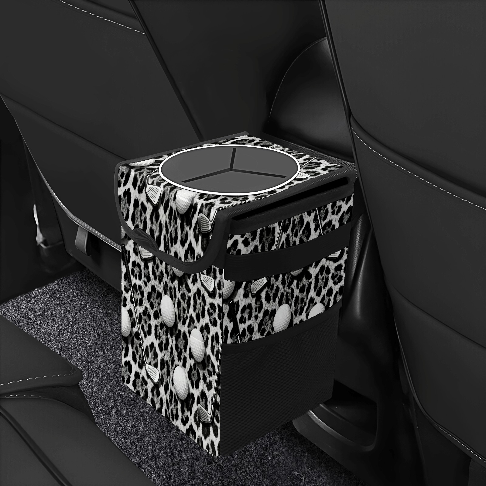 Universal Hanging Car Trash Can - Leakproof Design with Secure Lid | Fits SUV, Truck, Van | Front & Back Seat Friendly | Smart Automotive Accessory Leopard Print 2