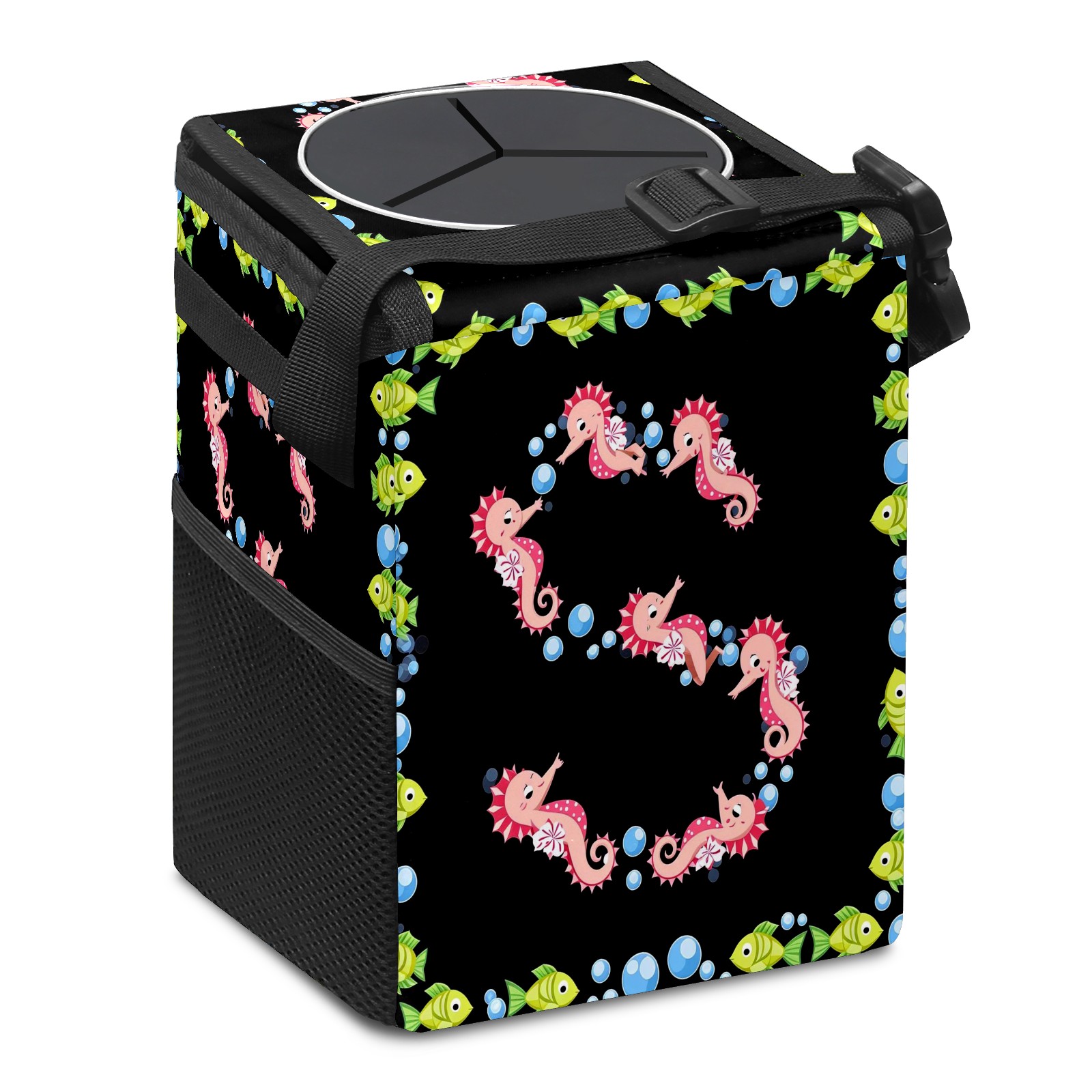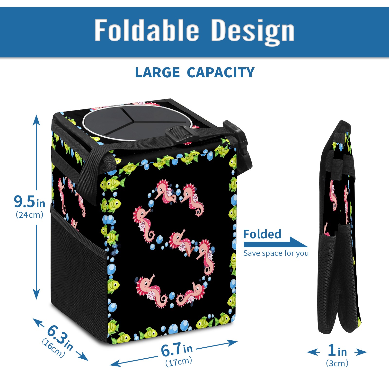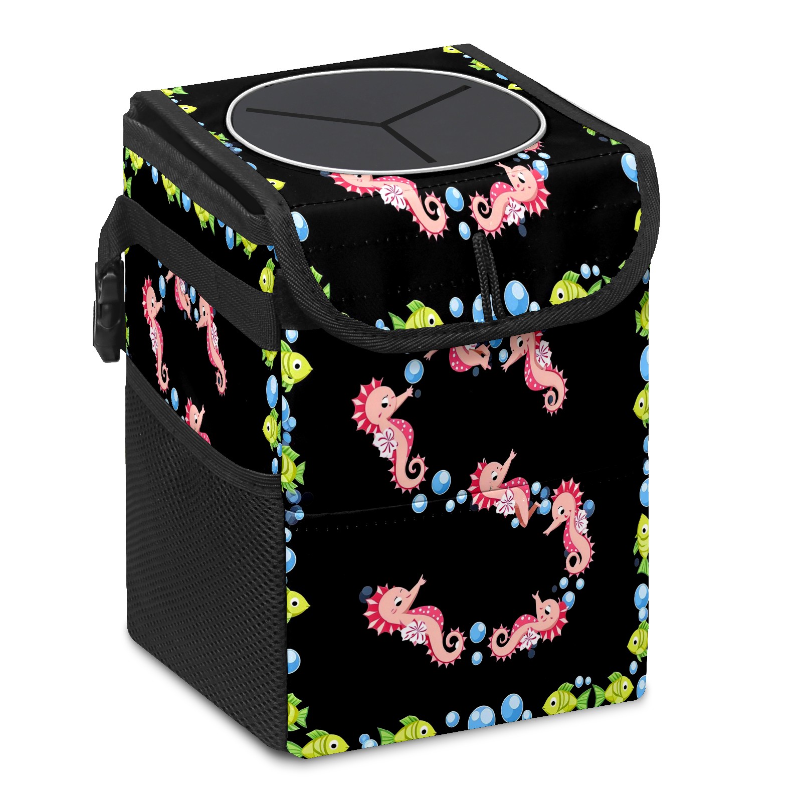 Universal Hanging Car Trash Can - Leakproof Design with Secure Lid | Fits SUV, Truck, Van | Front & Back Seat Friendly | Smart Automotive Accessory Seahorse Fish Black