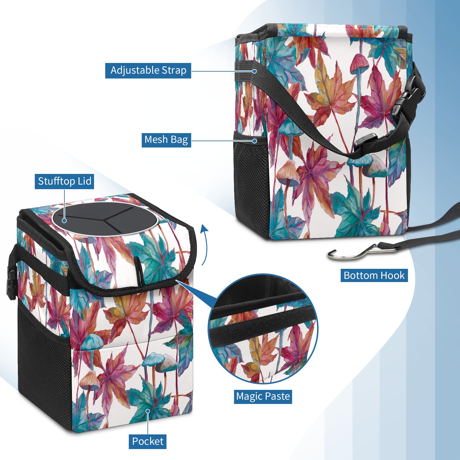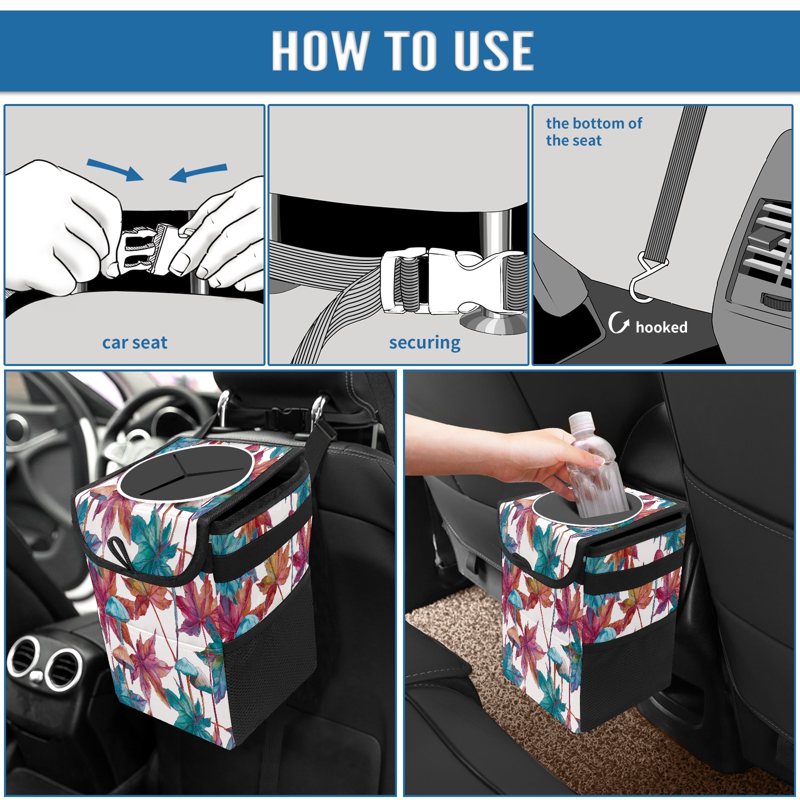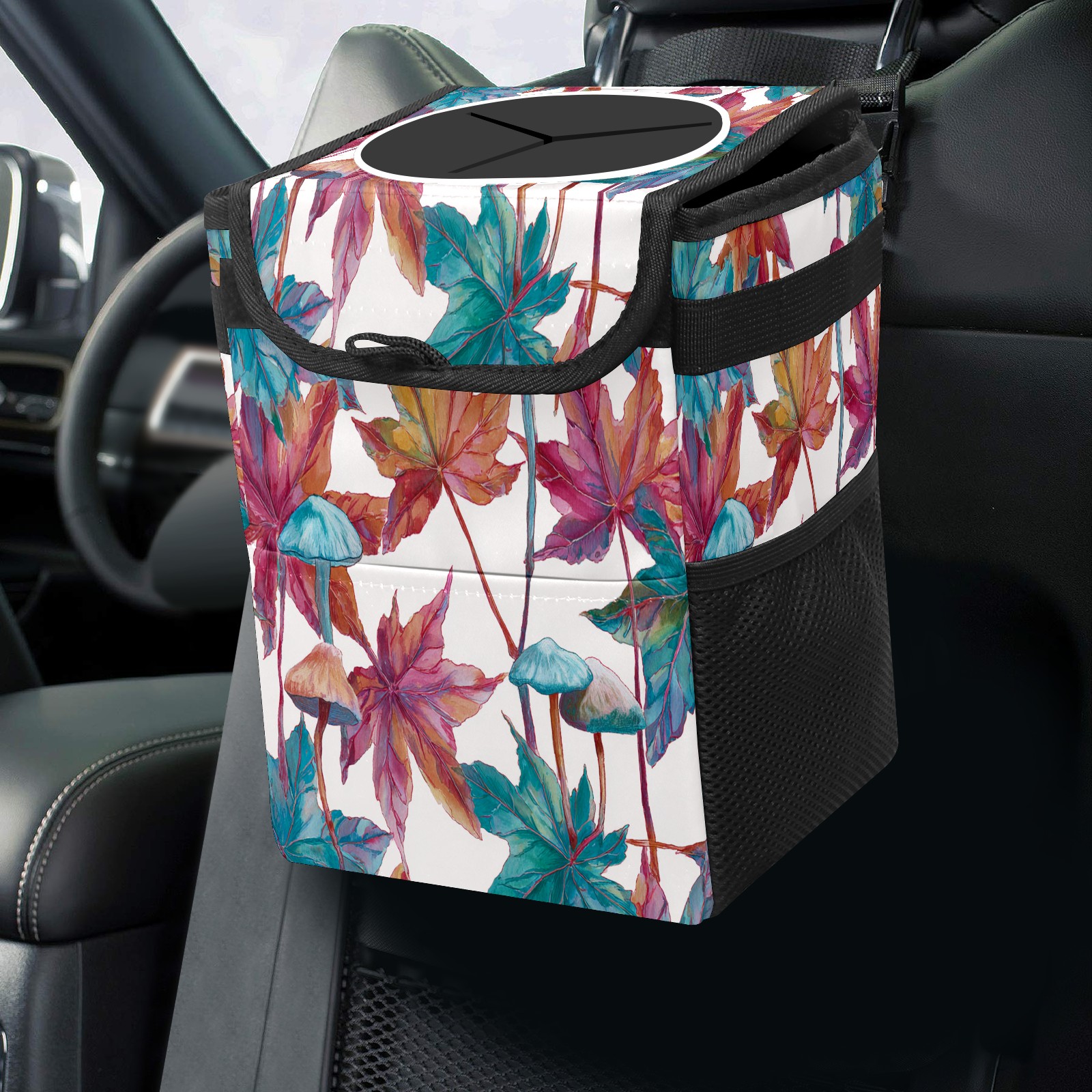 Universal Hanging Car Trash Can - Leakproof Design with Secure Lid | Fits SUV, Truck, Van | Front & Back Seat Friendly | Smart Automotive Accessory Maple Leaf BlueRed