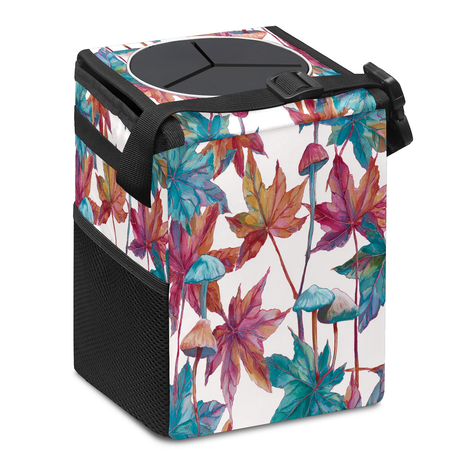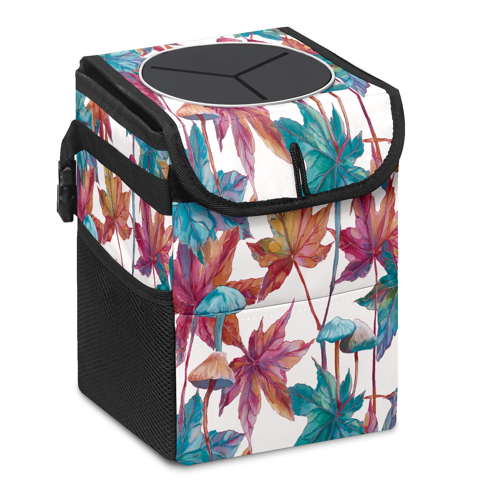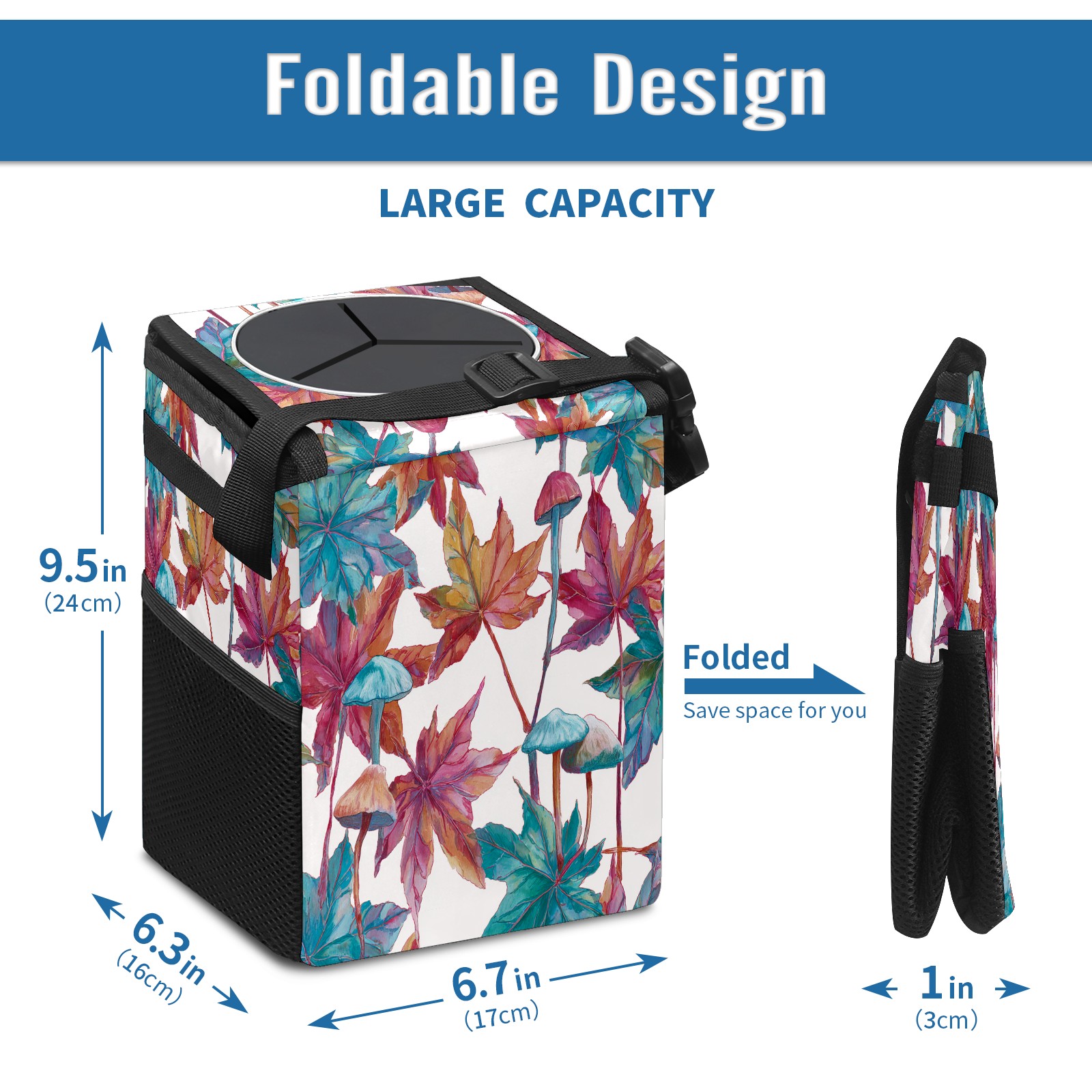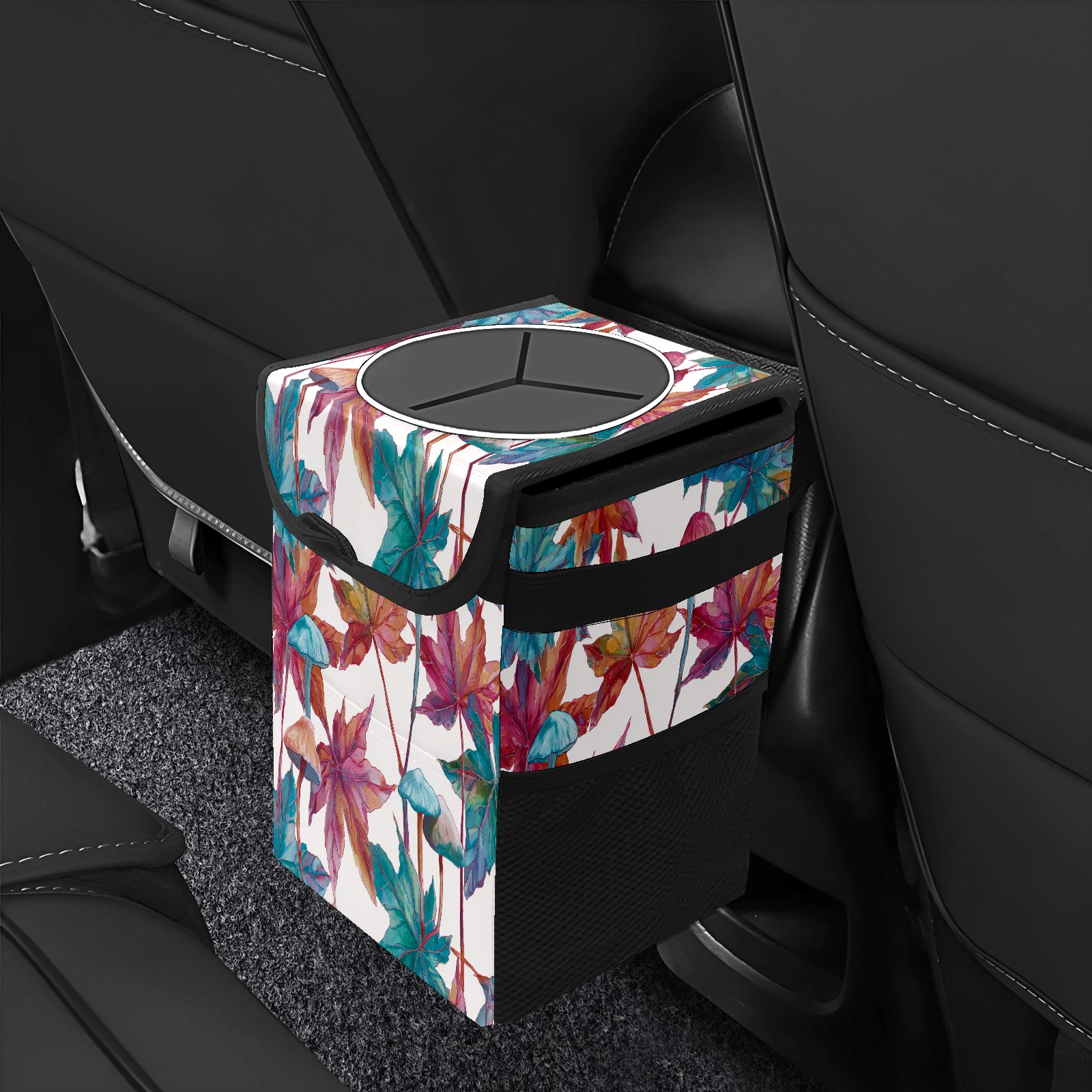 • <p>This multi-functional car trash can features a stylish printed design, combining practicality and aesthetics. Made with high-quality twill fabric and woven straps, it's sturdy and durable. Dimensions: 24×17×16cm (9.5×6.7×6.3 inches). The top rubber opening lid makes disposing of trash easy, while side mesh pockets and a front pocket easily store snacks, mobile phones, and other small items. Equipped with a dual securing system of straps and elastic hooks, it can be flexibly hung behind headrests, inside armrest boxes, or hooked to the bottom of seat cushions. Not only can it be used as a trash can, but it can also function as a food or miscellaneous item storage box, achieving multiple uses. When not in use, it can be folded for storage, saving space and creating a clean and tidy environment for your car.<br></p>