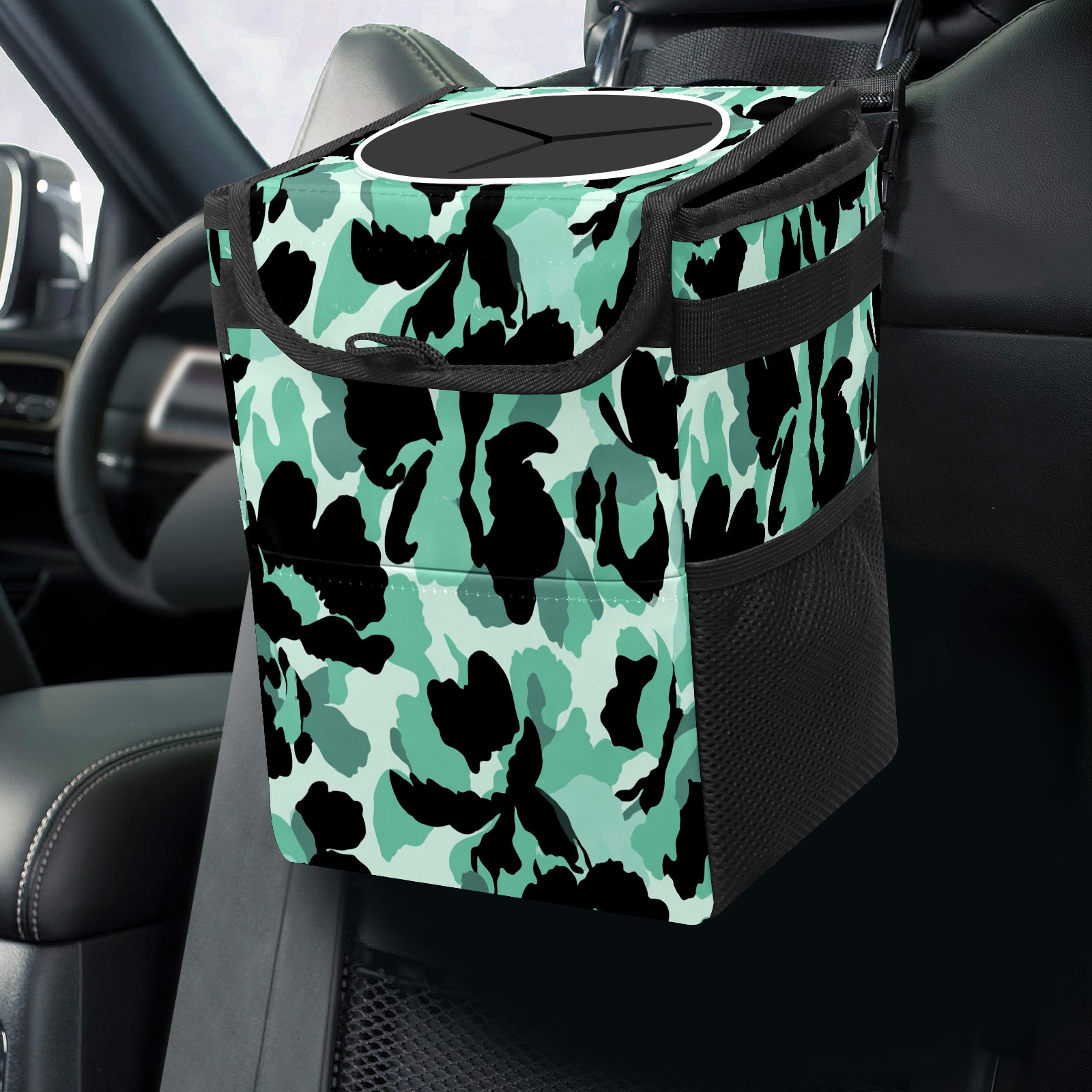 Universal Hanging Car Trash Can - Leakproof Design with Secure Lid | Fits SUV, Truck, Van | Front & Back Seat Friendly | Smart Automotive Accessory Camouflage BlackGreen