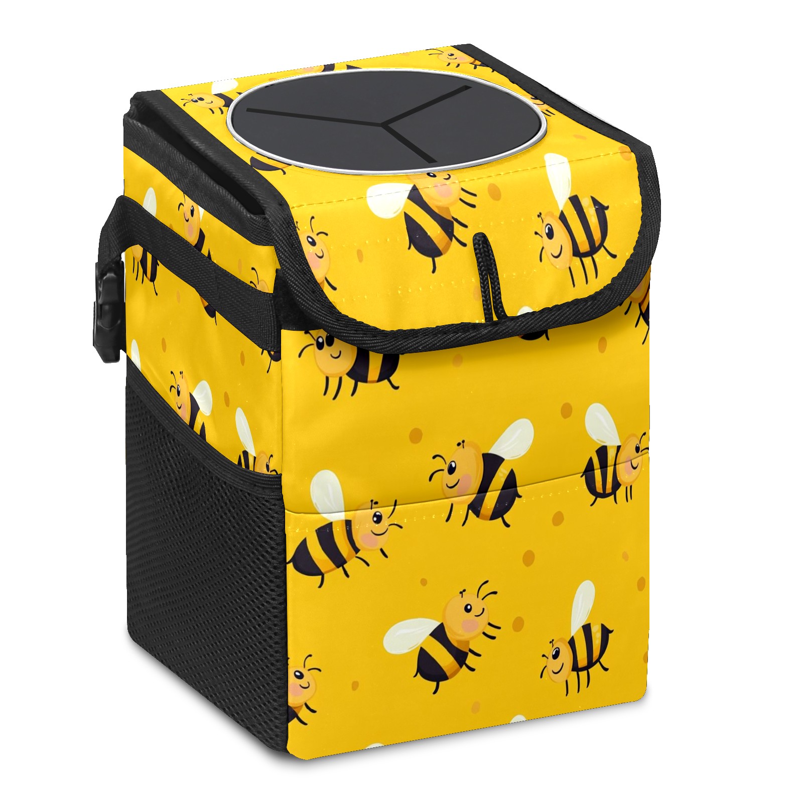 Universal Hanging Car Trash Can - Leakproof Design with Secure Lid | Fits SUV, Truck, Van | Front & Back Seat Friendly | Smart Automotive Accessory Black-striped Honeybee