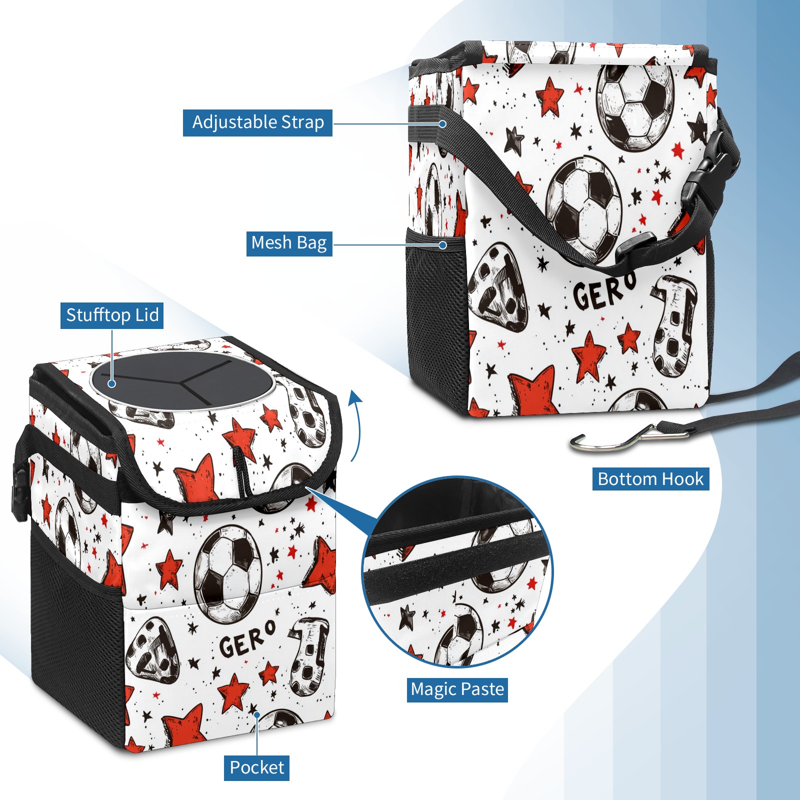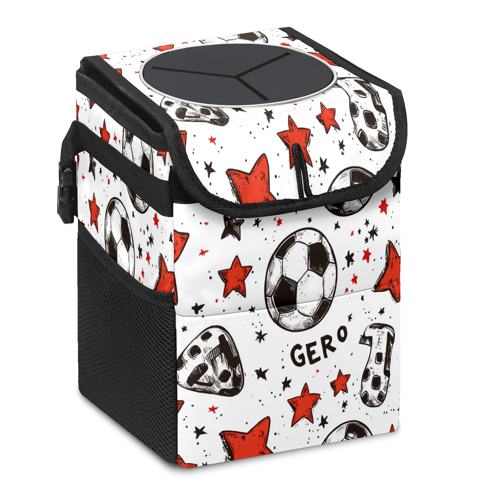 Universal Hanging Car Trash Can - Leakproof Design with Secure Lid | Fits SUV, Truck, Van | Front & Back Seat Friendly | Smart Automotive Accessory Football Elements