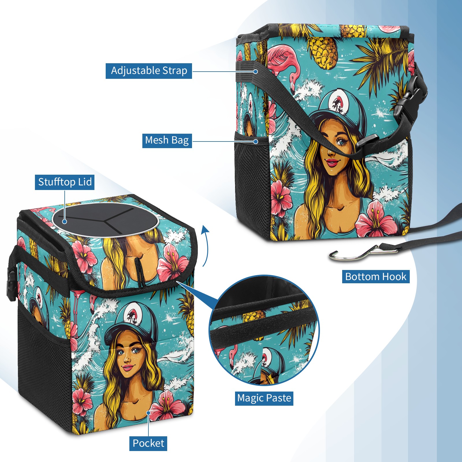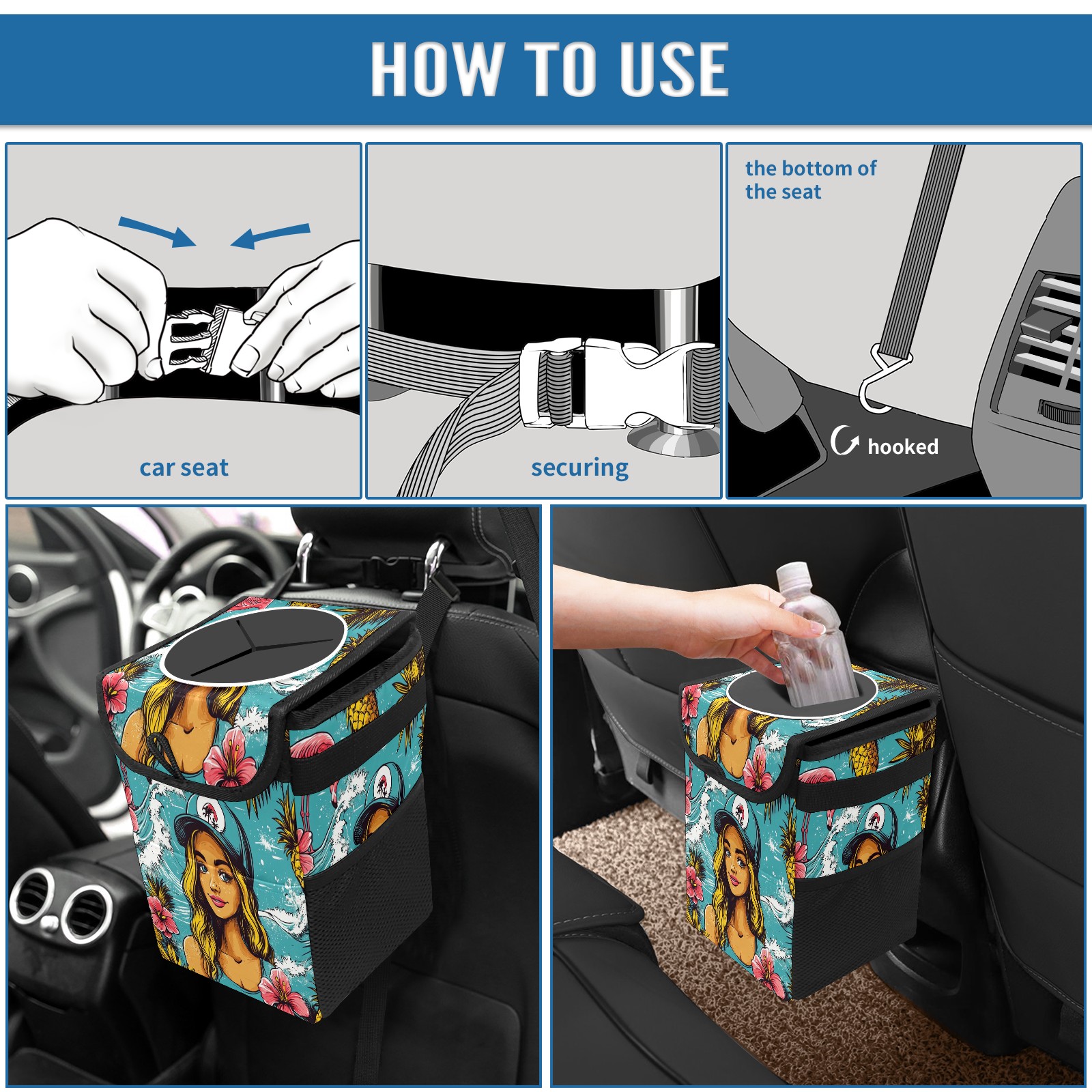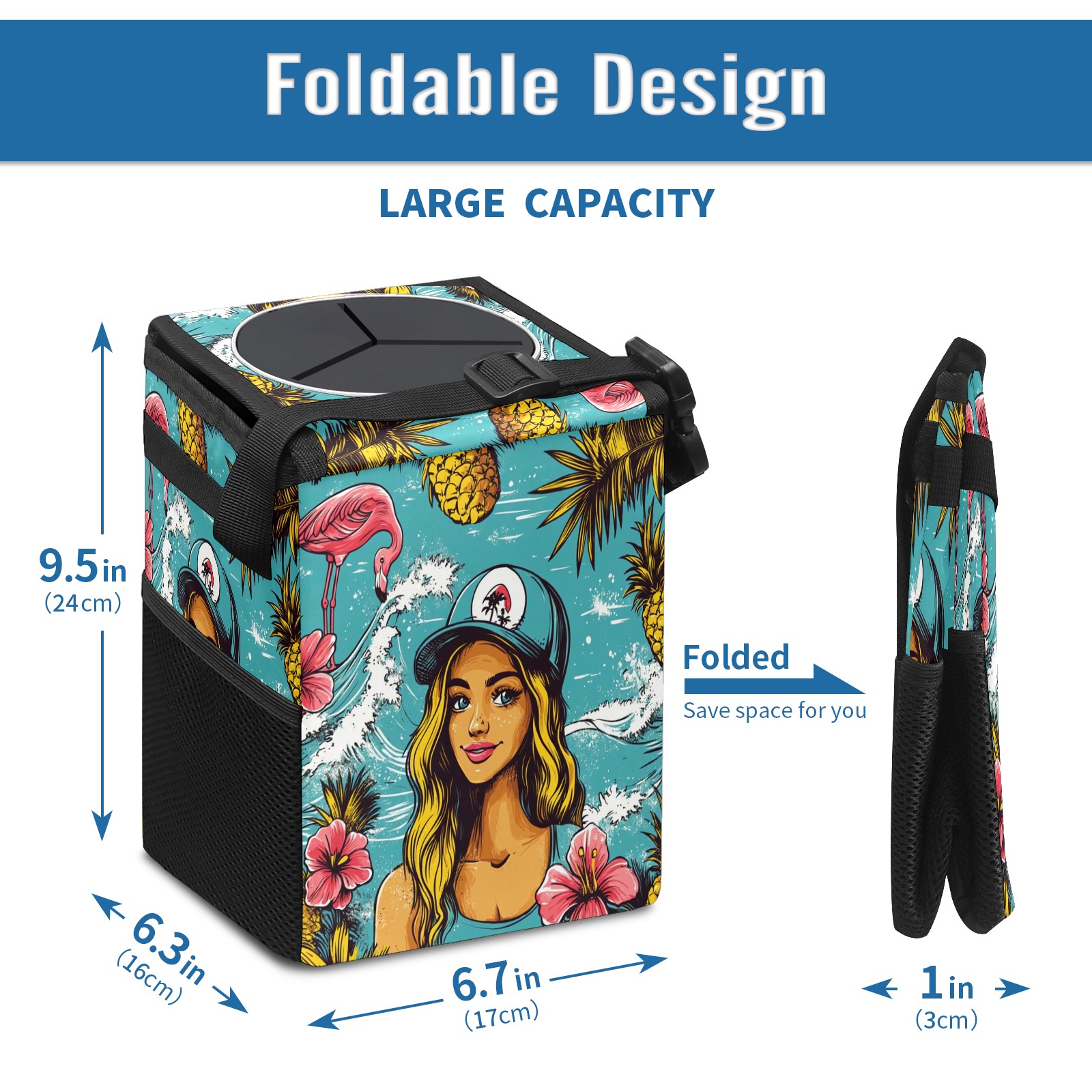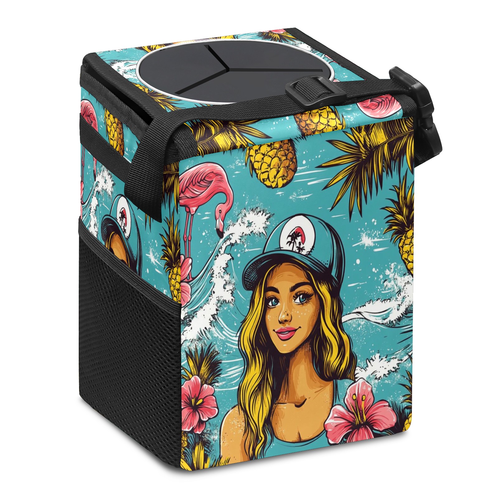 Universal Hanging Car Trash Can - Leakproof Design with Secure Lid | Fits SUV, Truck, Van | Front & Back Seat Friendly | Smart Automotive Accessory Tropical Blonde Girl