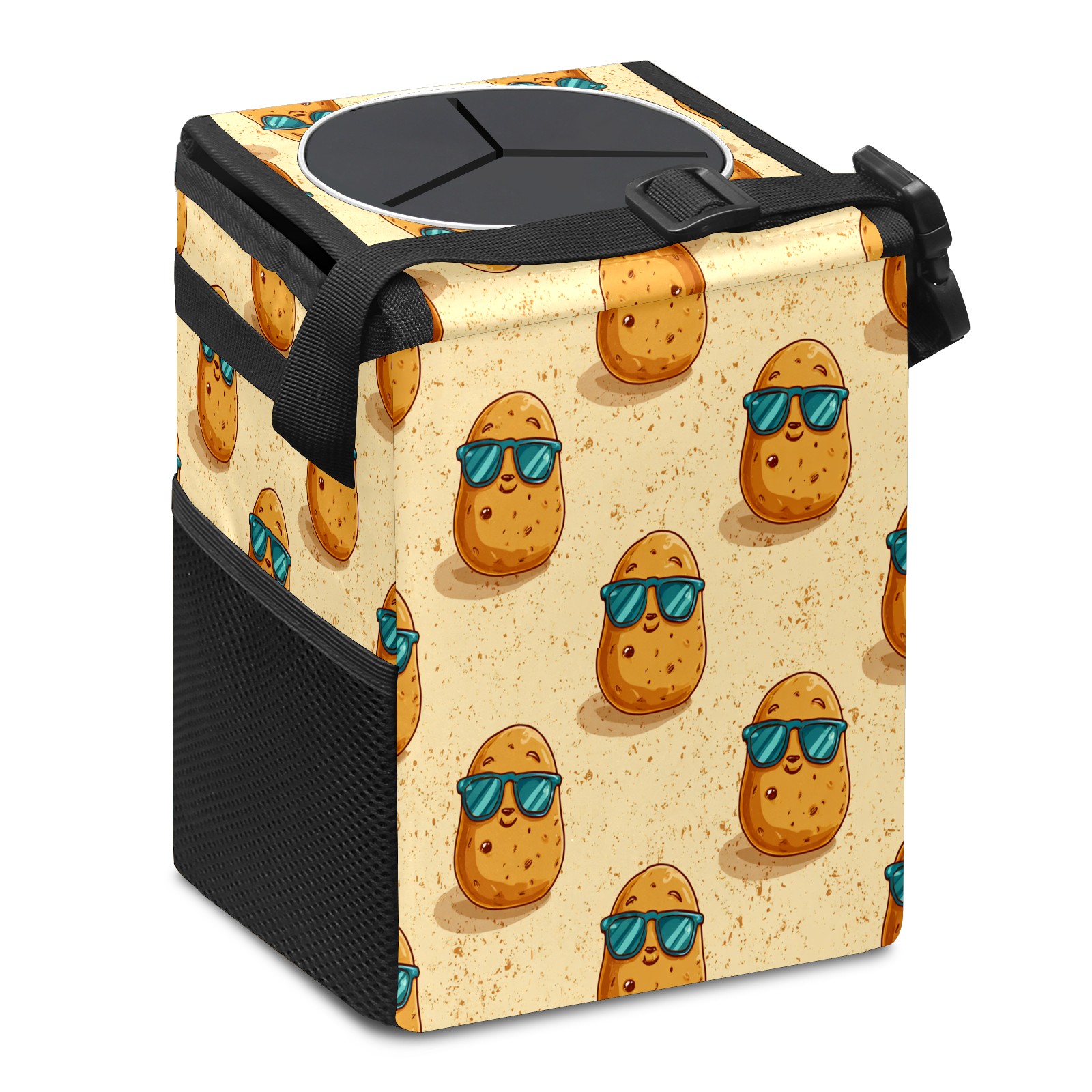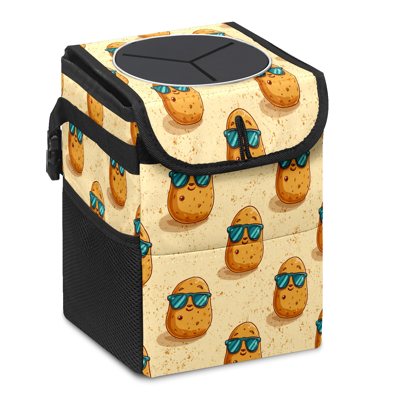 Universal Hanging Car Trash Can - Leakproof Design with Secure Lid | Fits SUV, Truck, Van | Front & Back Seat Friendly | Smart Automotive Accessory Potato Cartoon Beige