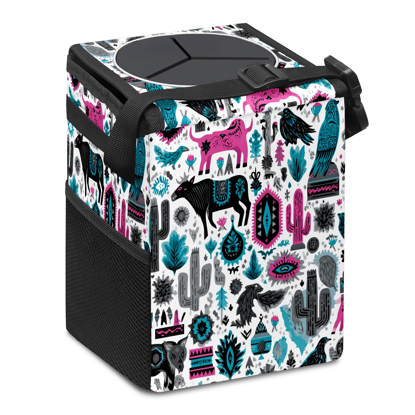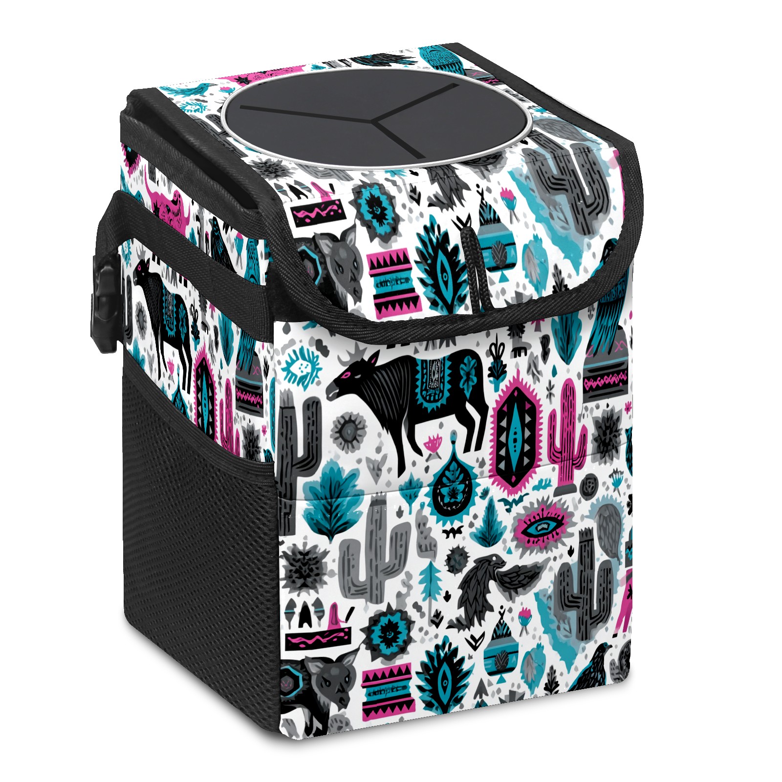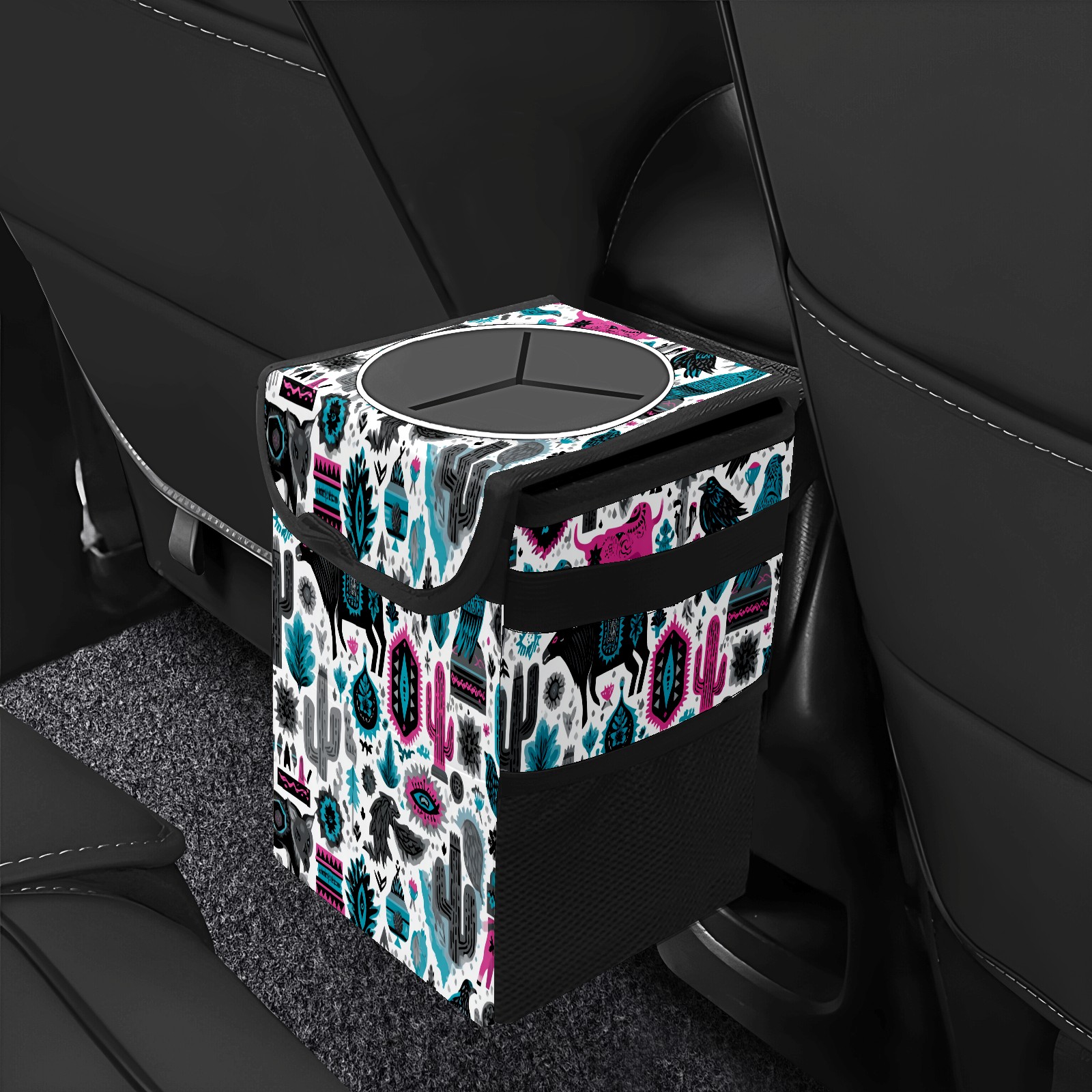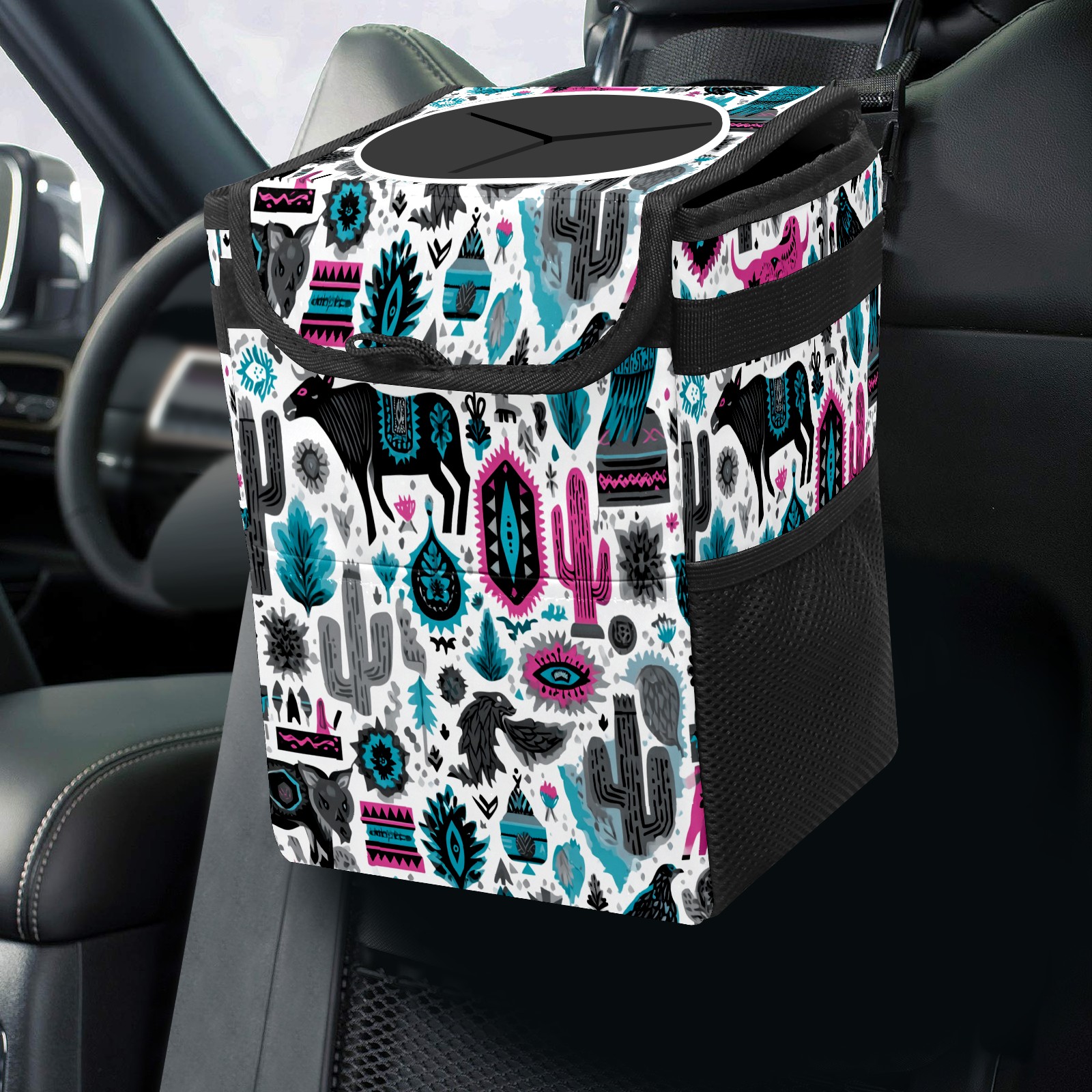 Universal Hanging Car Trash Can - Leakproof Design with Secure Lid | Fits SUV, Truck, Van | Front & Back Seat Friendly | Smart Automotive Accessory Arizona Totem Multicolor