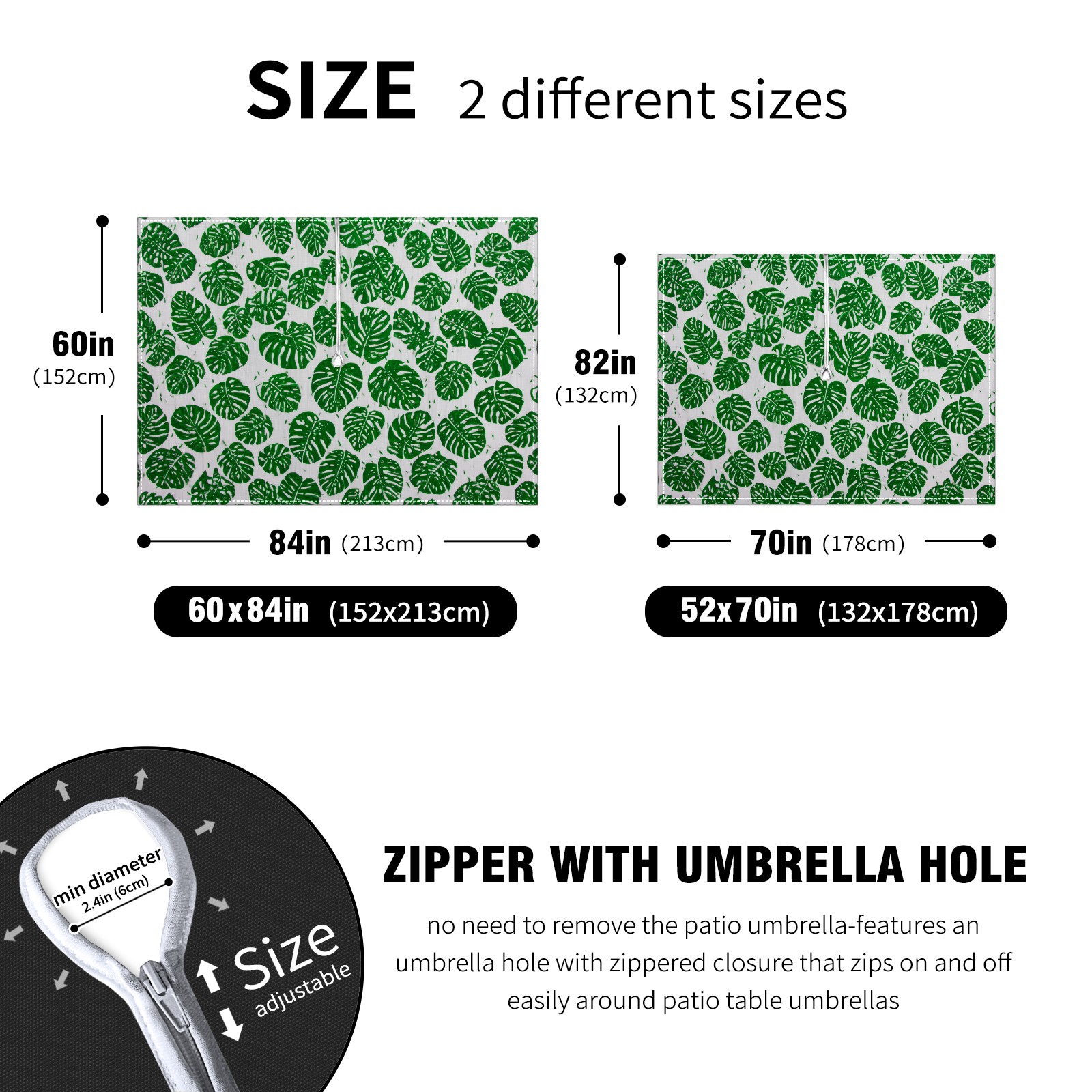<p><strong>Effortless Outdoor Elegance, in Seconds.</strong></p><p>Tired of struggling with your patio umbrella? Our Square Tablecloth features a <strong>game-changing zippered hole</strong> that lets you set a beautiful table <strong>without removing the umbrella!</strong></p><p>• <strong>ZIPPERED DESIGN</strong>: No more heavy lifting. Instant setup for patios and decks.<br /> • <strong>PERFECT RECTANGULAR FIT</strong>: Available in sizes to fit most outdoor tables.<br /> • <strong>DURABLE &amp; WATER-RESISTANT</strong>: Thick polyester fabric protects against spills and sun.<br /> • <strong>ELEVATES ANY SPACE</strong>: Perfect for family BBQs, parties, or commercial use.</p><p><strong>Click Add to Cart for a Hassle-Free Outdoor Experience!</strong></p>