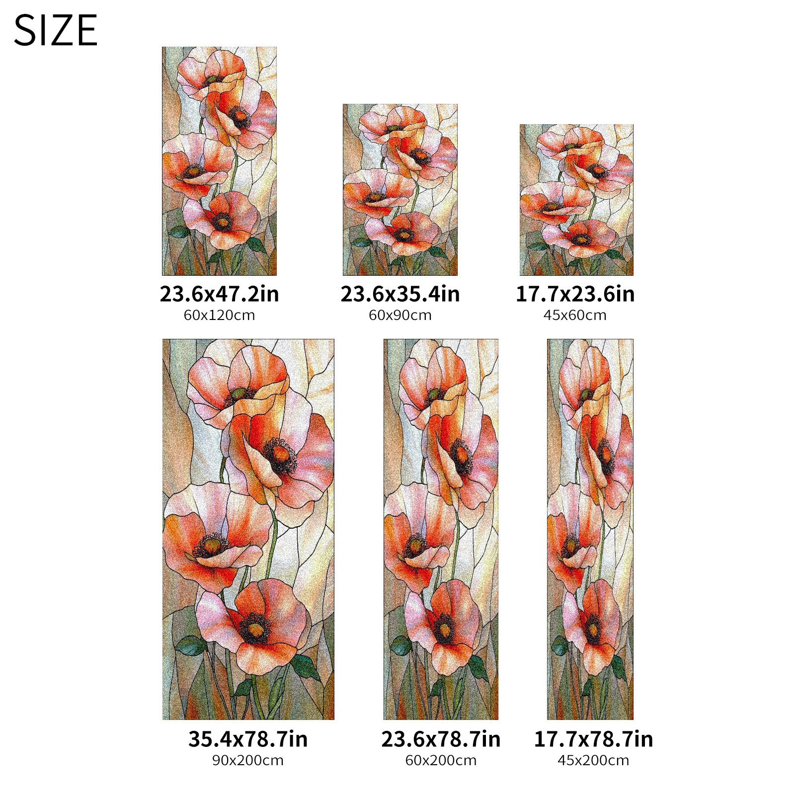 Stained Glass Window Film - Decorative Privacy Film for Windows, Peel and Stick Window Film for Bathroom/Office/Shower, Reusable and Easy to Cut 17.7"x23.6" (Orange And Pink Floral)