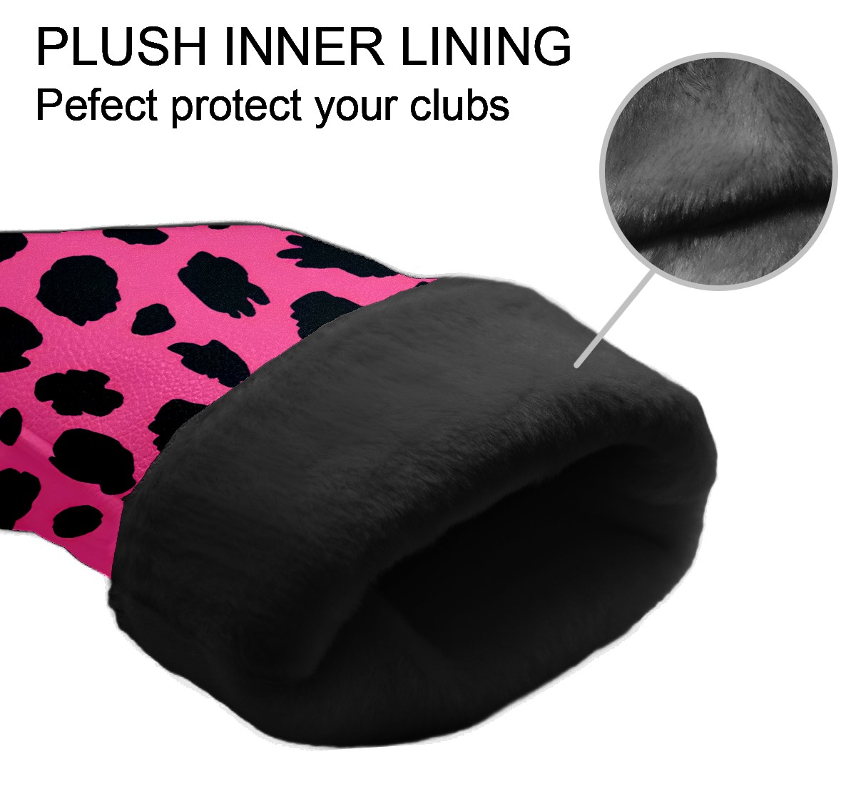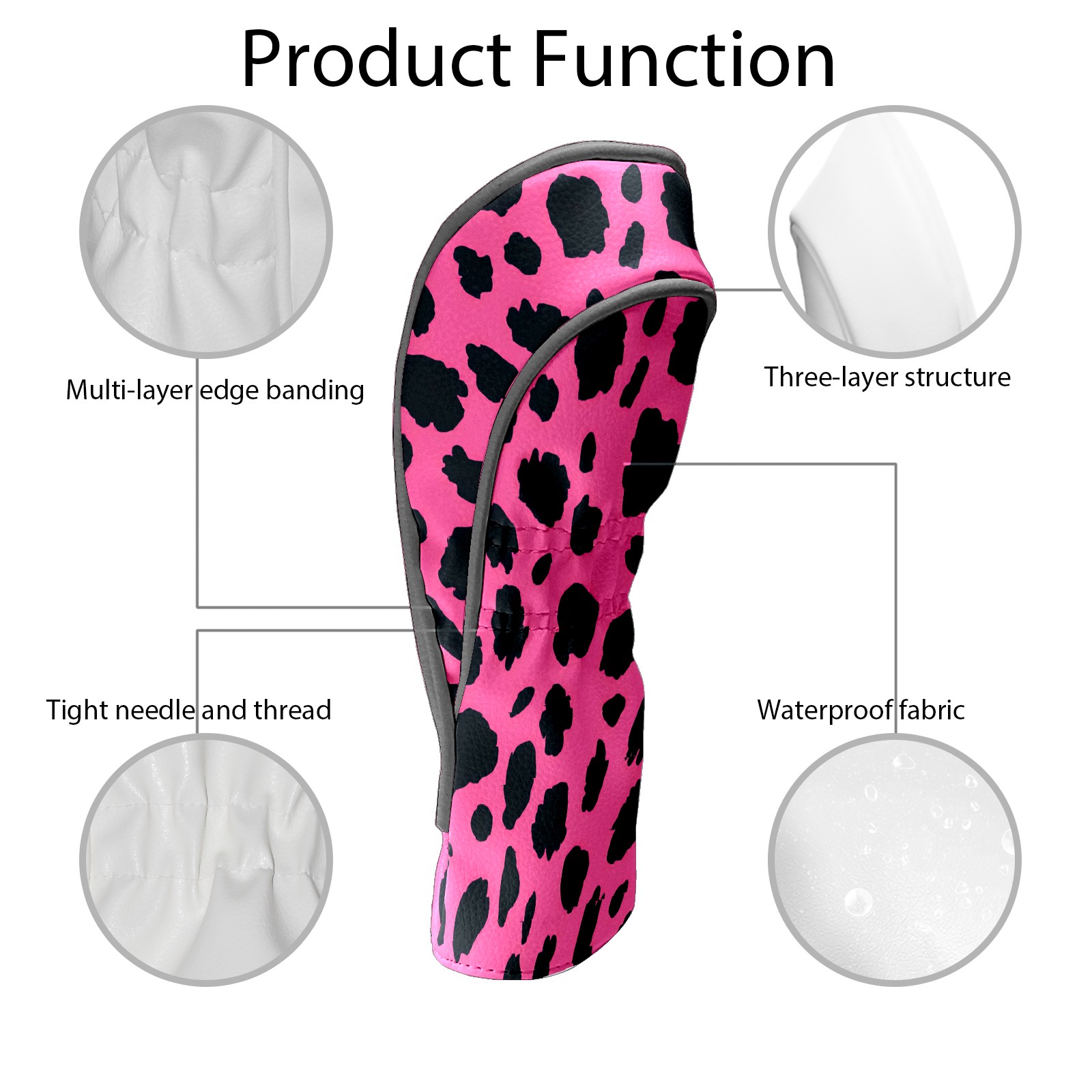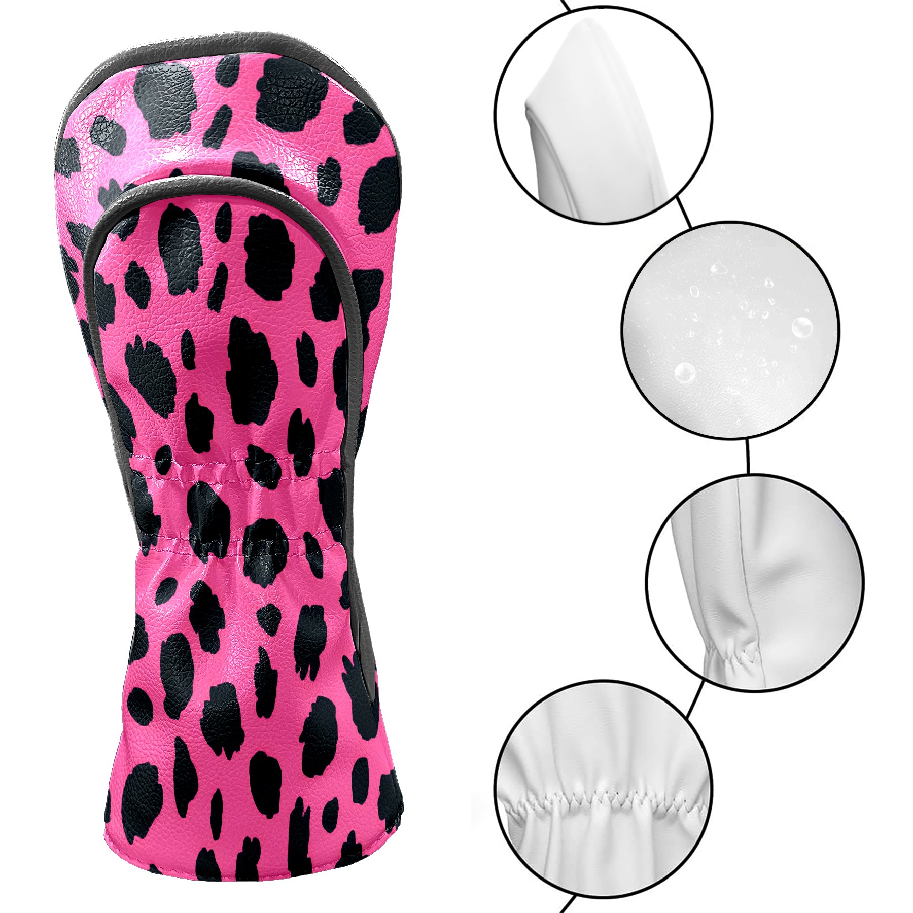 Golf Club Head Cover Waterproof Leather for Driver & Fairway Wood, Driver Headcovers, Golf Accessories for Men Women, Anti-Scratch, Golf Gift for Golfers, 1/3/5 Wood Cover Pink Leopard Print