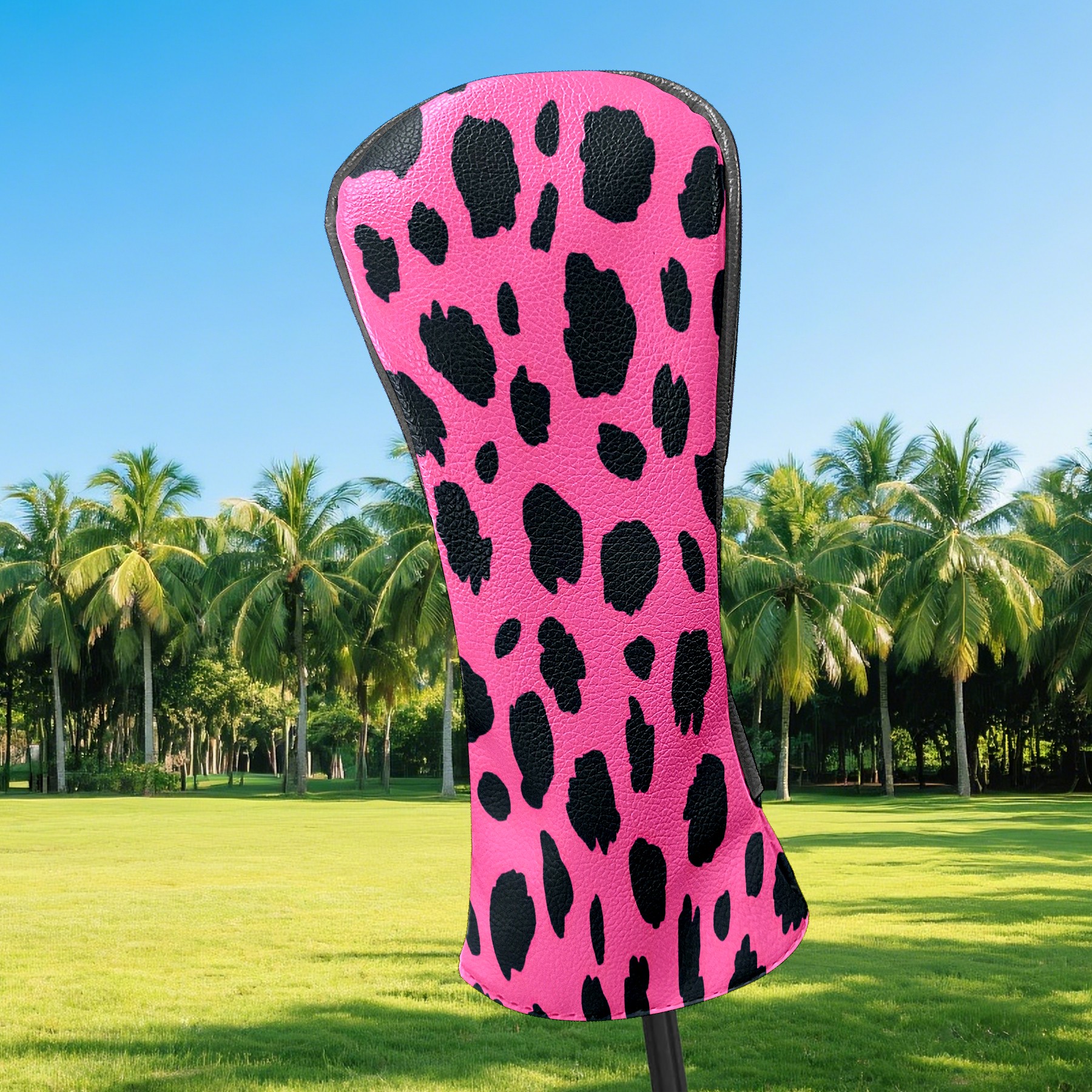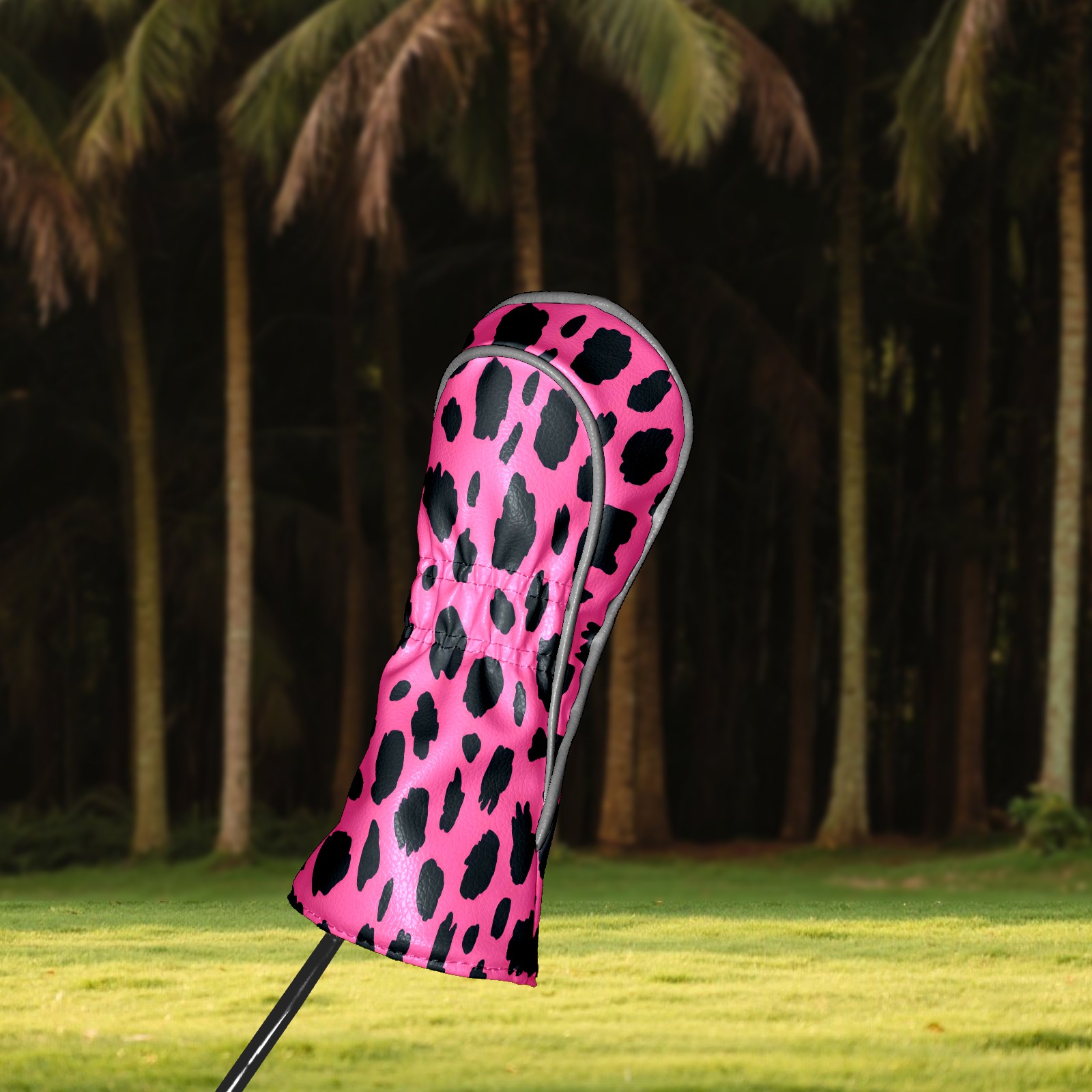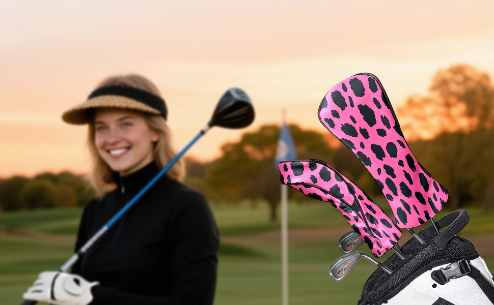 Golf Club Head Cover Waterproof Leather for Driver & Fairway Wood, Driver Headcovers, Golf Accessories for Men Women, Anti-Scratch, Golf Gift for Golfers, 1/3/5 Wood Cover Pink Leopard Print