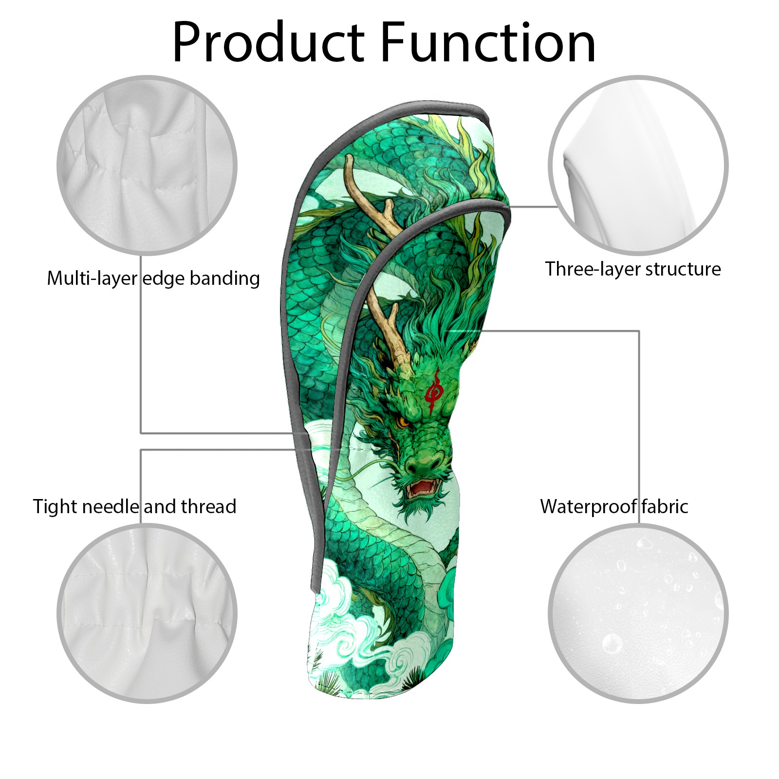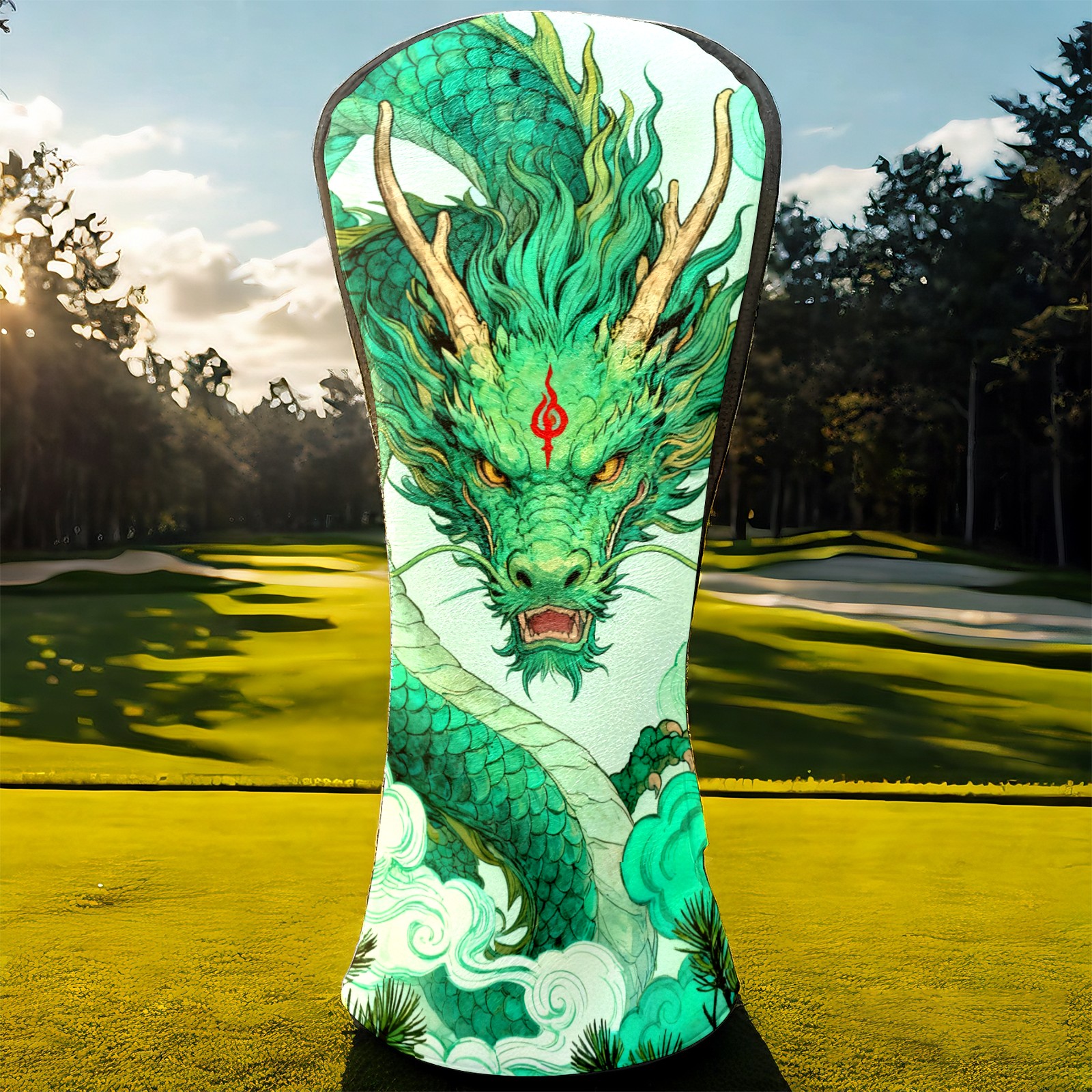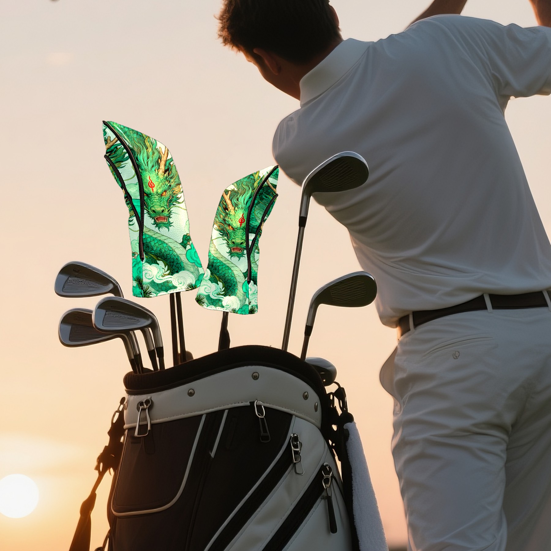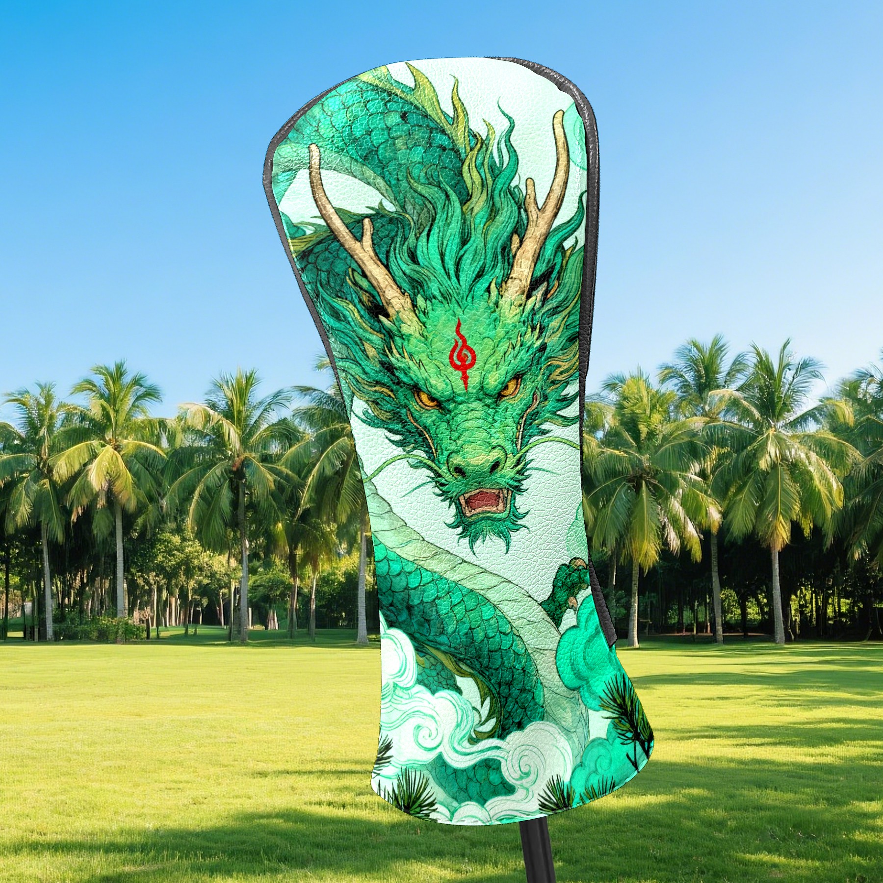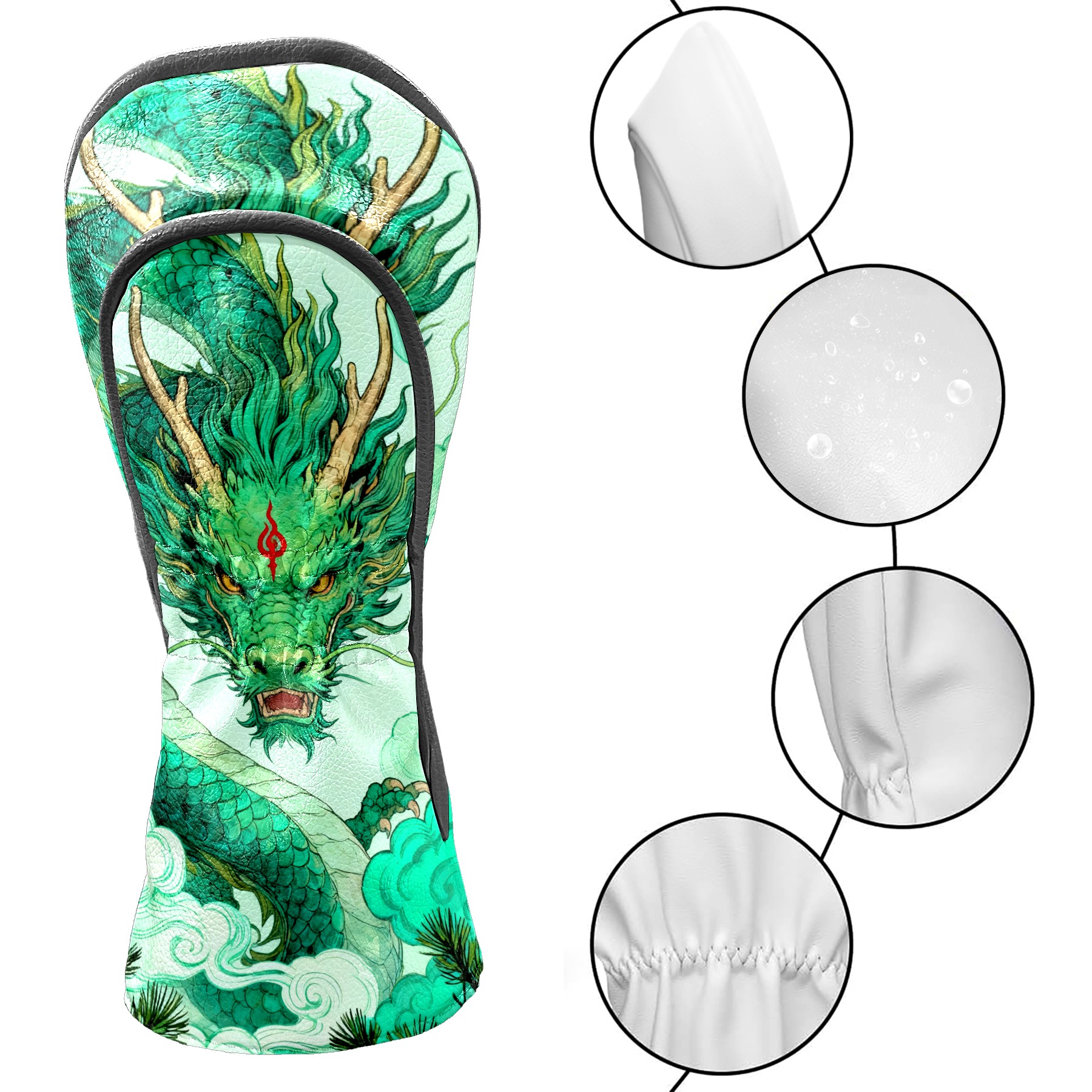 Golf Club Head Cover Waterproof Leather for Driver & Fairway Wood, Driver Headcovers, Golf Accessories for Men Women, Anti-Scratch, Golf Gift for Golfers, 1/3/5 Wood Cover Green Auspicious Dragon