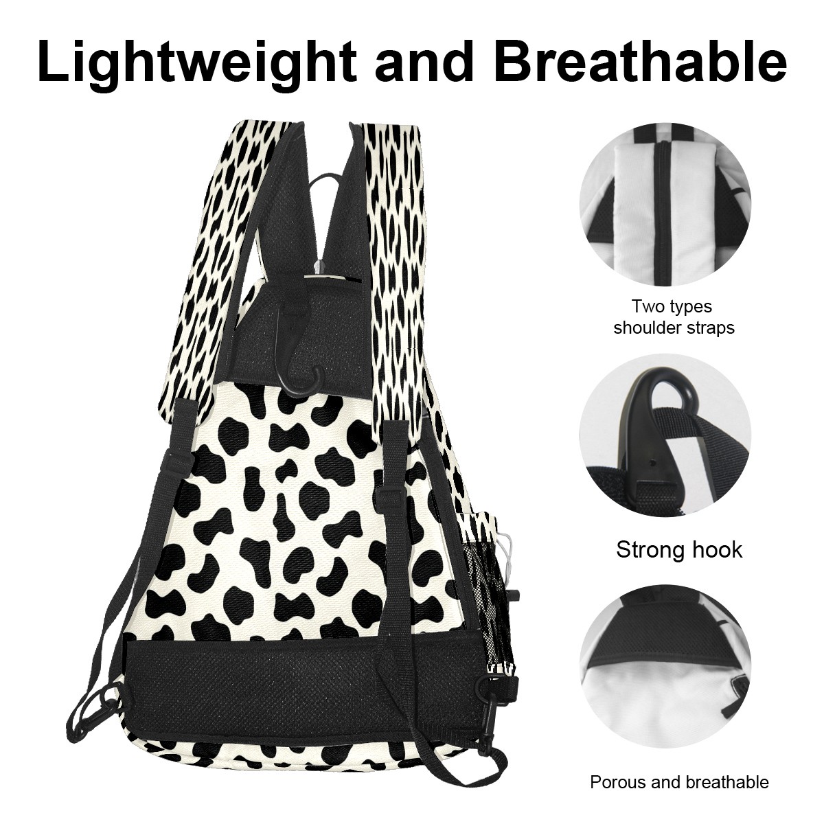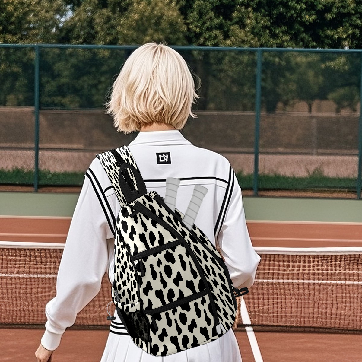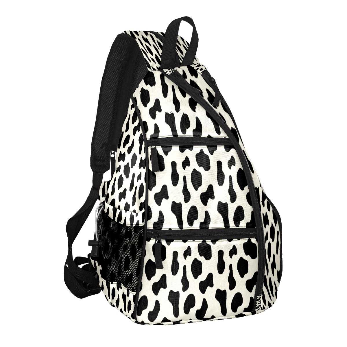 Pickleball Bags for Men Women Backpack with Large Capacity Lightweight Adjustable Pickle ball Sling Bag Hold Paddles, Balls, Accessories Black Cow Animal Print