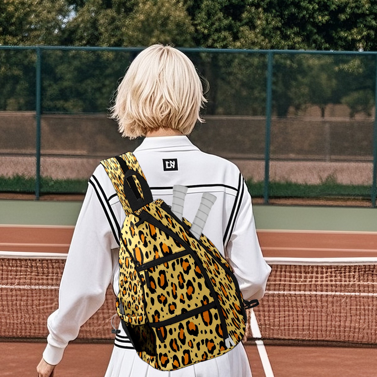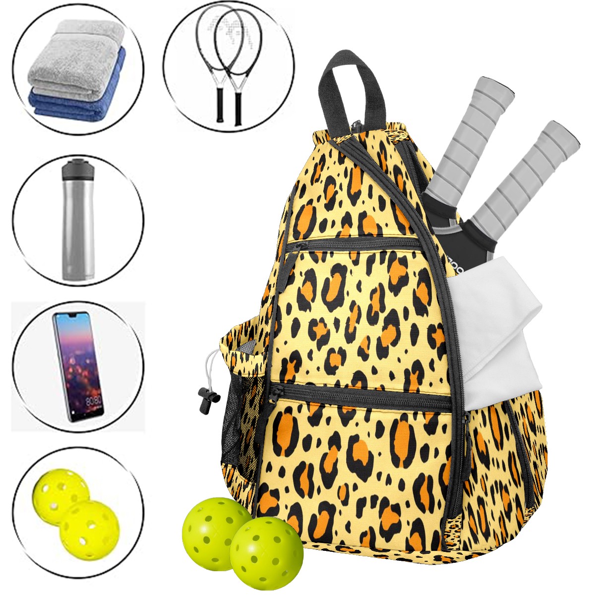 Pickleball Bags for Men Women Backpack with Large Capacity Lightweight Adjustable Pickle ball Sling Bag Hold Paddles, Balls, Accessories Yellow Leopard