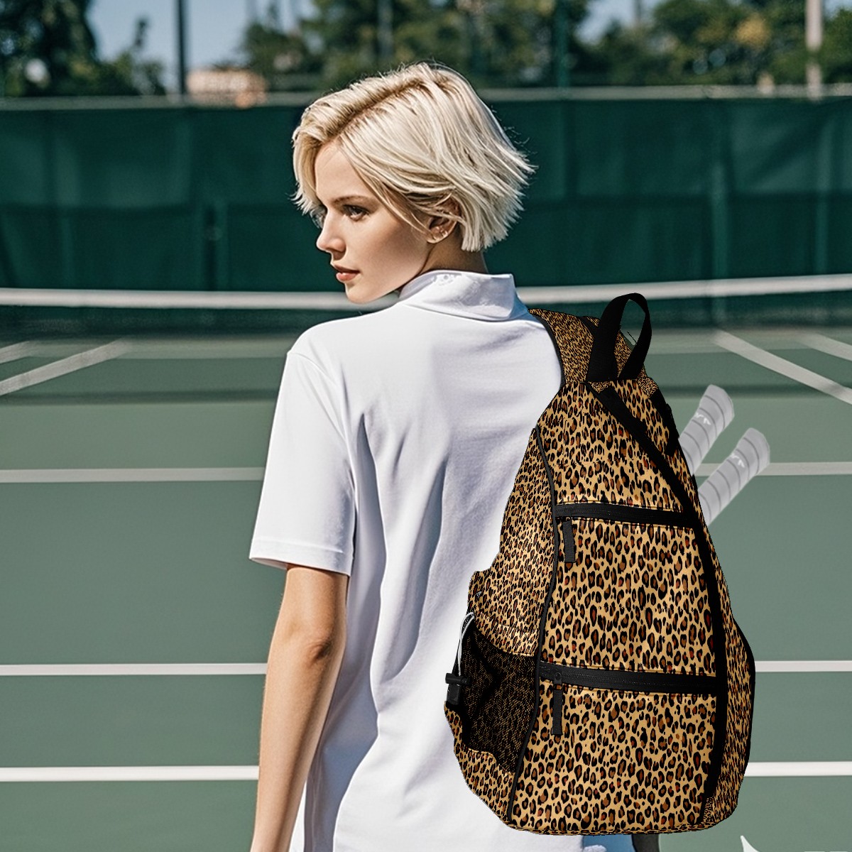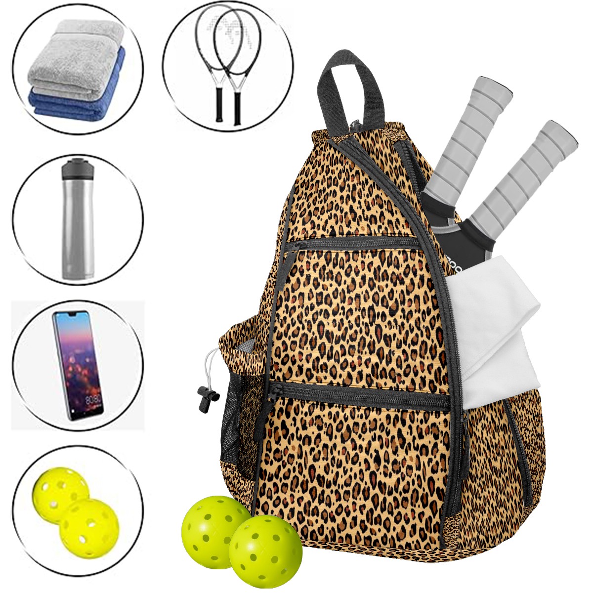 Pickleball Bags for Men Women Backpack with Large Capacity Lightweight Adjustable Pickle ball Sling Bag Hold Paddles, Balls, Accessories Khaki Leopard Animal