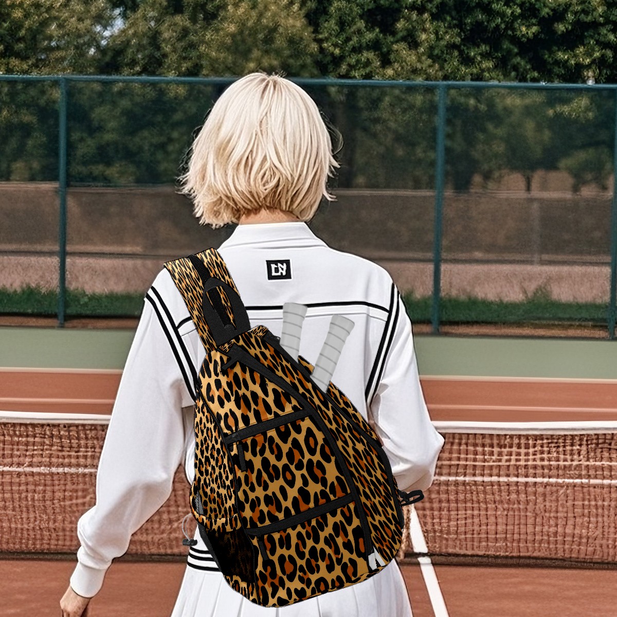 Pickleball Bags for Men Women Backpack with Large Capacity Lightweight Adjustable Pickle ball Sling Bag Hold Paddles, Balls, Accessories Black Orange Leopard Print
