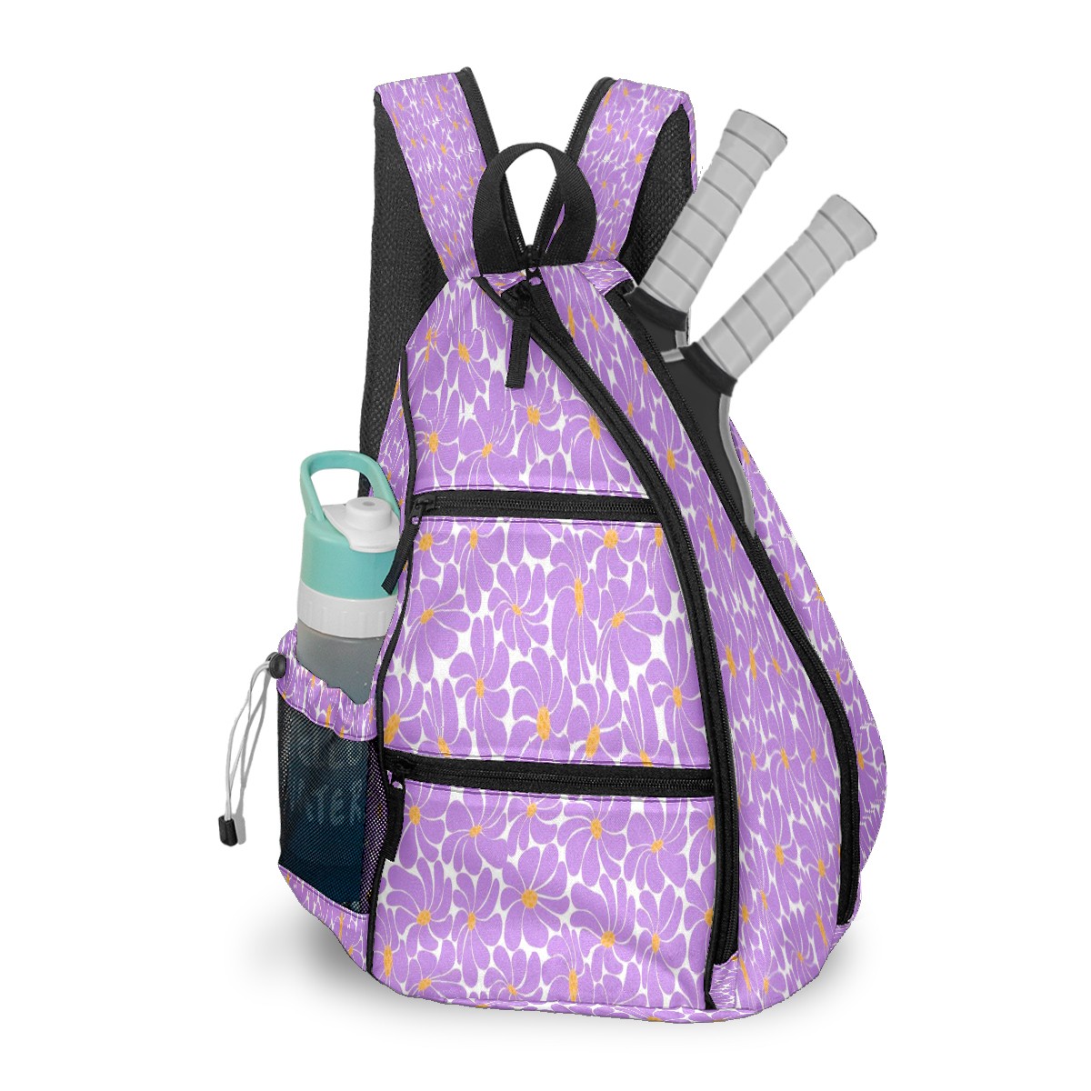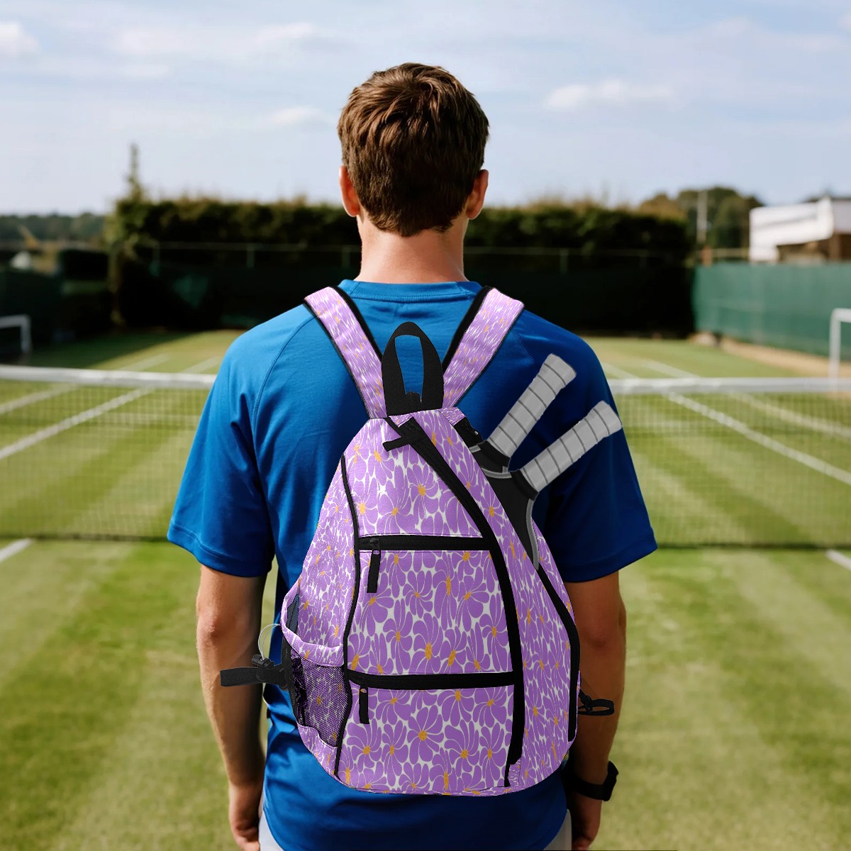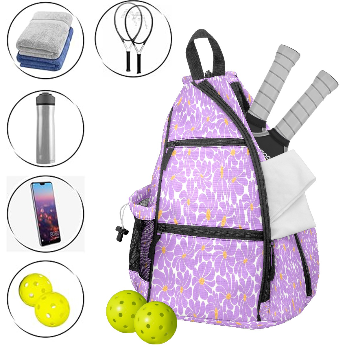 Pickleball Bags for Men Women Backpack with Large Capacity Lightweight Adjustable Pickle ball Sling Bag Hold Paddles, Balls, Accessories Retro Purple Floral