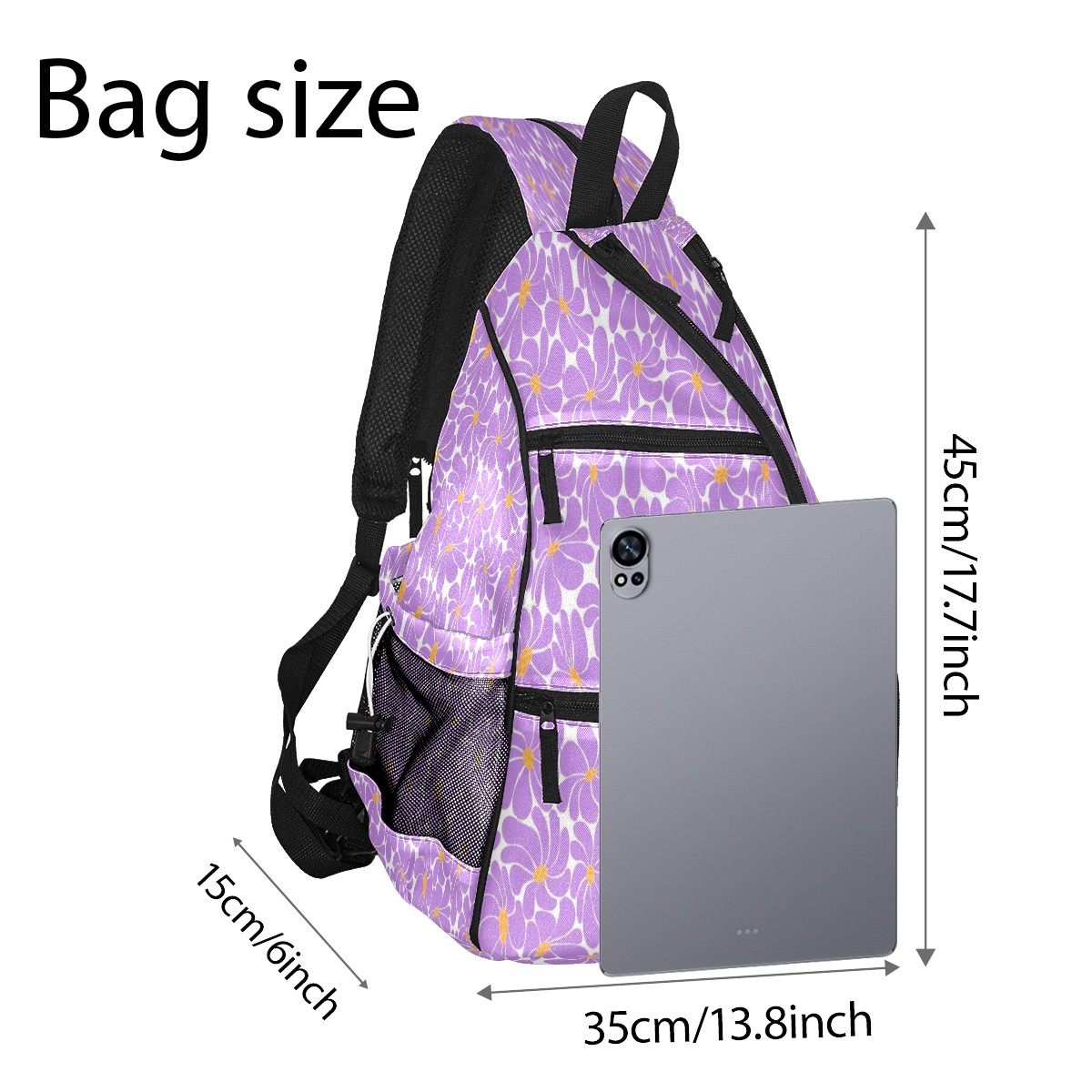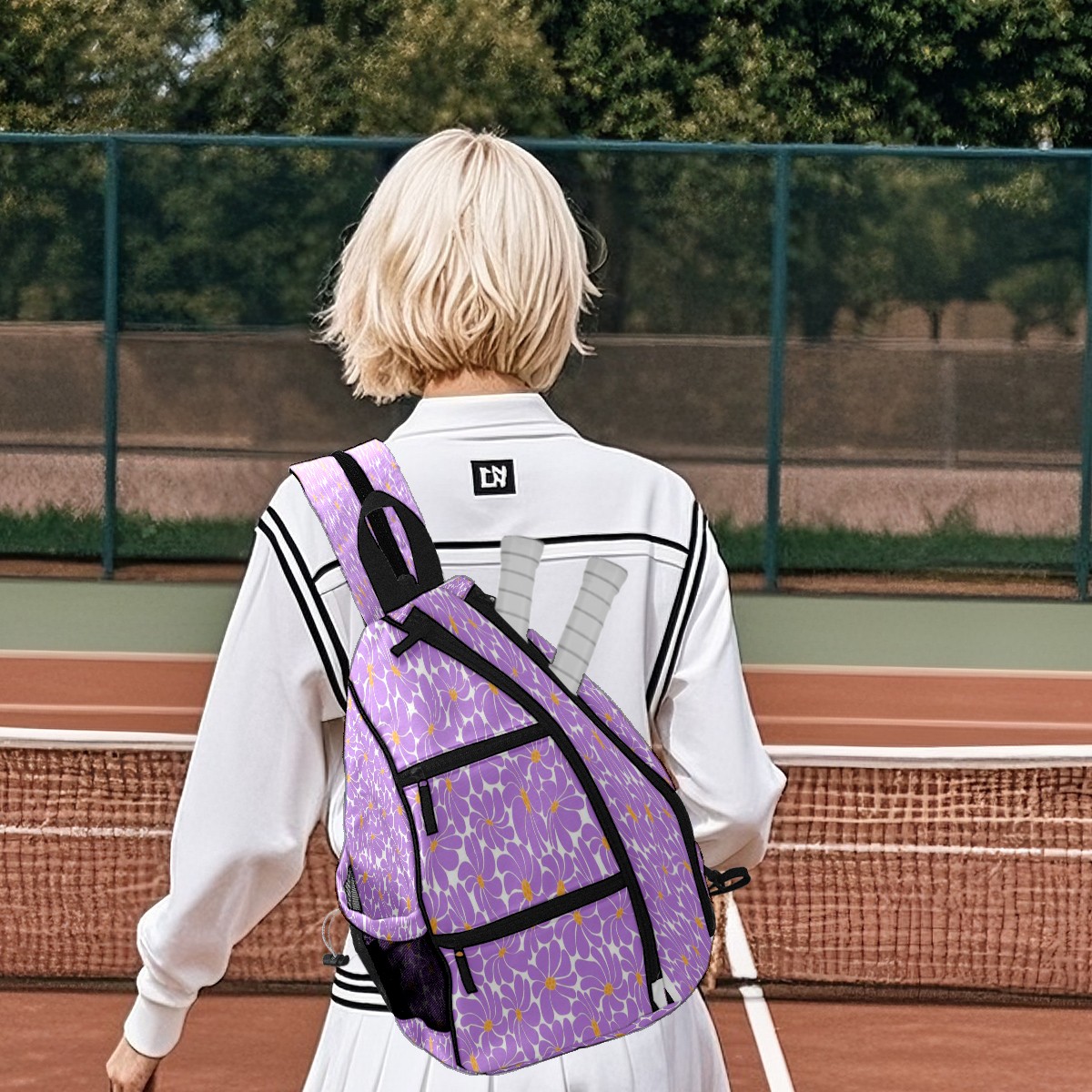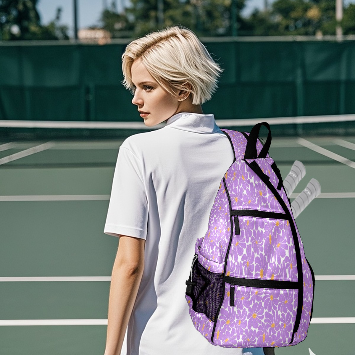 Pickleball Bags for Men Women Backpack with Large Capacity Lightweight Adjustable Pickle ball Sling Bag Hold Paddles, Balls, Accessories Retro Purple Floral