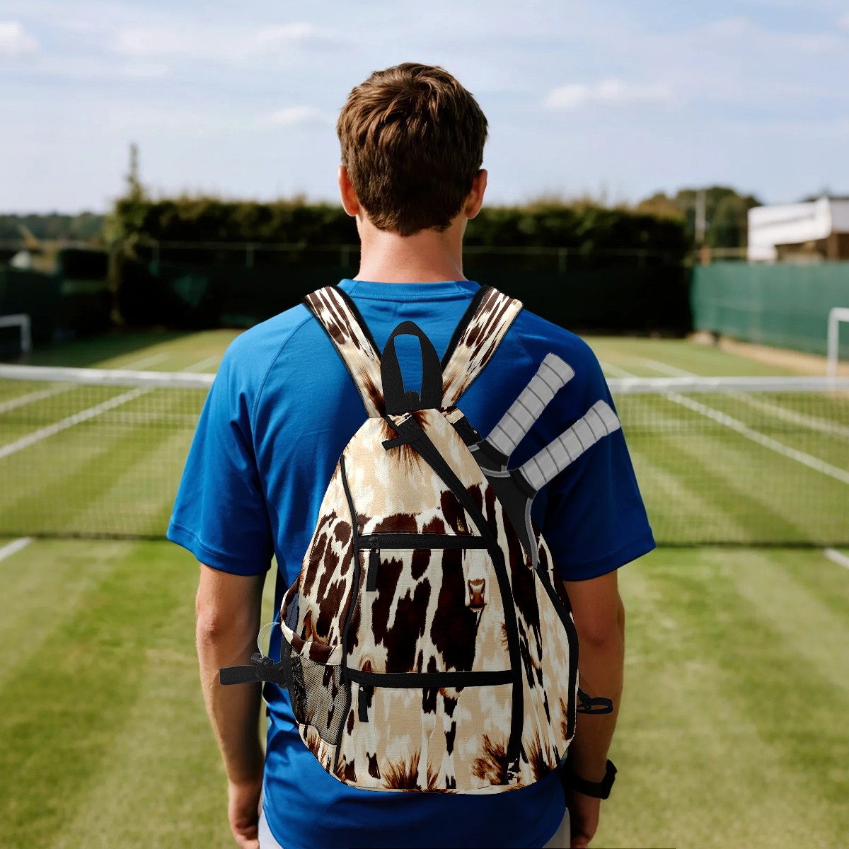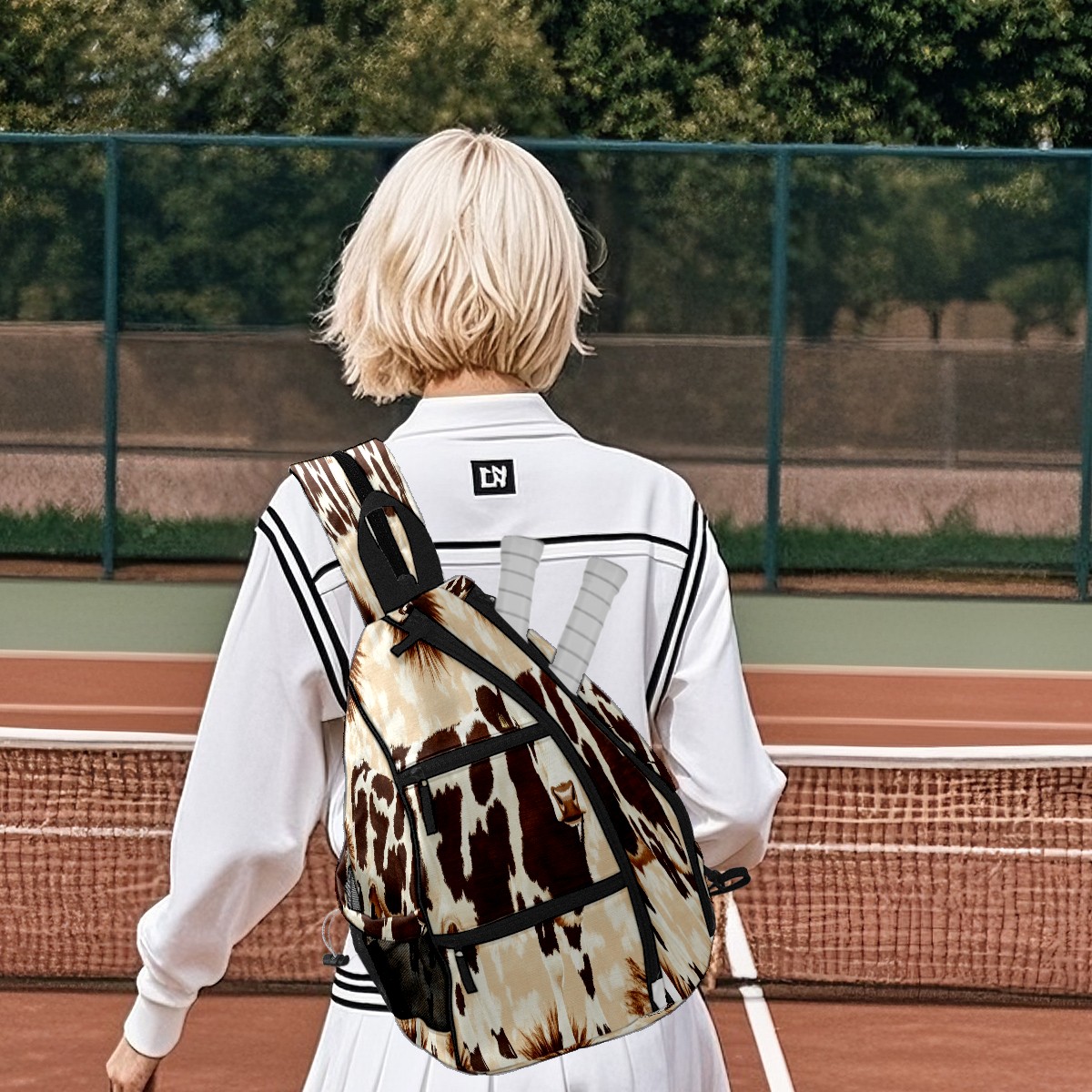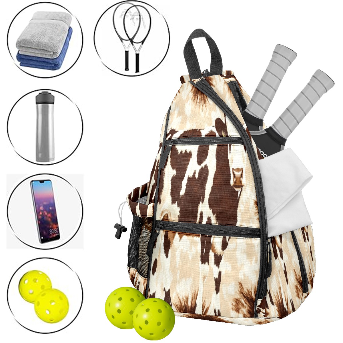 Pickleball Bags for Men Women Backpack with Large Capacity Lightweight Adjustable Pickle ball Sling Bag Hold Paddles, Balls, Accessories Cow Pattern