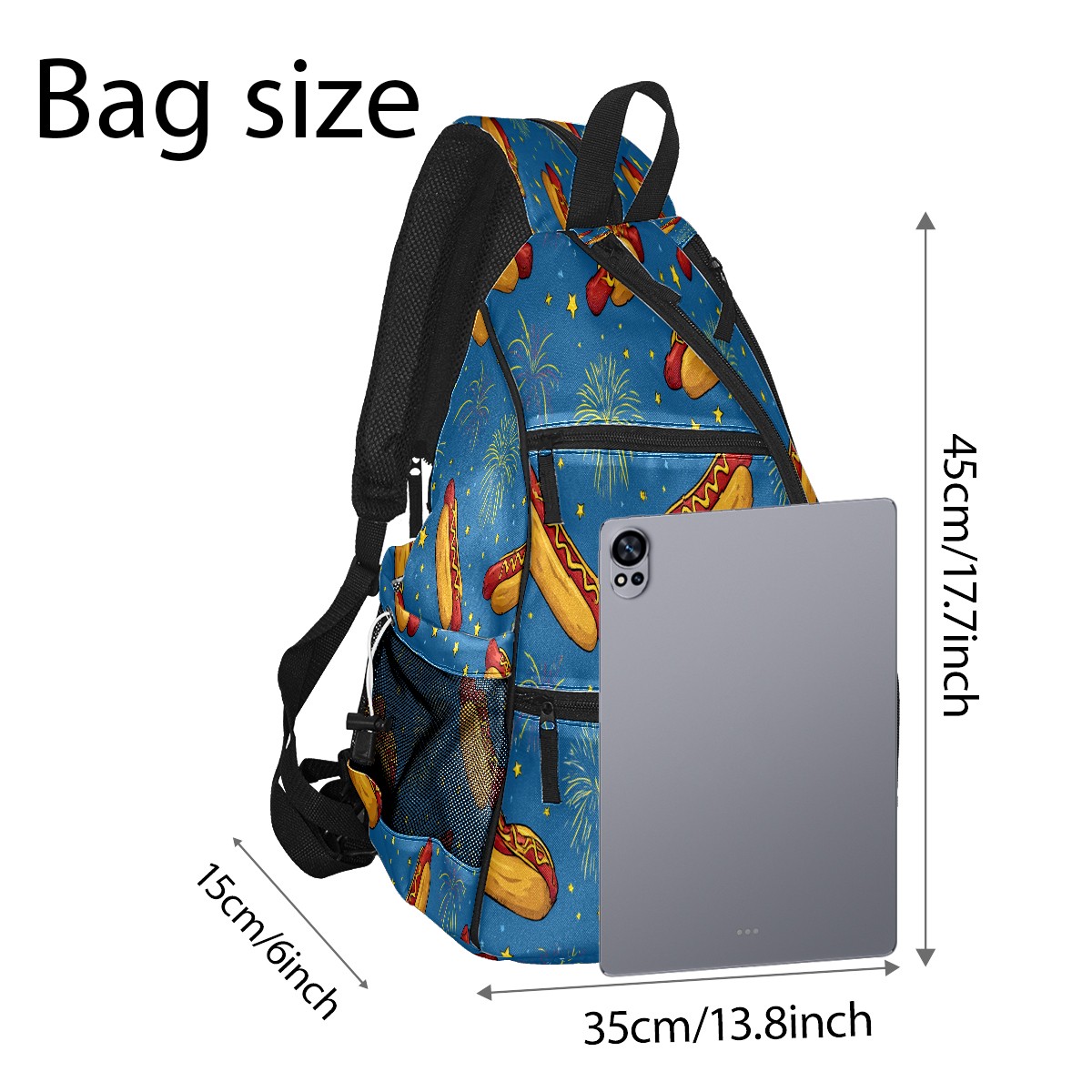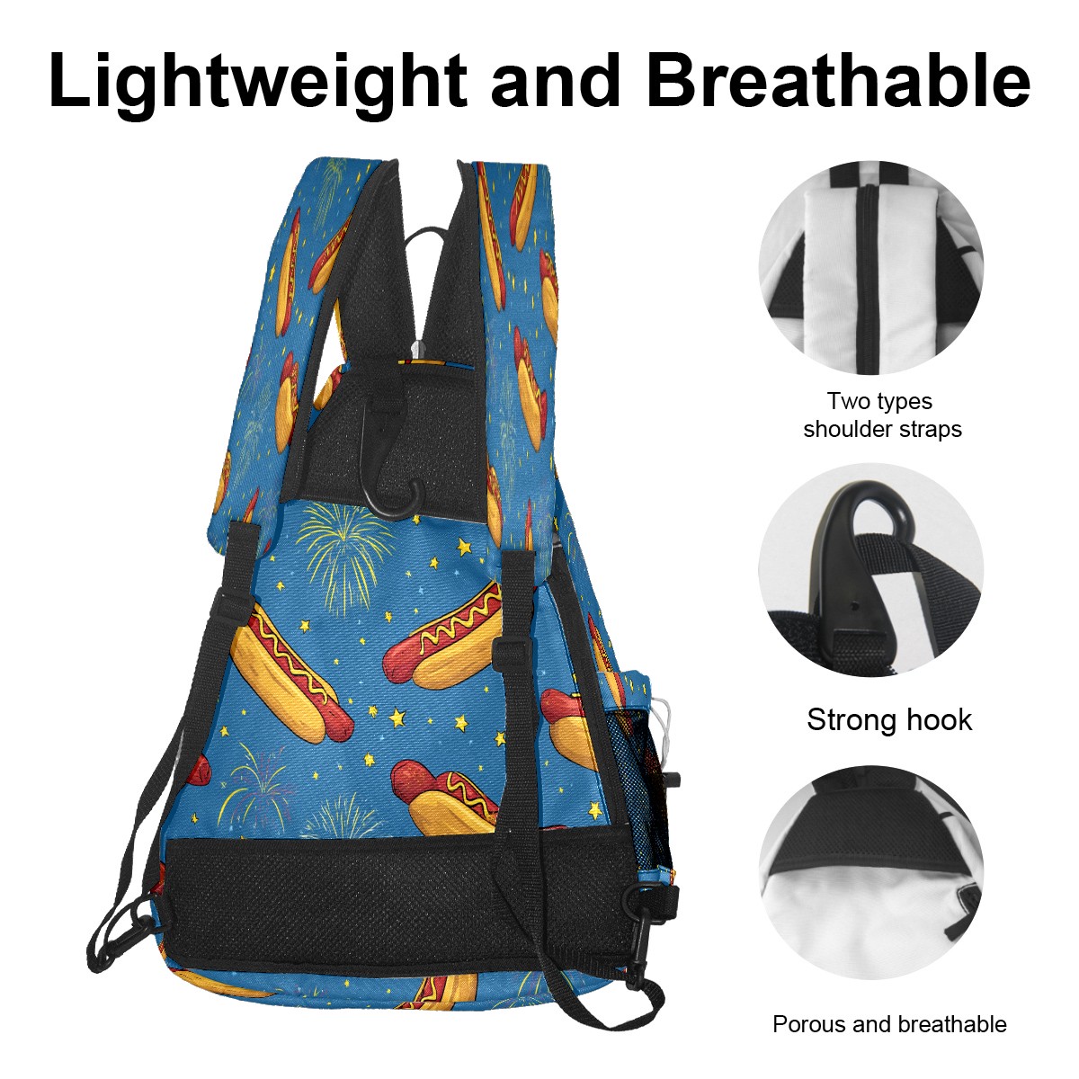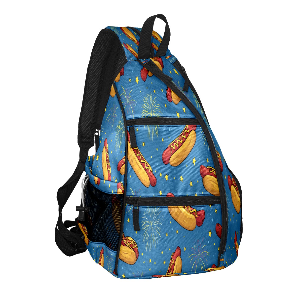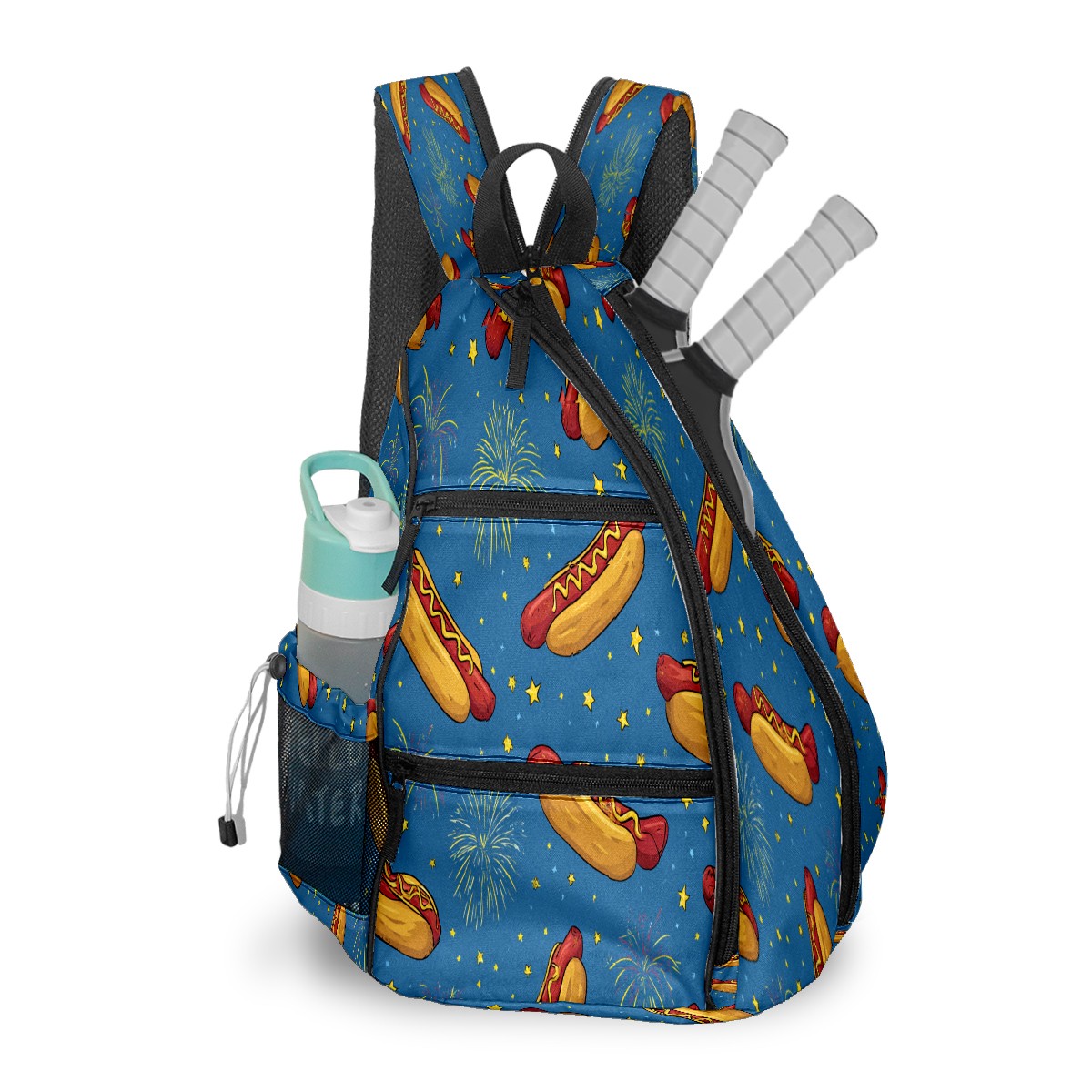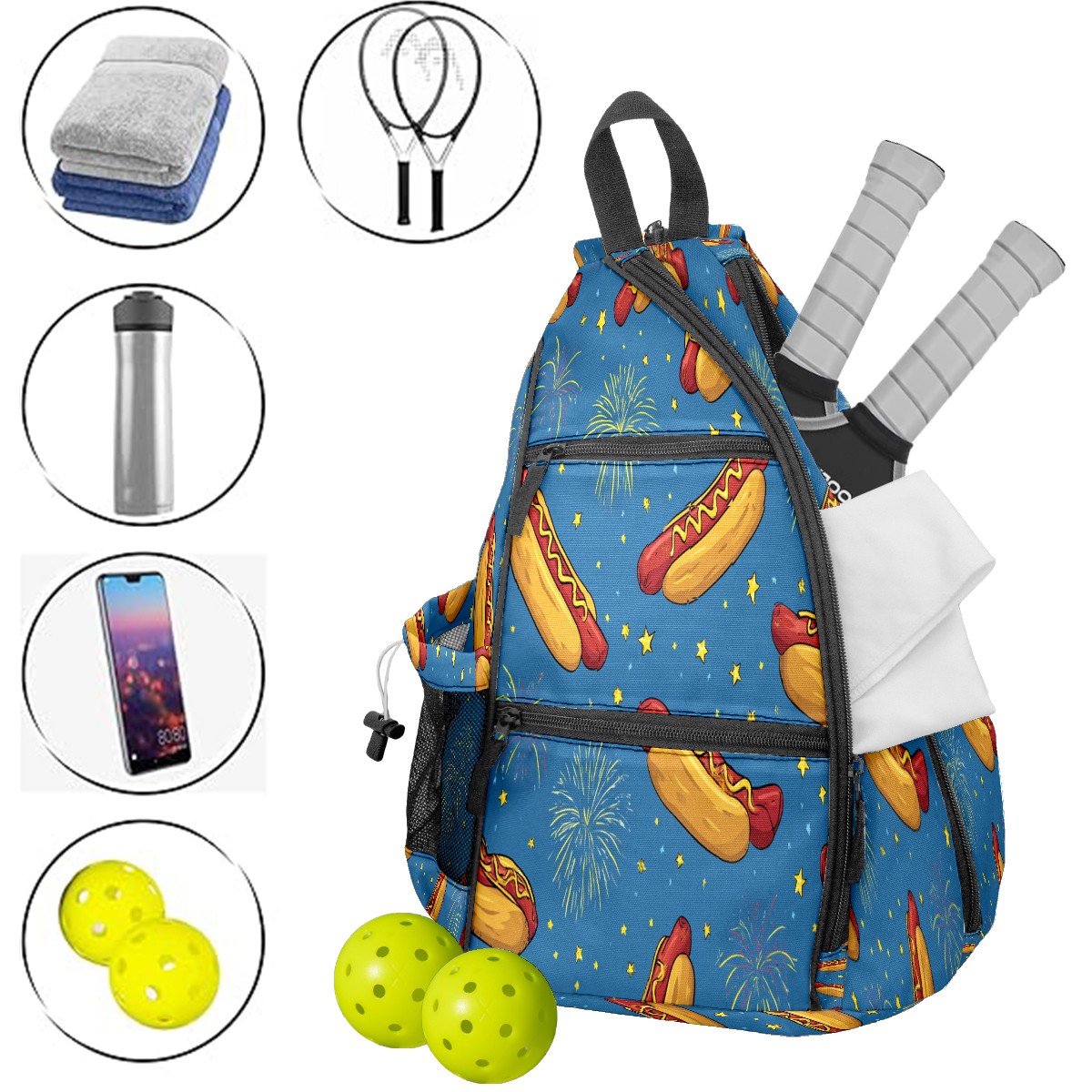 Pickleball Bags for Men Women Backpack with Large Capacity Lightweight Adjustable Pickle ball Sling Bag Hold Paddles, Balls, Accessories Blue Hotdogs Fireworks