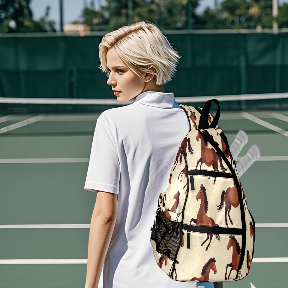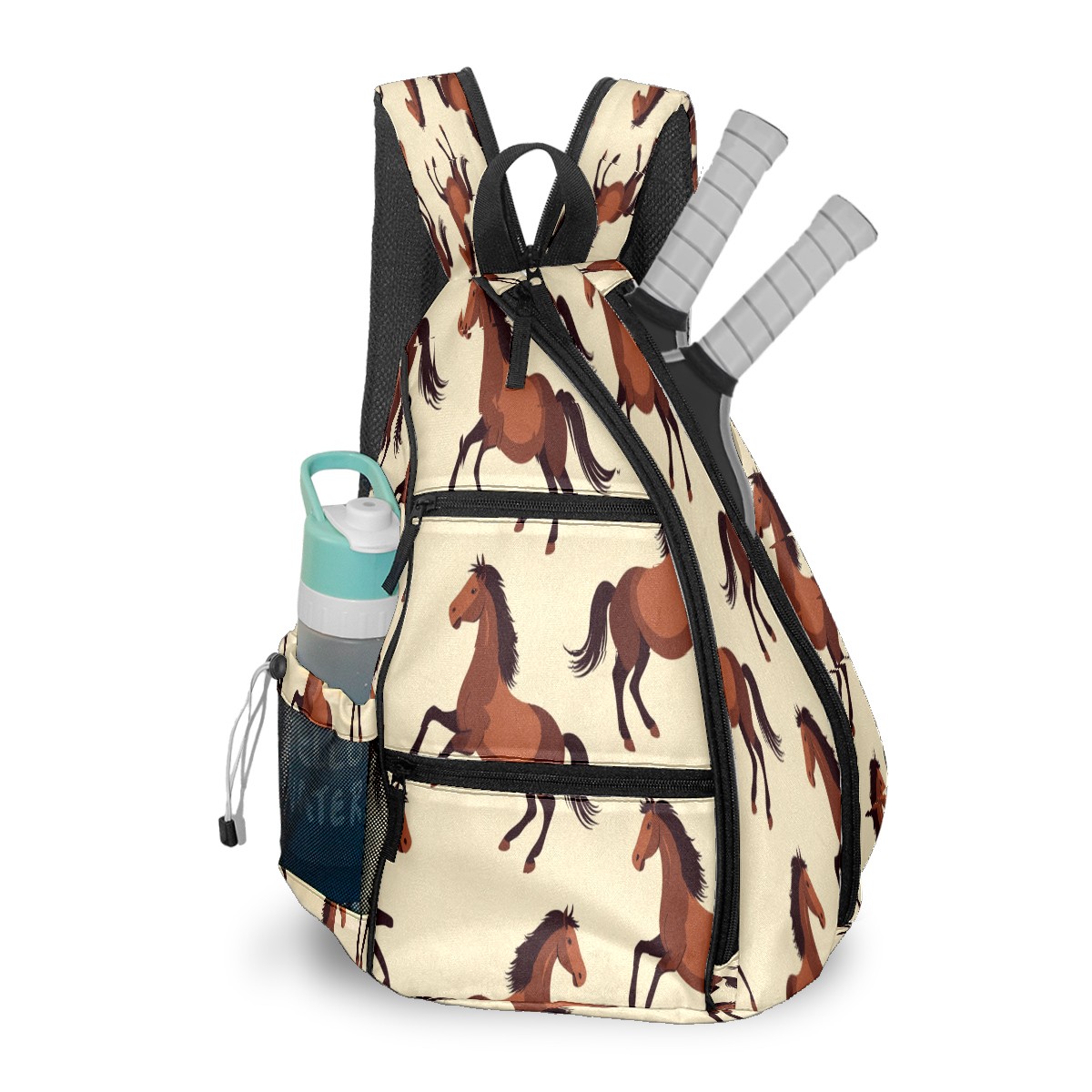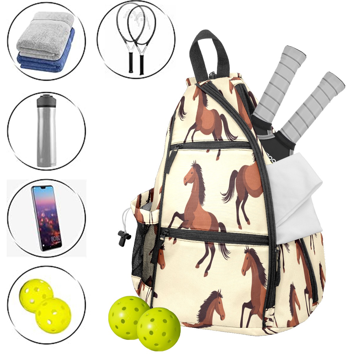 Pickleball Bags for Men Women Backpack with Large Capacity Lightweight Adjustable Pickle ball Sling Bag Hold Paddles, Balls, Accessories Brown Galloping Horse