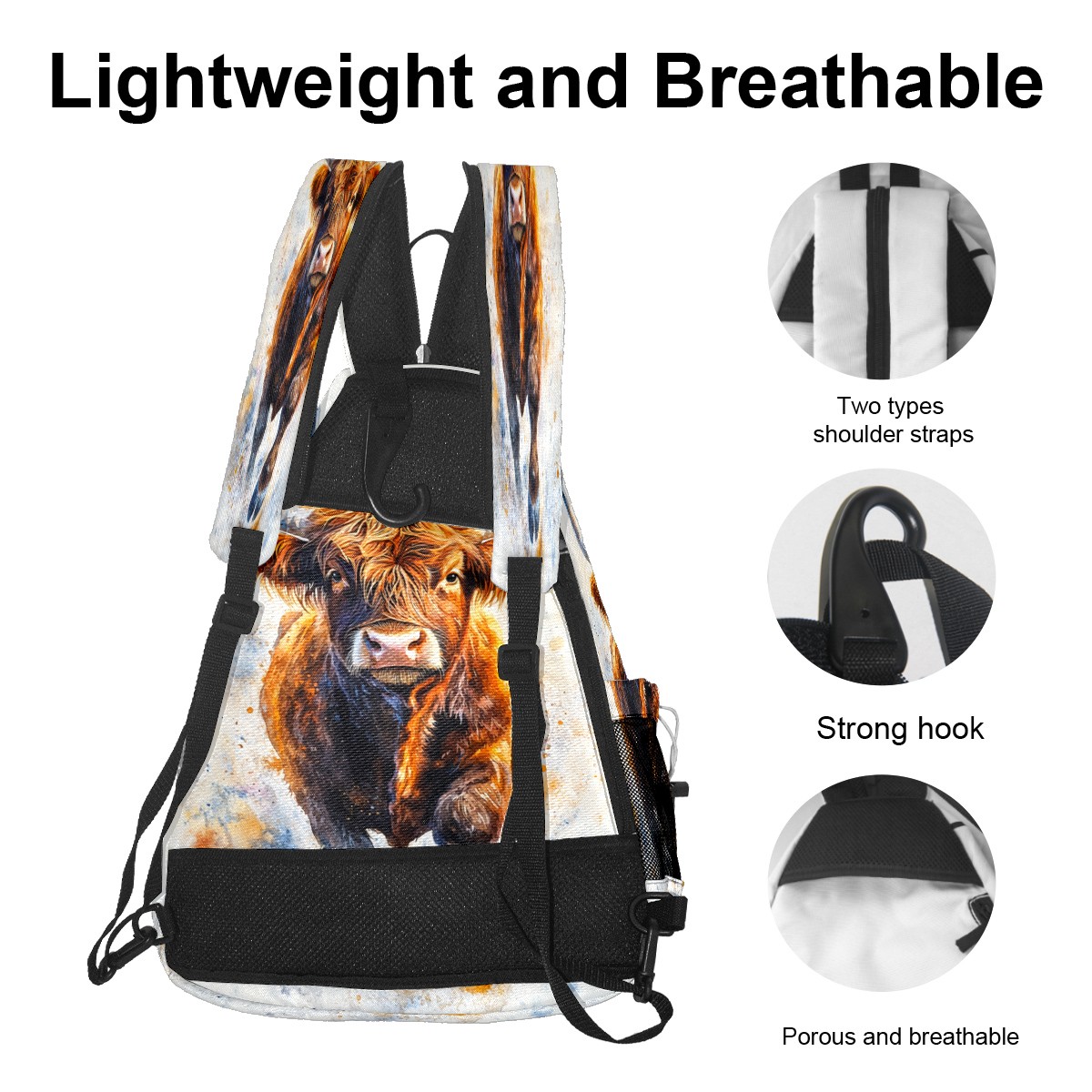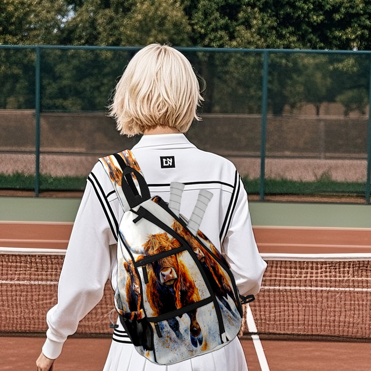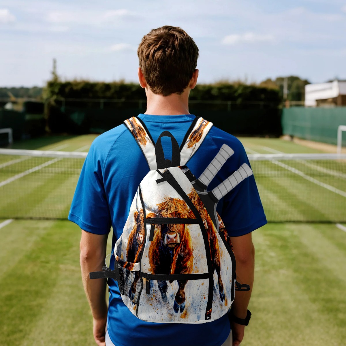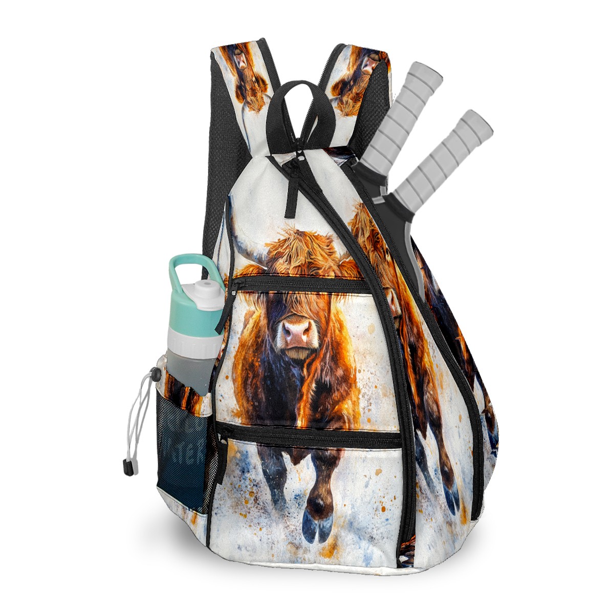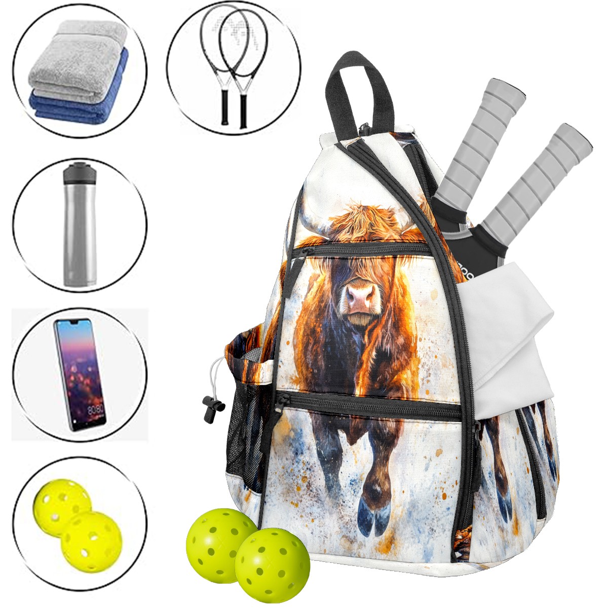 Pickleball Bags for Men Women Backpack with Large Capacity Lightweight Adjustable Pickle ball Sling Bag Hold Paddles, Balls, Accessories Highland Cattle