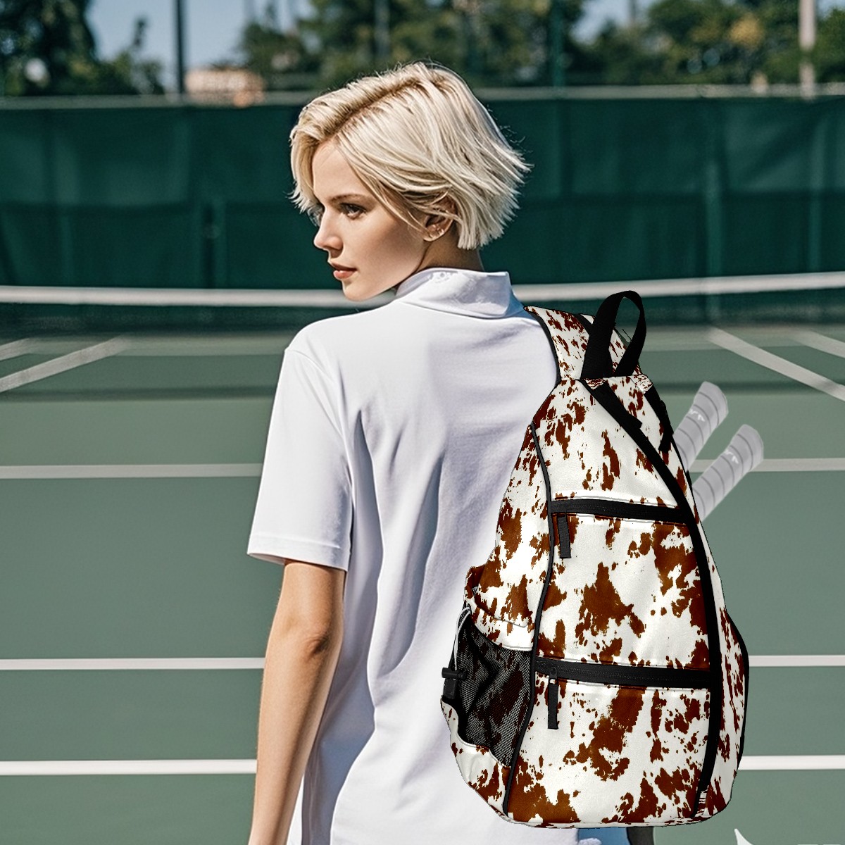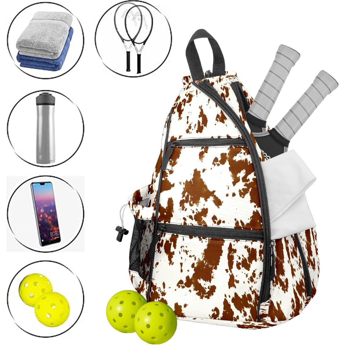 Pickleball Bags for Men Women Backpack with Large Capacity Lightweight Adjustable Pickle ball Sling Bag Hold Paddles, Balls, Accessories Cocoa Pattern