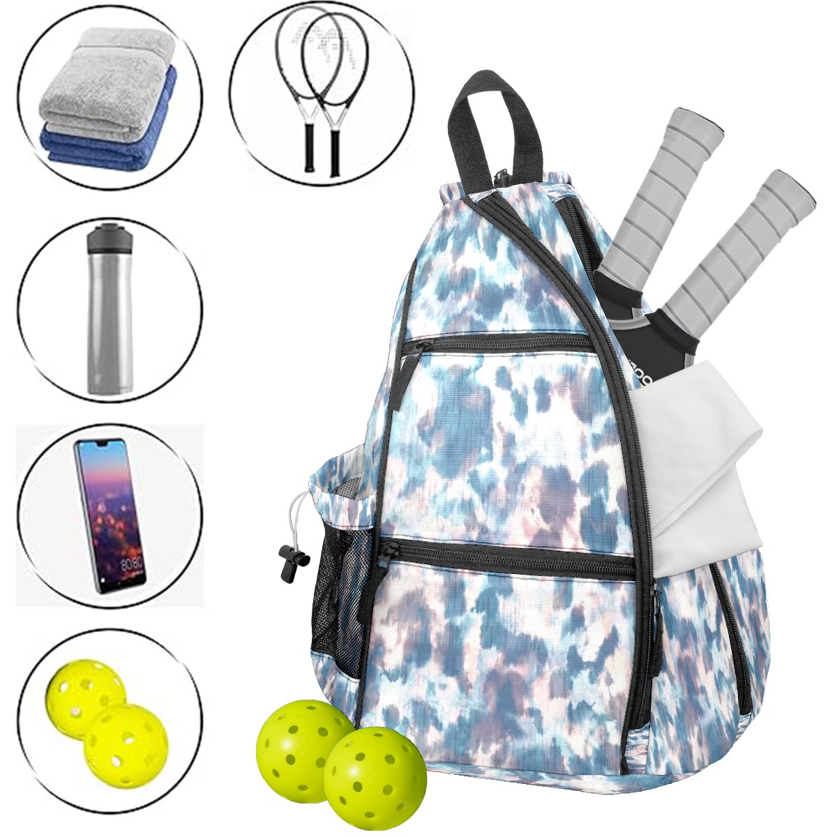 Pickleball Bags for Men Women Backpack with Large Capacity Lightweight Adjustable Pickle ball Sling Bag Hold Paddles, Balls, Accessories Indigo Leaf