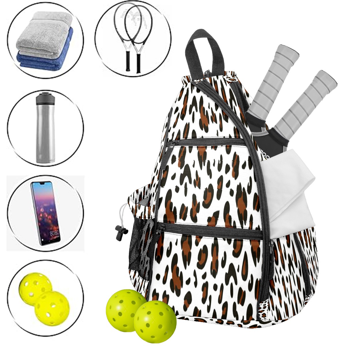 <p>This multifunctional pickleball Bag is made of lightweight and durable nylon fabric, which is lightweight yet has a large capacity, making it easy to store all equipment. Adjustable shoulder strap design supports multiple carrying modes on one shoulder and both shoulders, adapting to left and right hand habits; Breathable mesh back pad+waterproof fabric, balancing comfort and protection. The safety pocket and mesh hook design make access more convenient. Whether it's competition training, daily commuting, or as a gift, it's an ideal choice that combines practicality and aesthetics!</p>