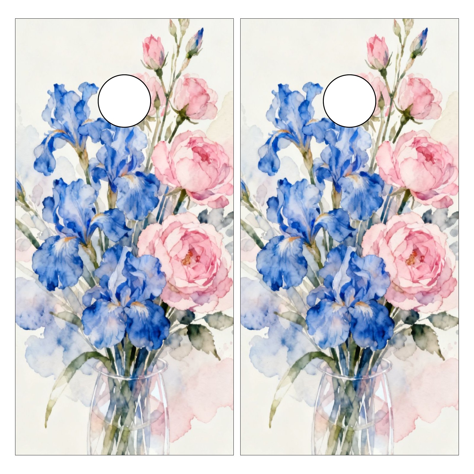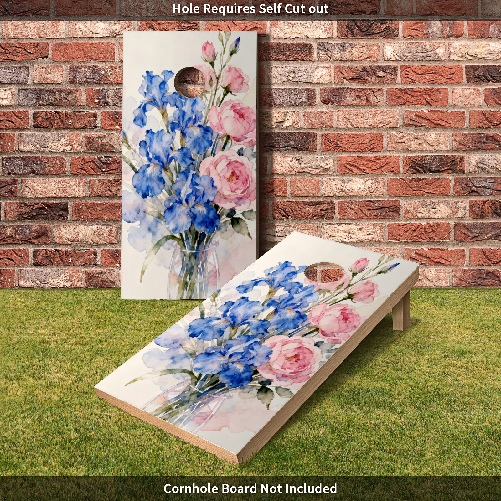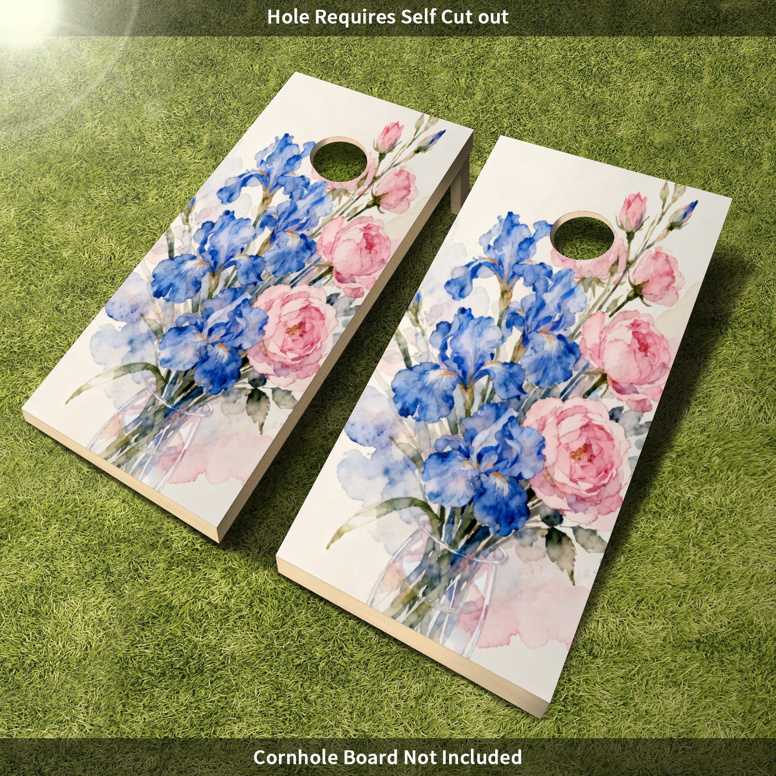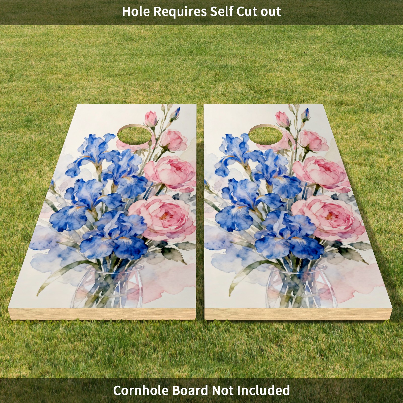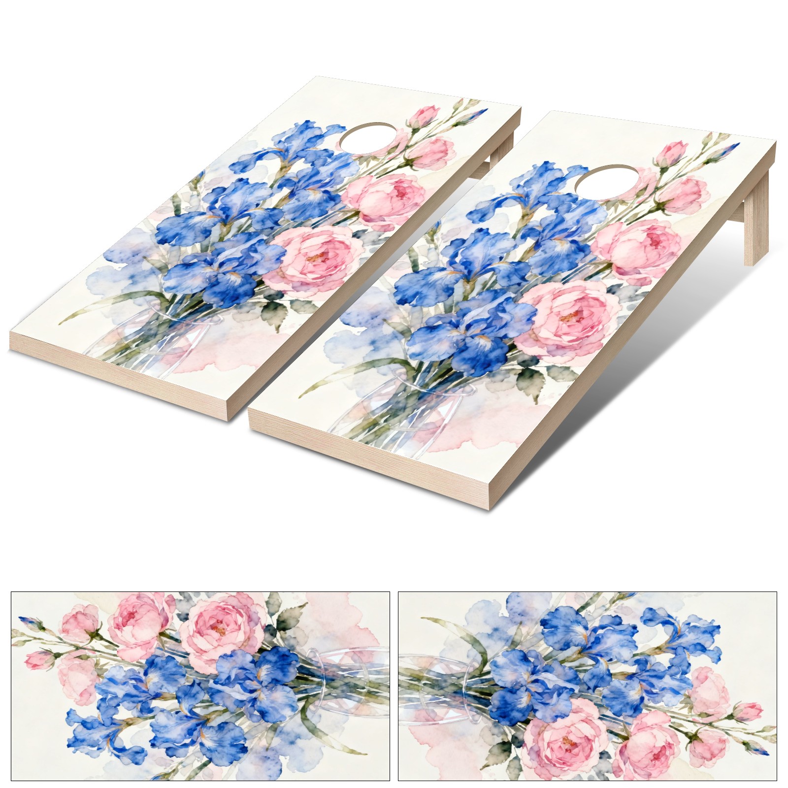 Portable 4x2 Cornhole Set with Two-piece Pack Boards - Cornhole Game Sticker Included - Yard Travel Outdoor Toss Board for Adults Outside Activities Watercolor Floral Pattern