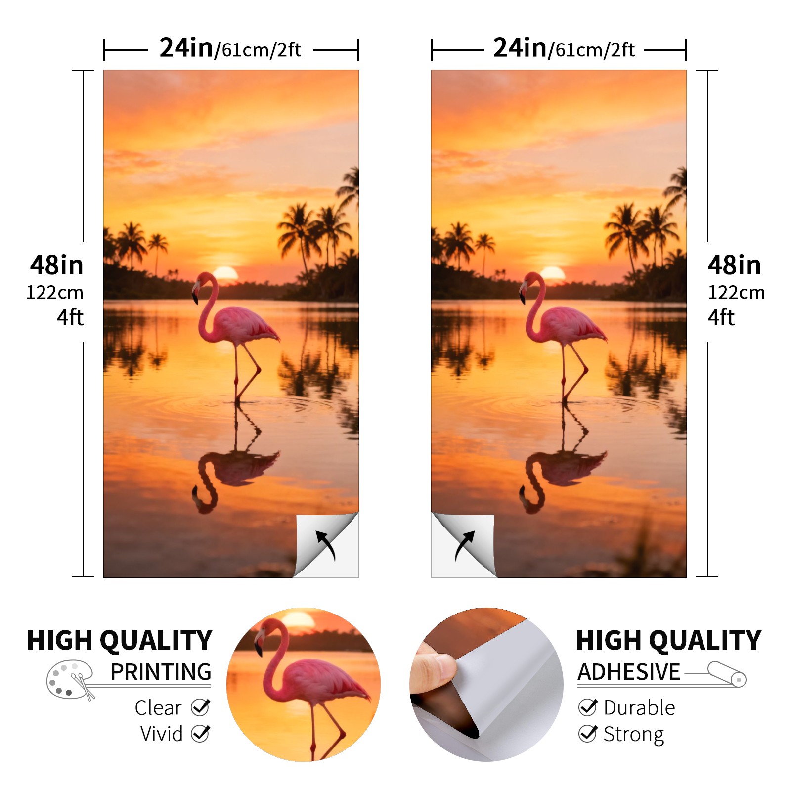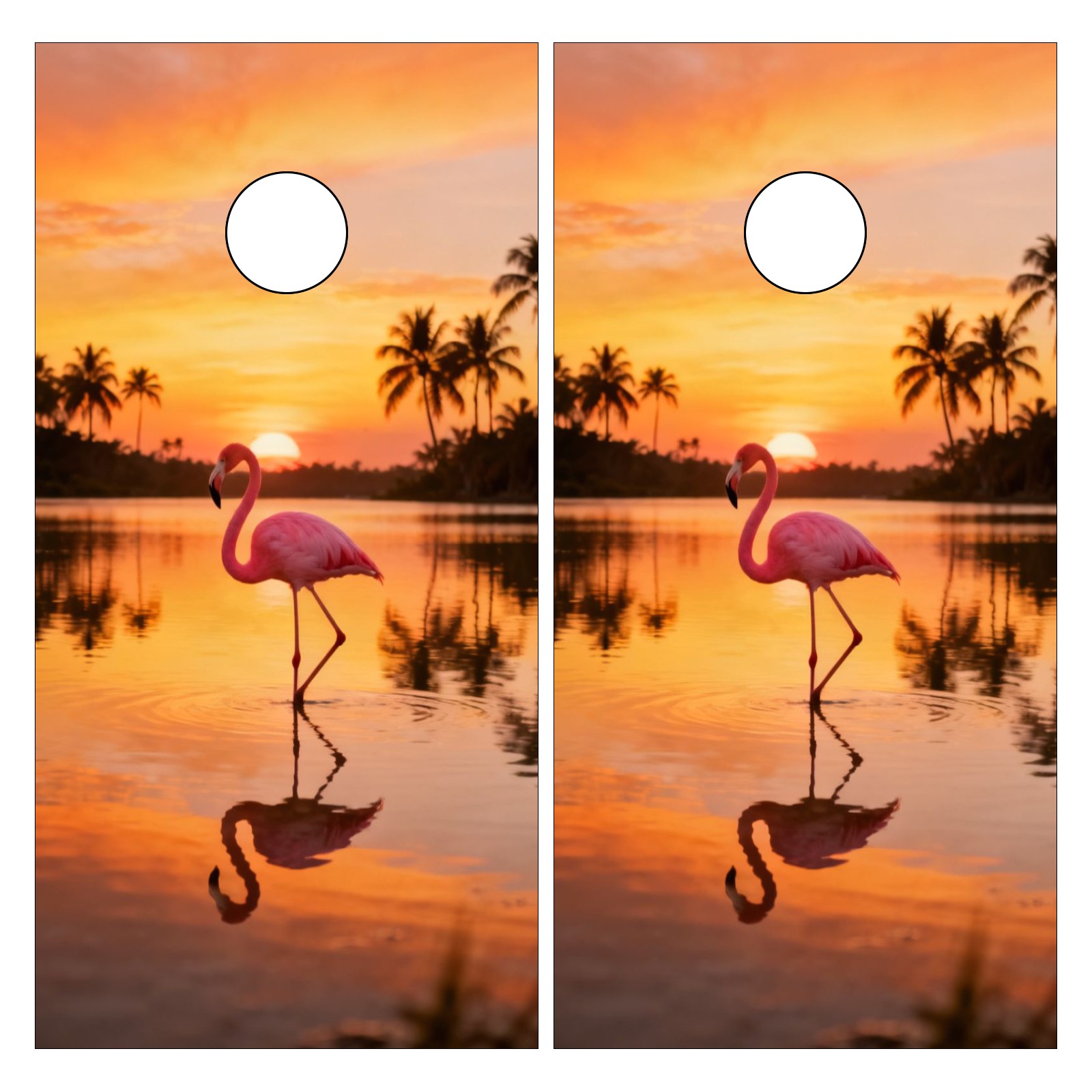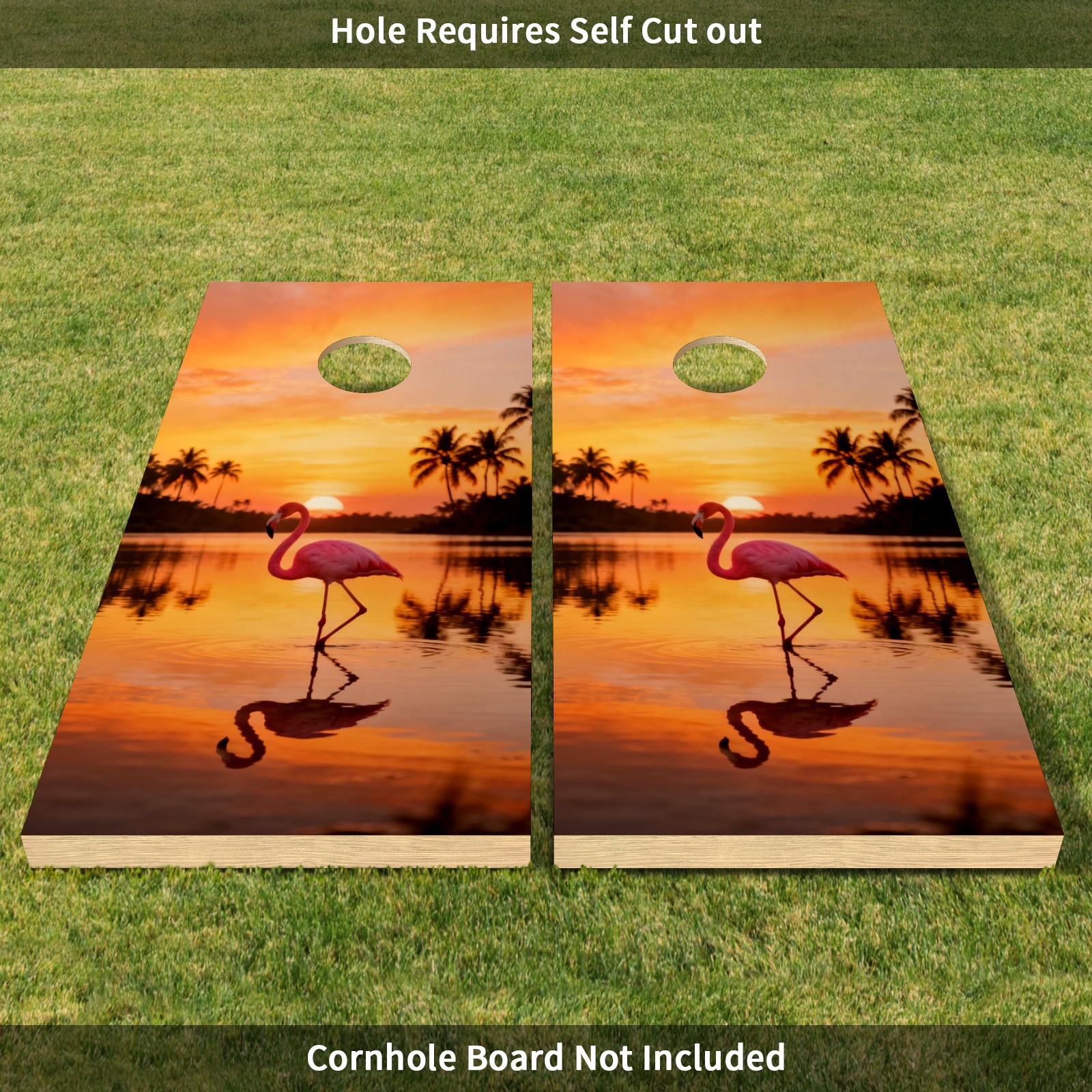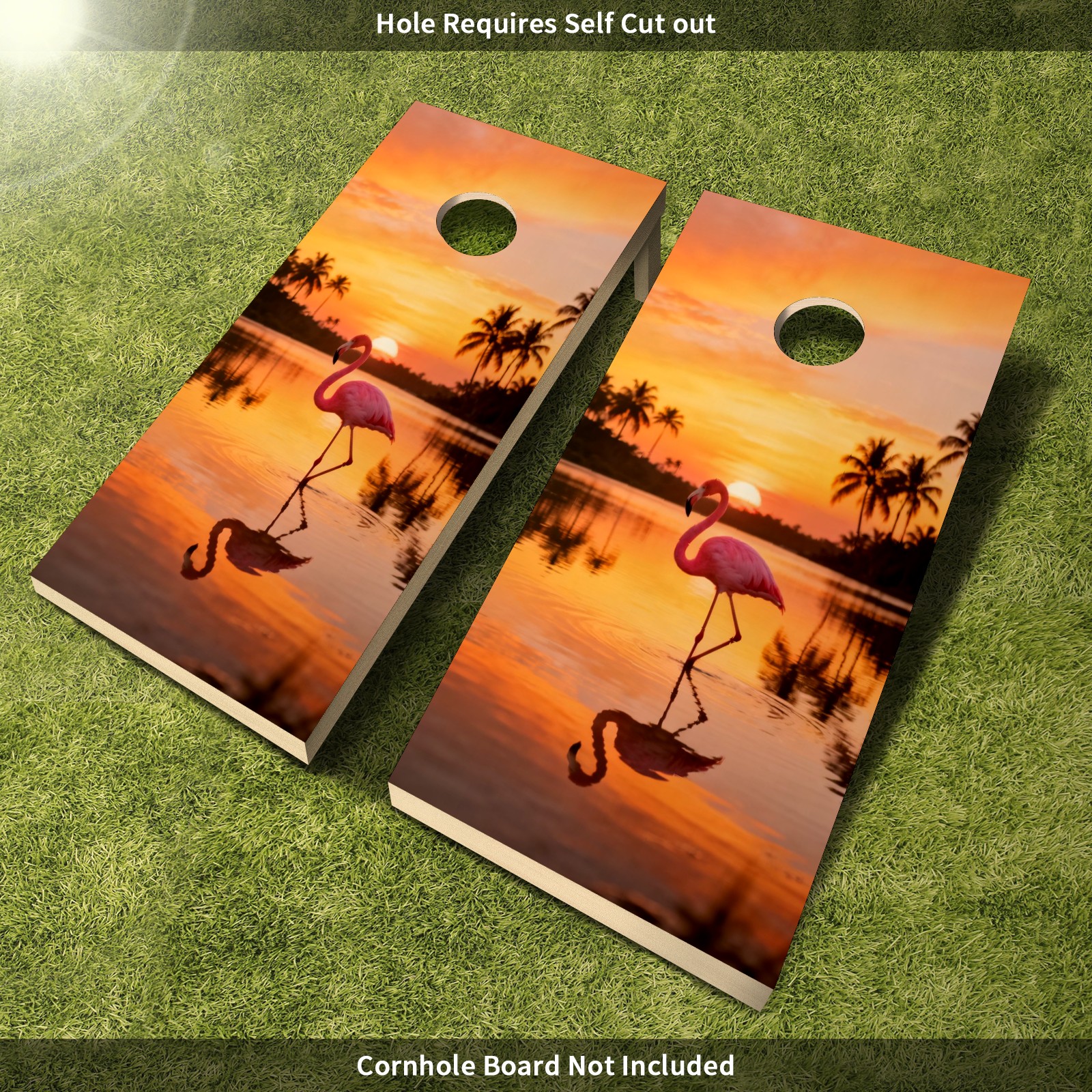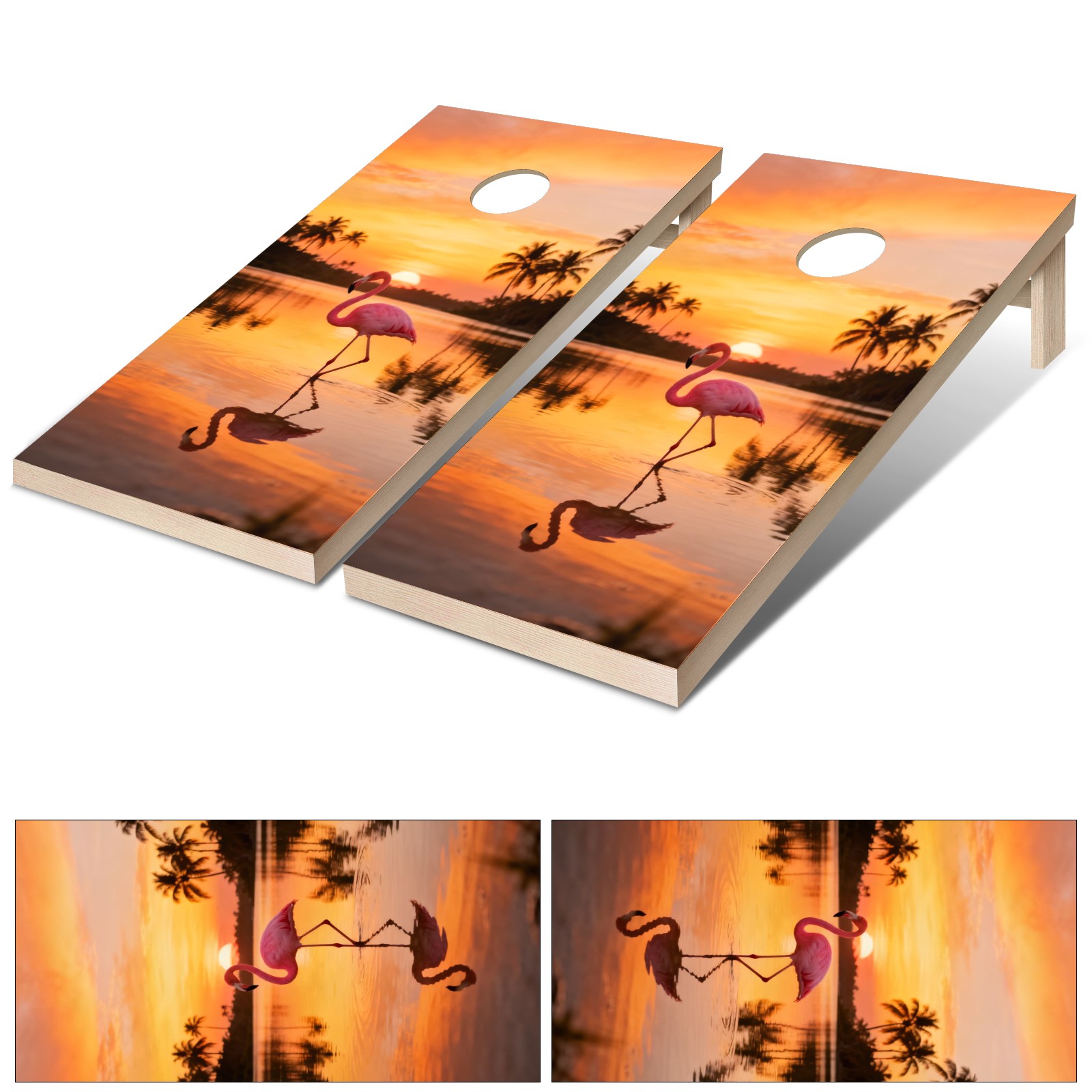 Portable 4x2 Cornhole Set with Two-piece Pack Boards - Cornhole Game Sticker Included - Yard Travel Outdoor Toss Board for Adults Outside Activities Sunset Flamingo Pattern1