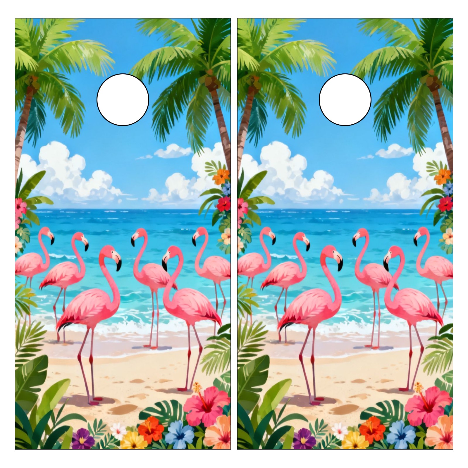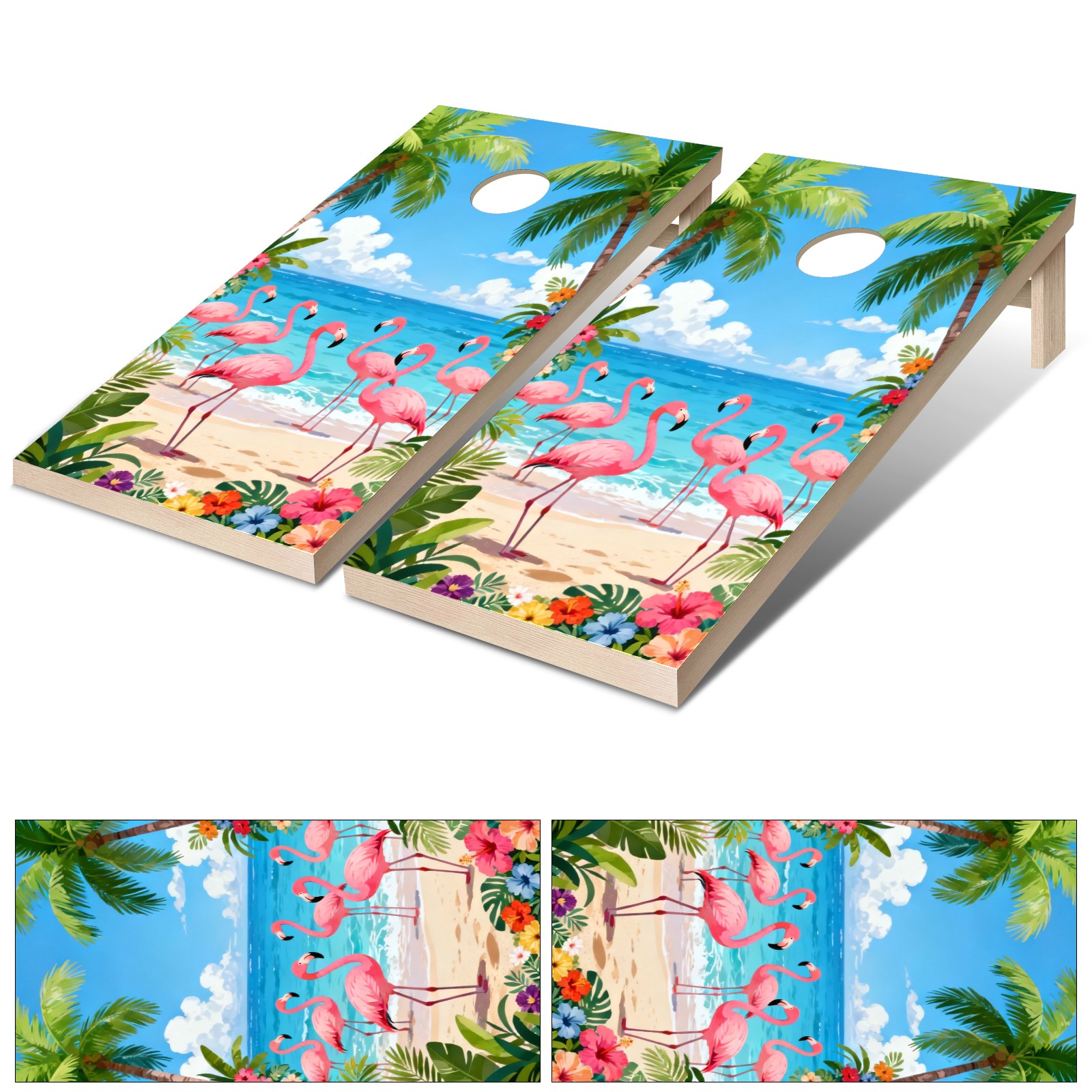 Portable 4x2 Cornhole Set with Two-piece Pack Boards - Cornhole Game Sticker Included - Yard Travel Outdoor Toss Board for Adults Outside Activities Tropical Flamingo Pattern