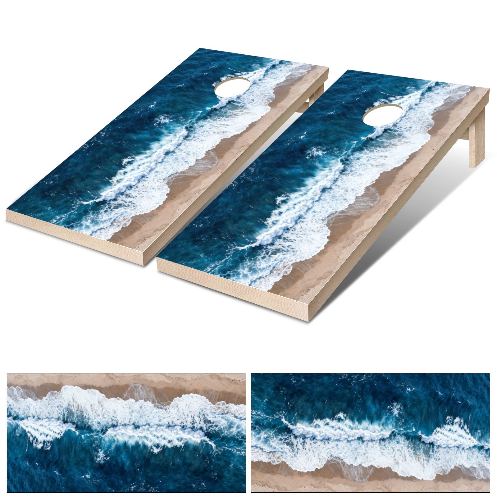 Portable 4x2 Cornhole Set with Two-piece Pack Boards - Cornhole Game Sticker Included - Yard Travel Outdoor Toss Board for Adults Outside Activities Wave Pattern