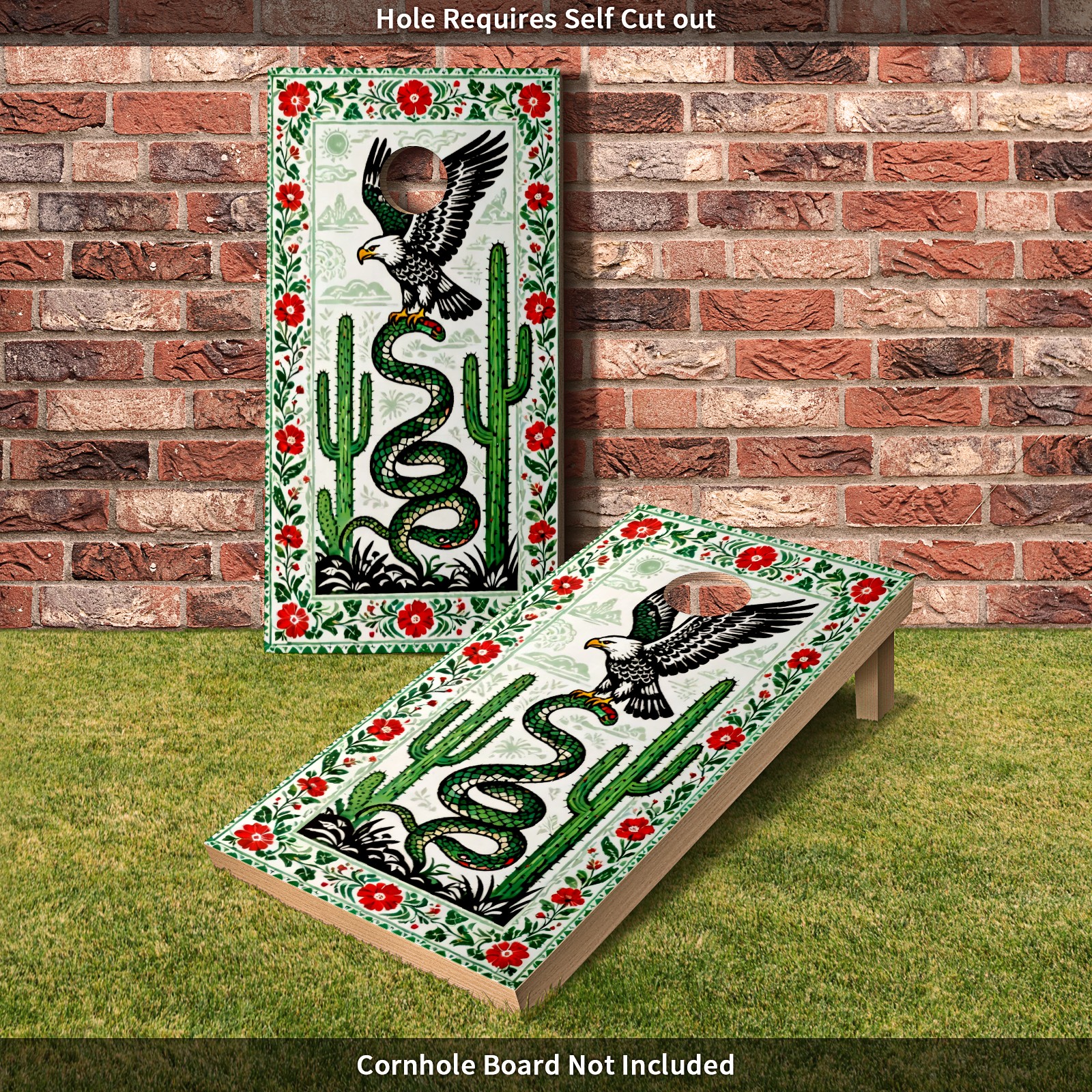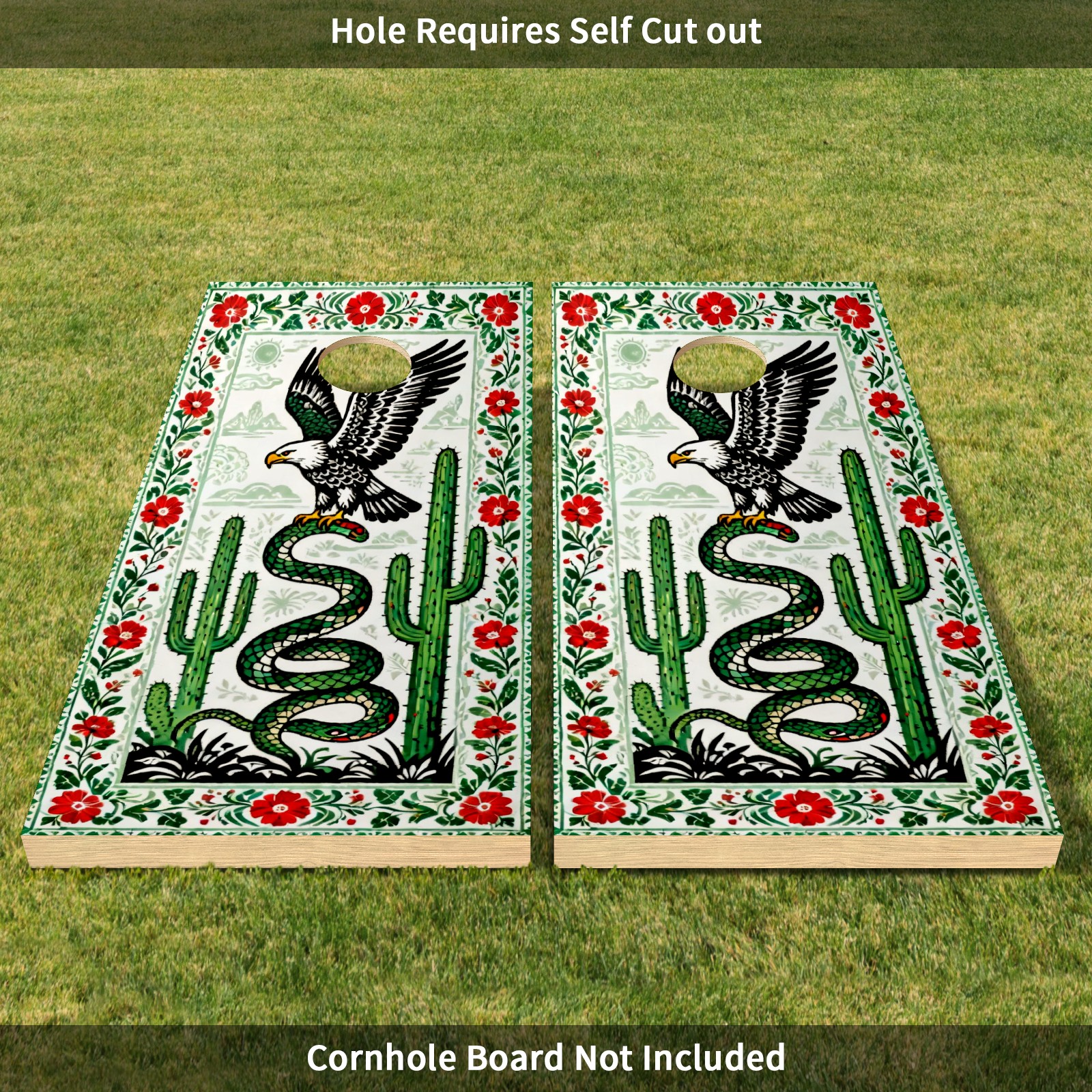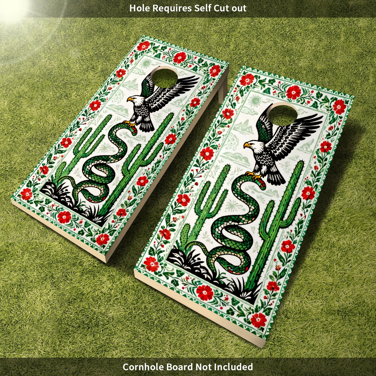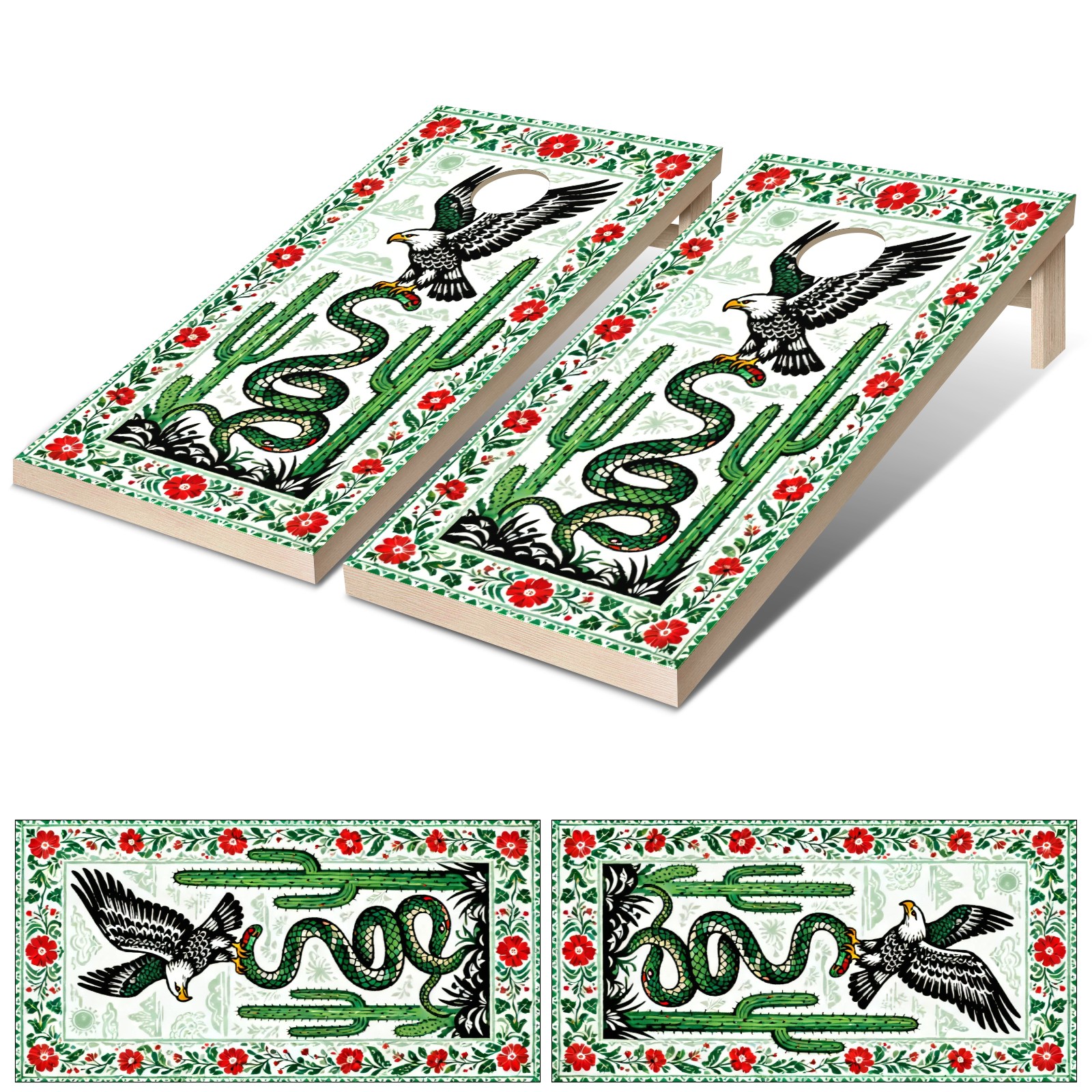 Portable 4x2 Cornhole Set with Two-piece Pack Boards - Cornhole Game Sticker Included - Yard Travel Outdoor Toss Board for Adults Outside Activities Green Eagle Cactus