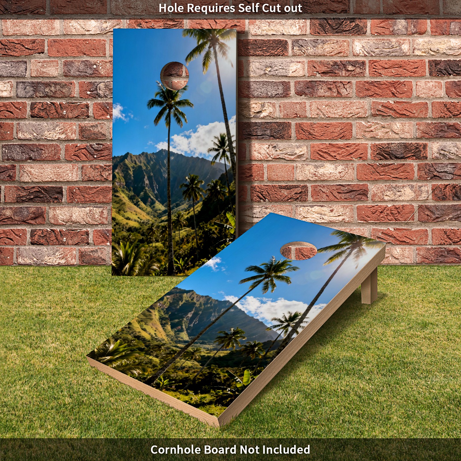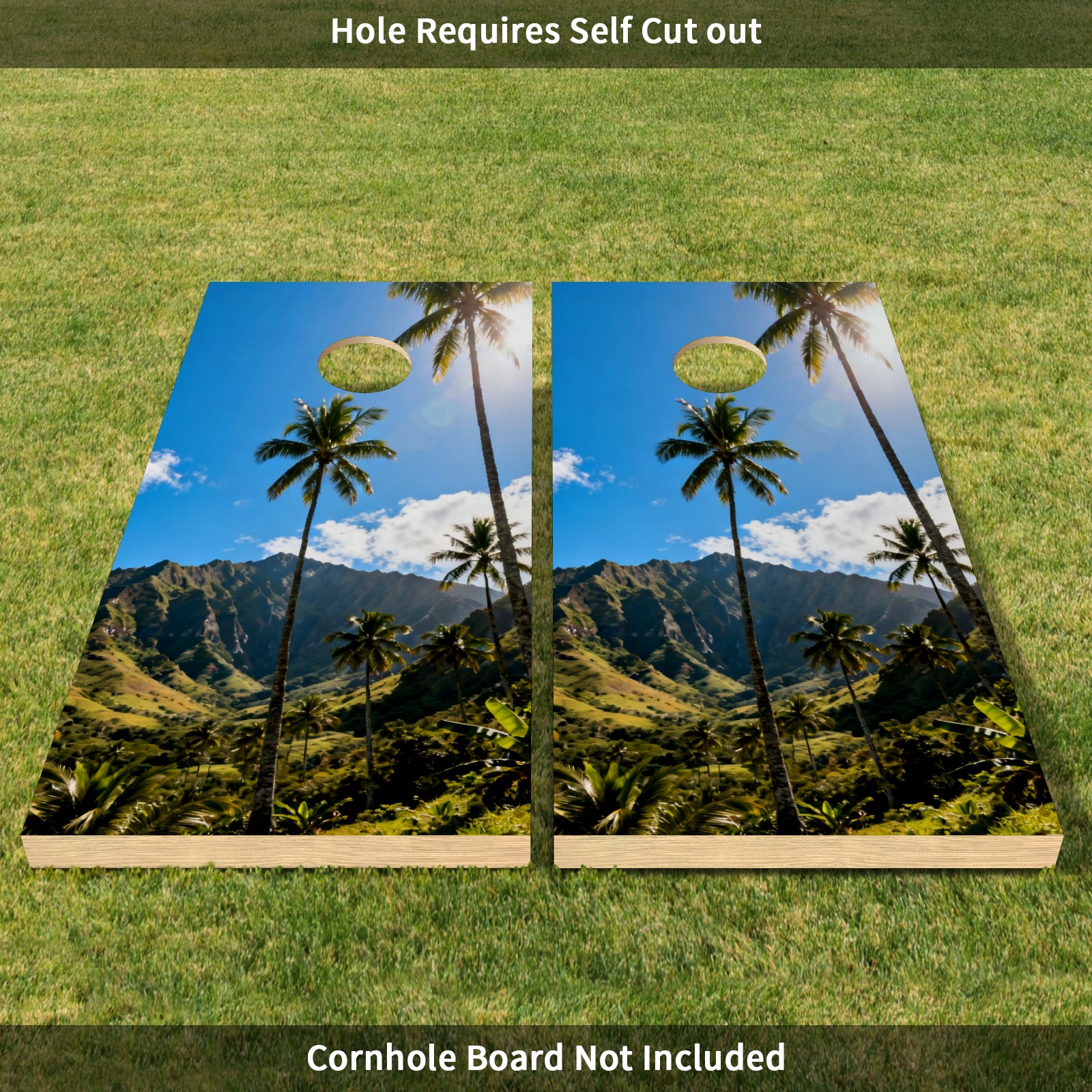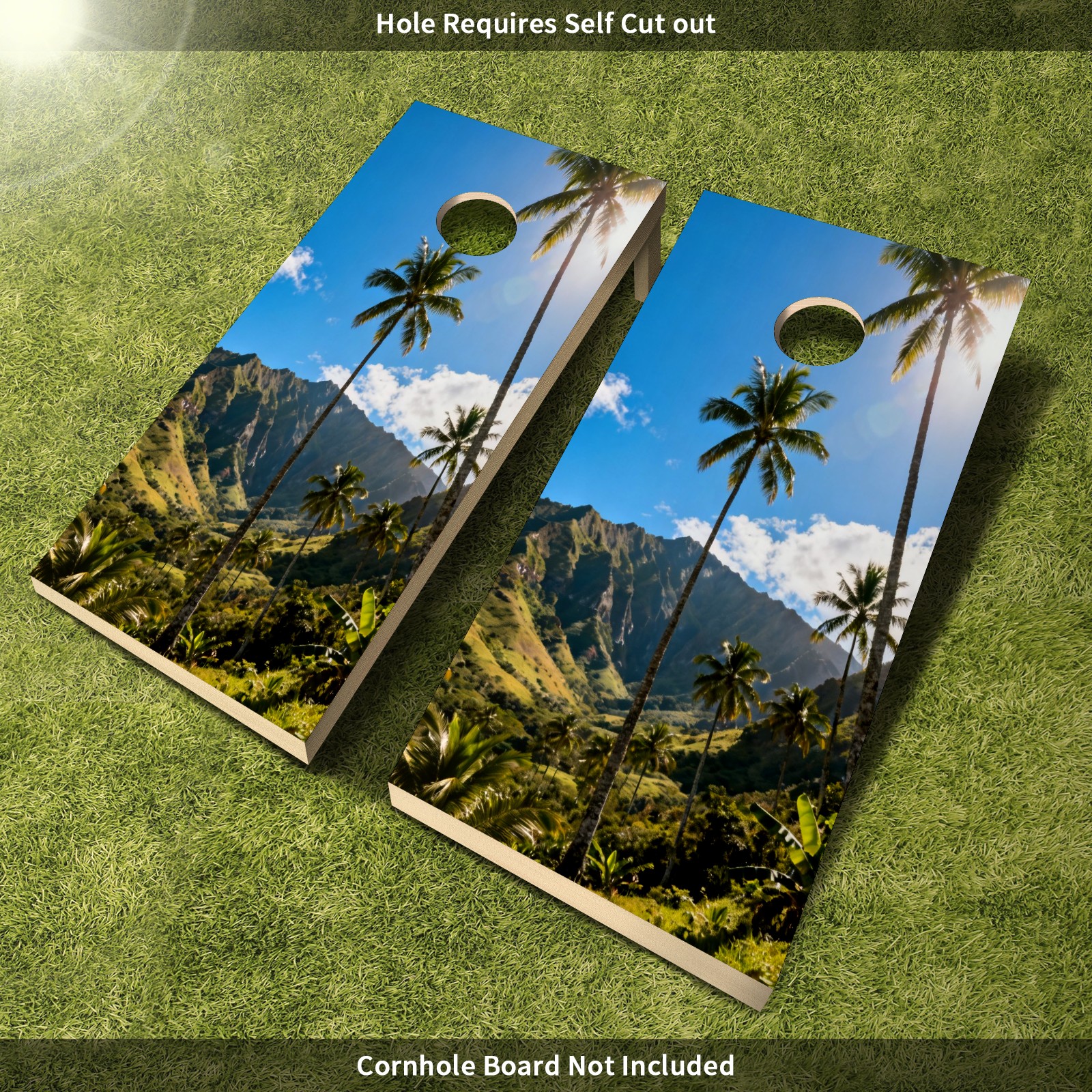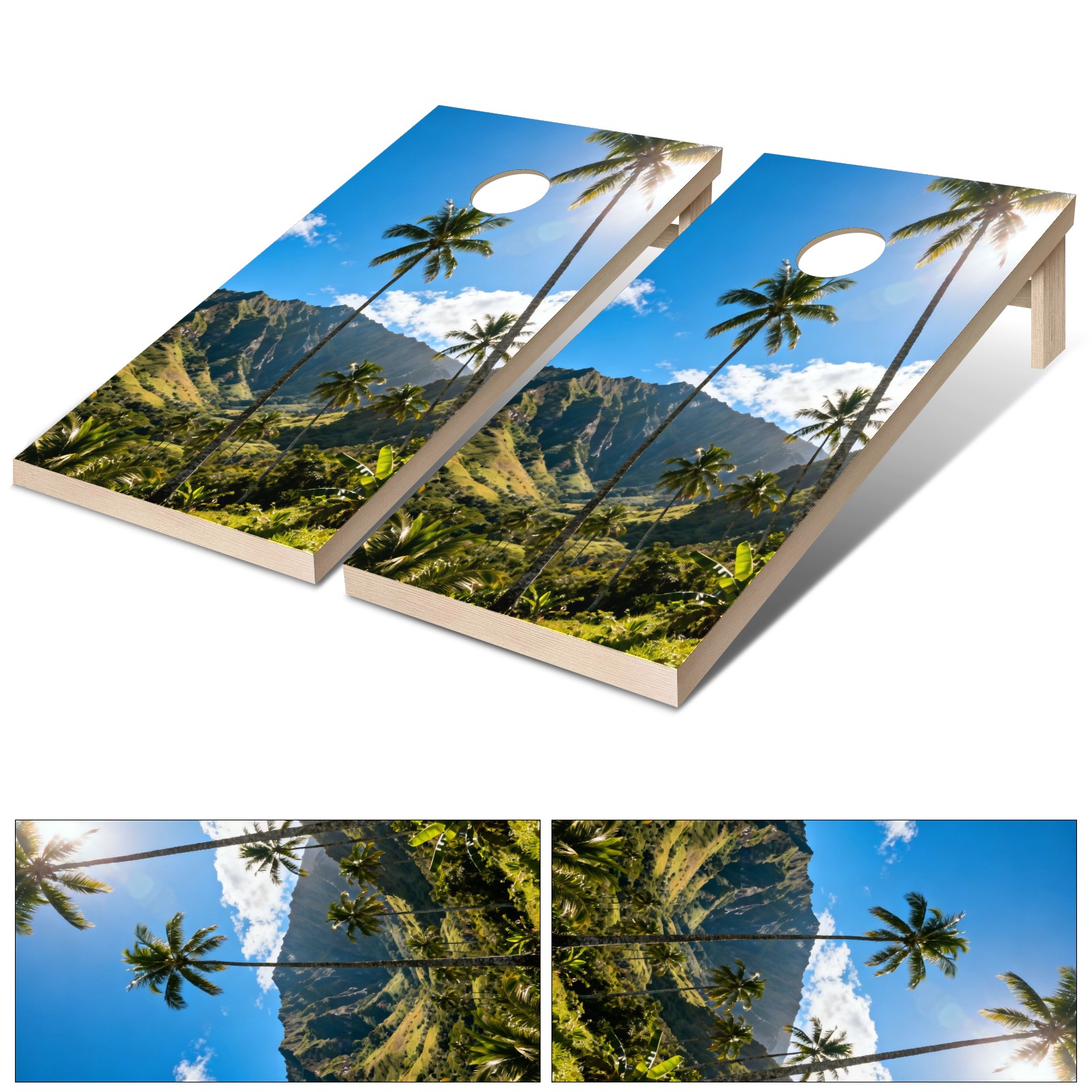 Portable 4x2 Cornhole Set with Two-piece Pack Boards - Cornhole Game Sticker Included - Yard Travel Outdoor Toss Board for Adults Outside Activities Valley Panoramic Pattern