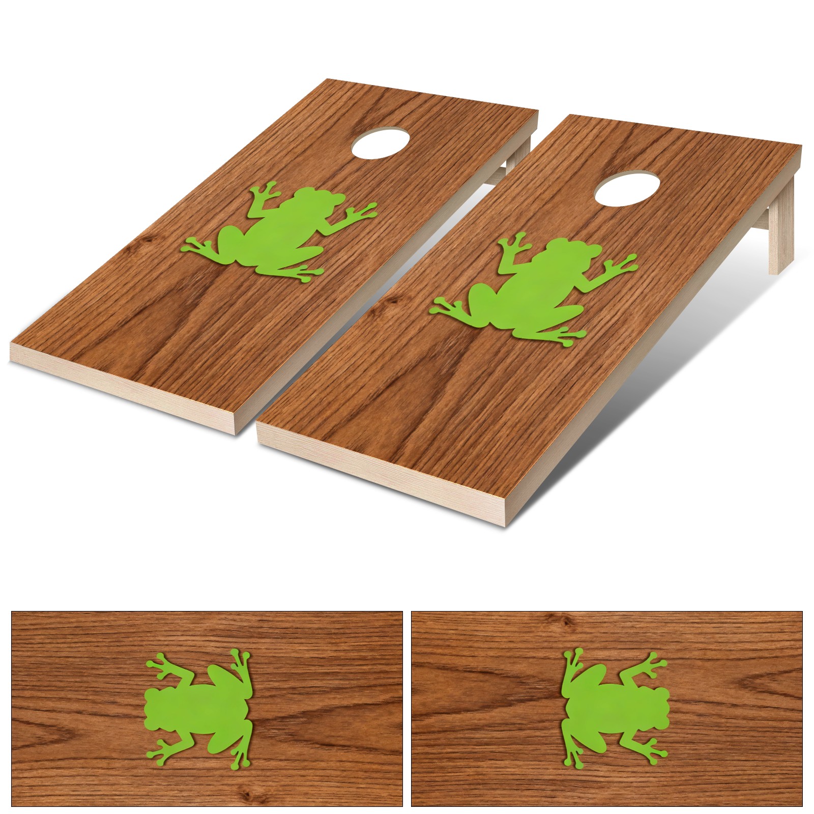 Portable 4x2 Cornhole Set with Two-piece Pack Boards - Cornhole Game Sticker Included - Yard Travel Outdoor Toss Board for Adults Outside Activities Striped Frog Pattern1