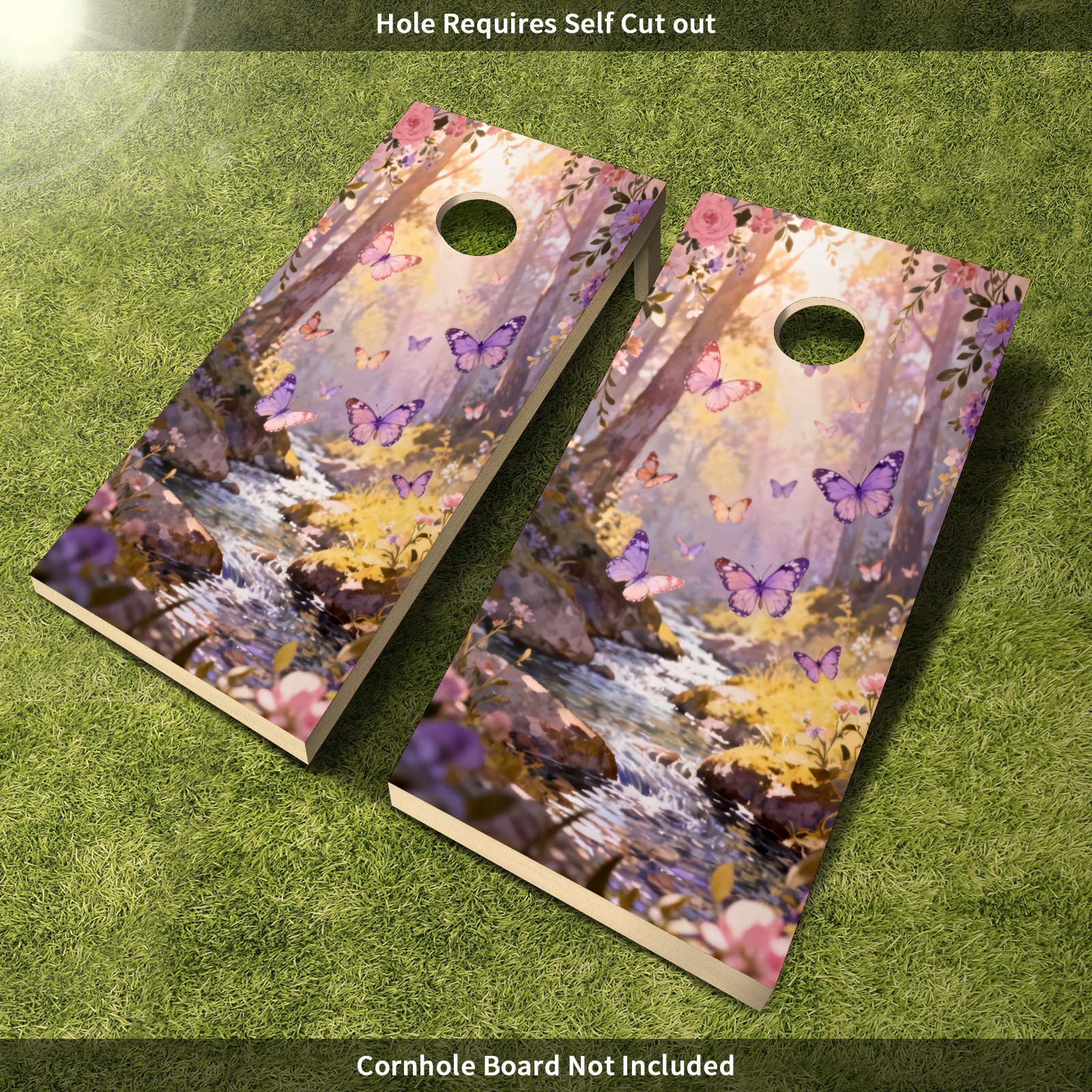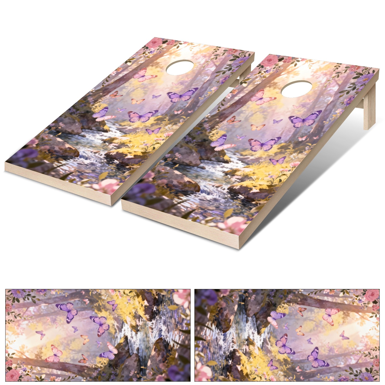 Portable 4x2 Cornhole Set with Two-piece Pack Boards - Cornhole Game Sticker Included - Yard Travel Outdoor Toss Board for Adults Outside Activities Pink Purple Butterfly